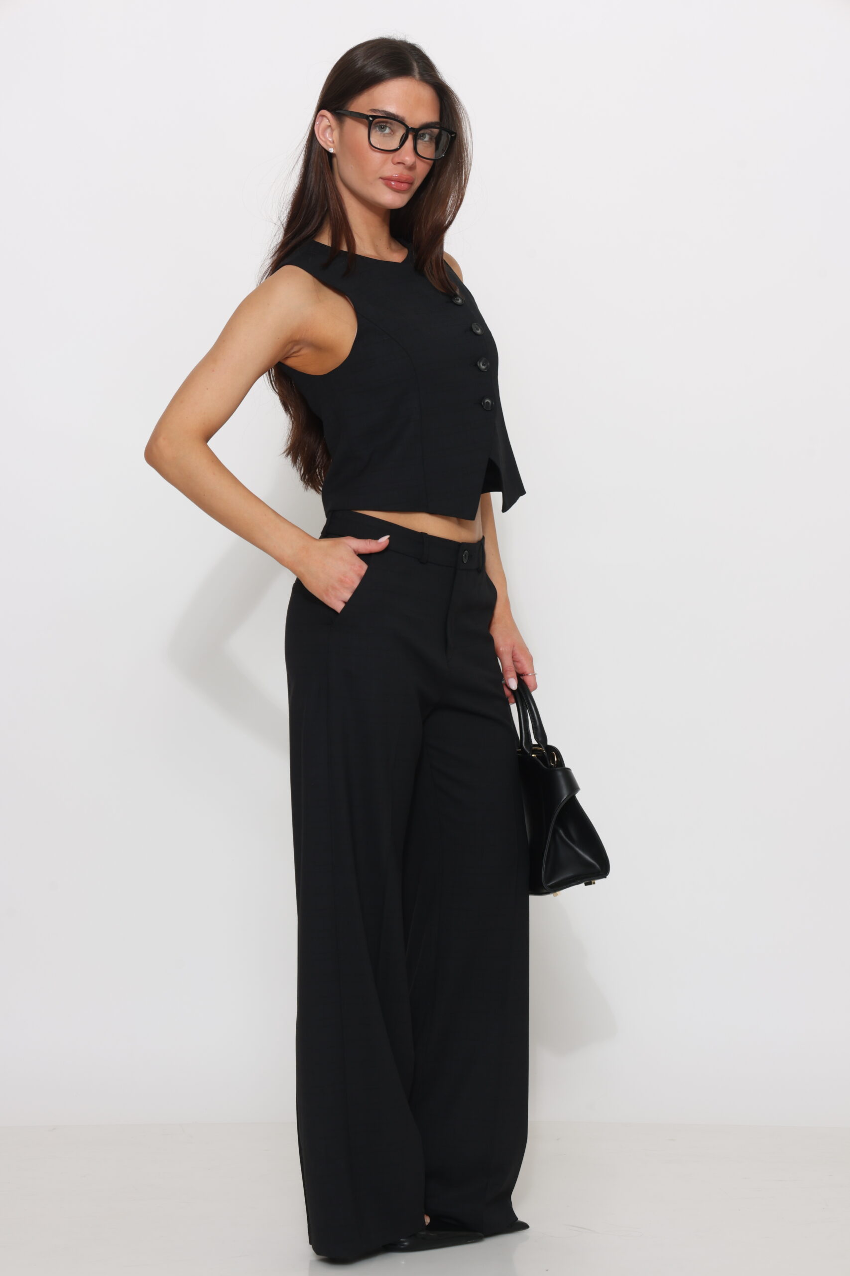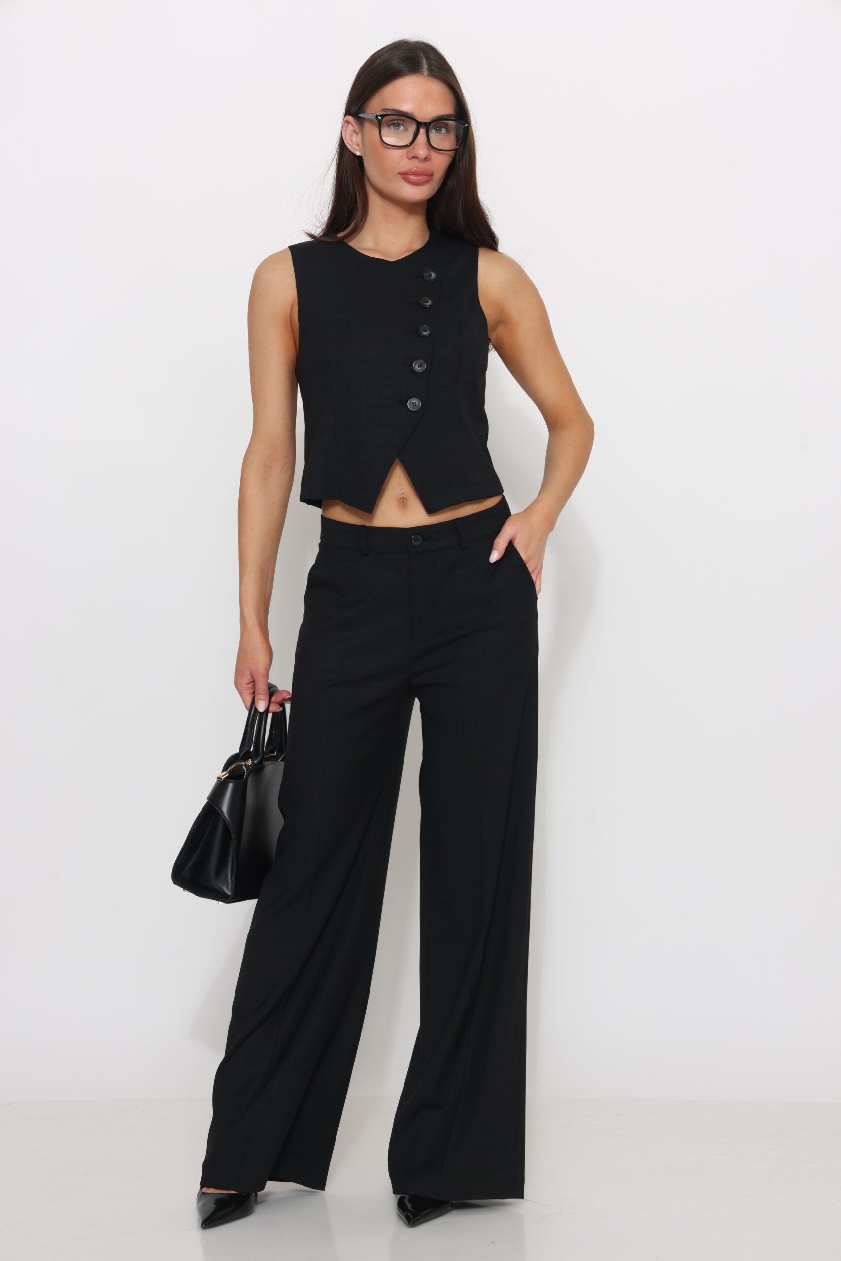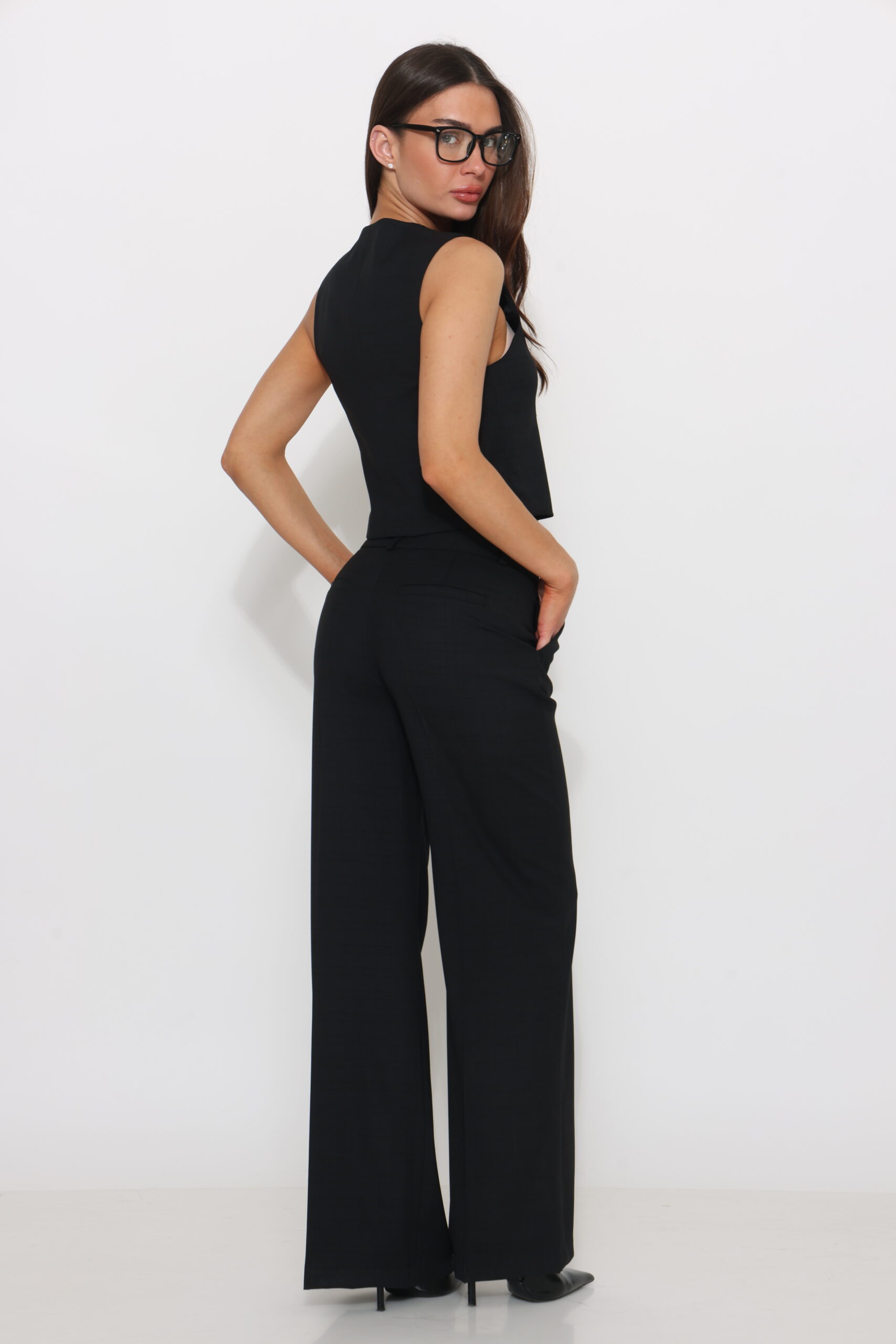 מכנס מבד נשפך עם טקסטורת שיבוץ עדינה בגזרה ישרה עם התרחבות קלה