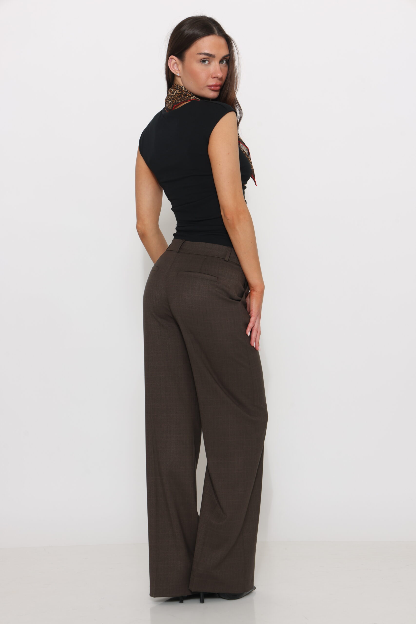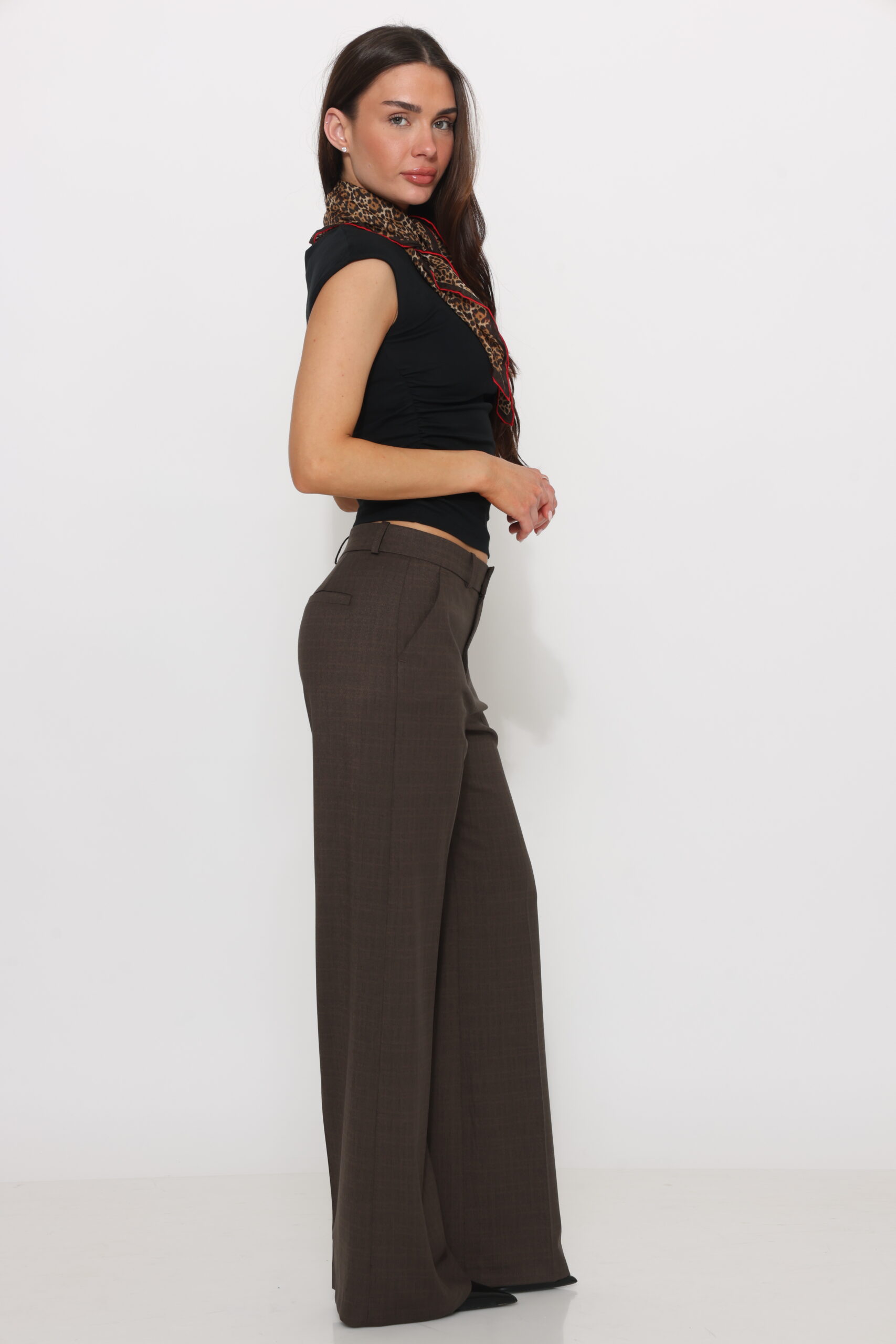מכנס מבד נשפך עם טקסטורת שיבוץ עדינה בגזרה ישרה עם התרחבות קלה