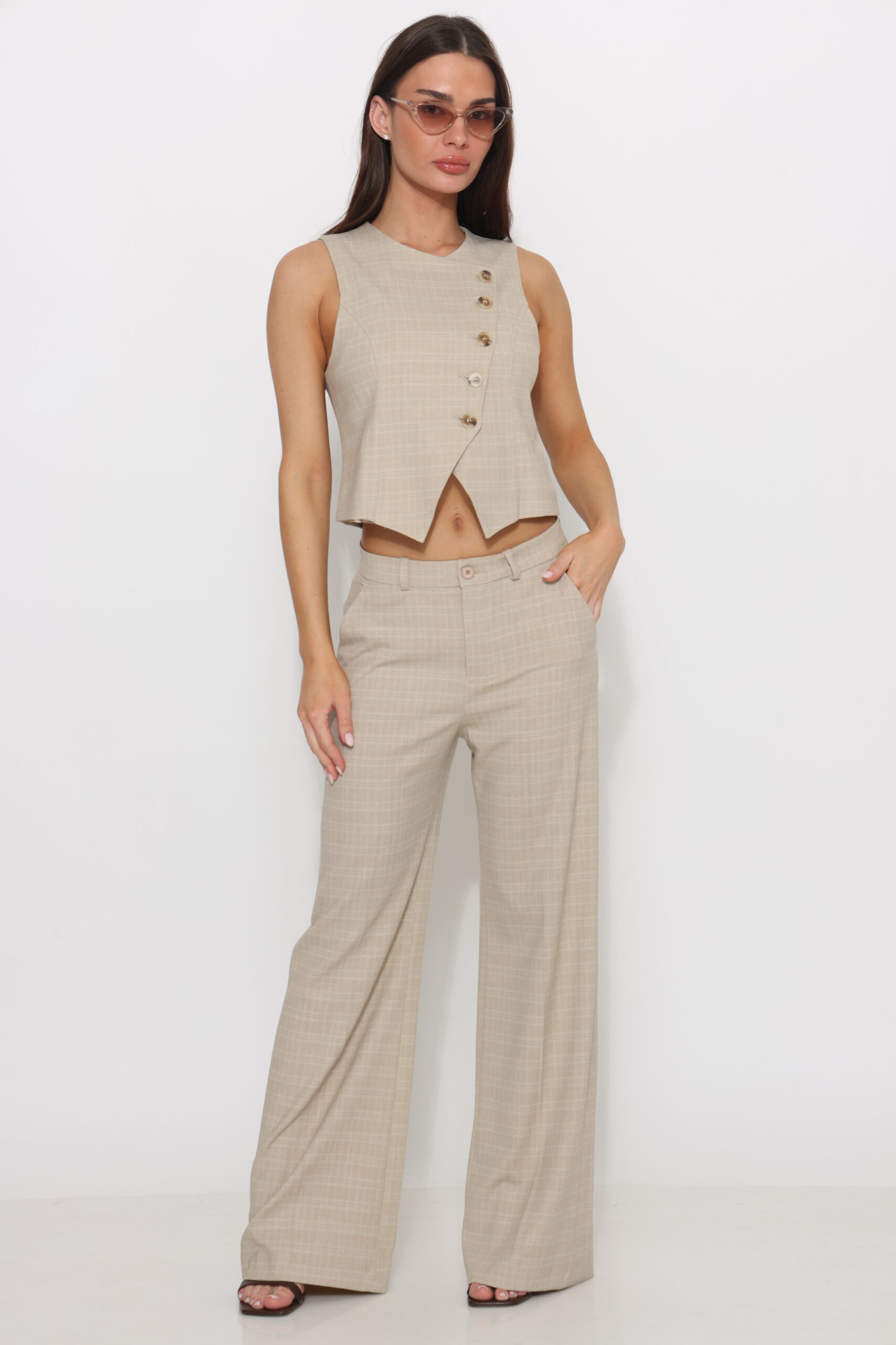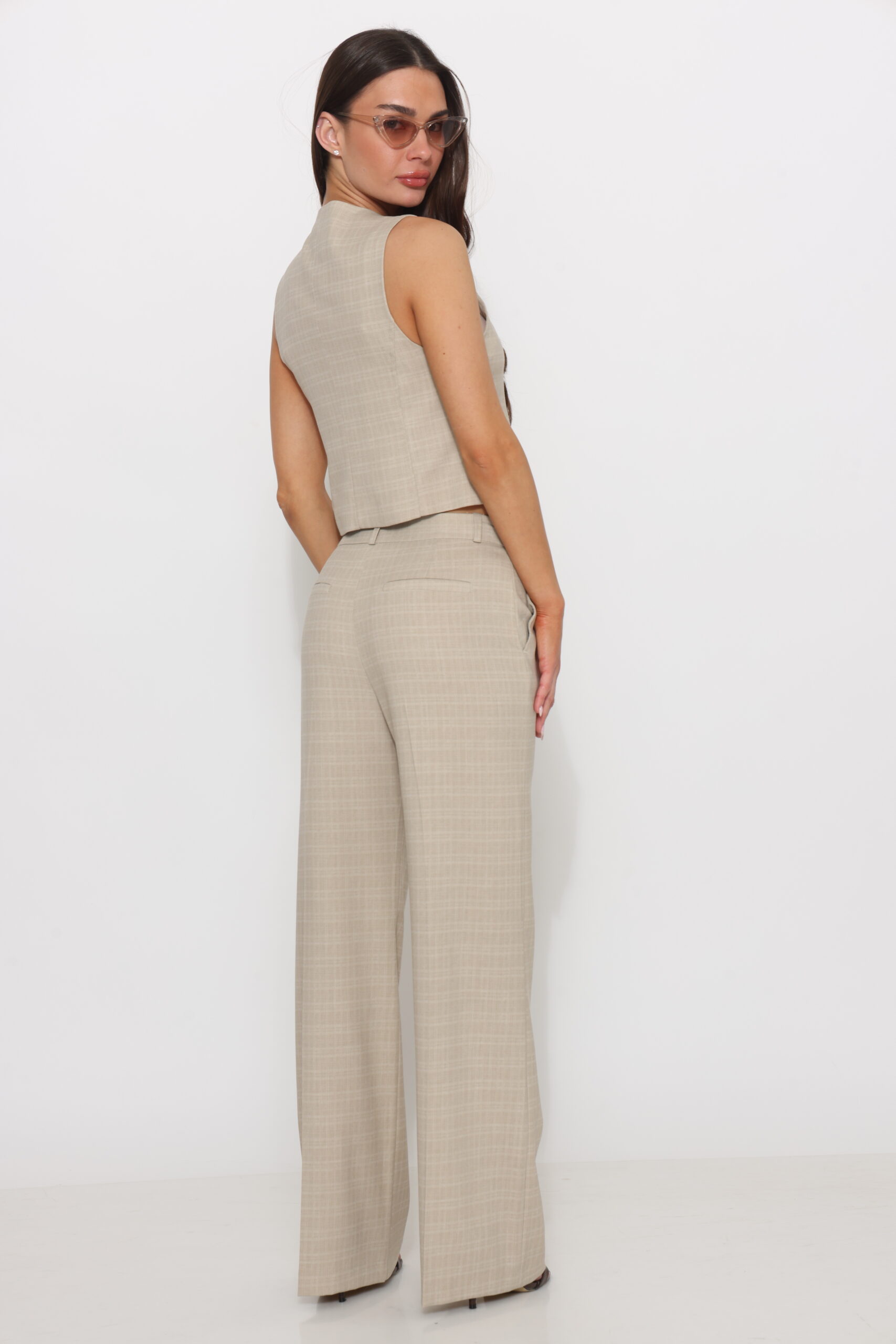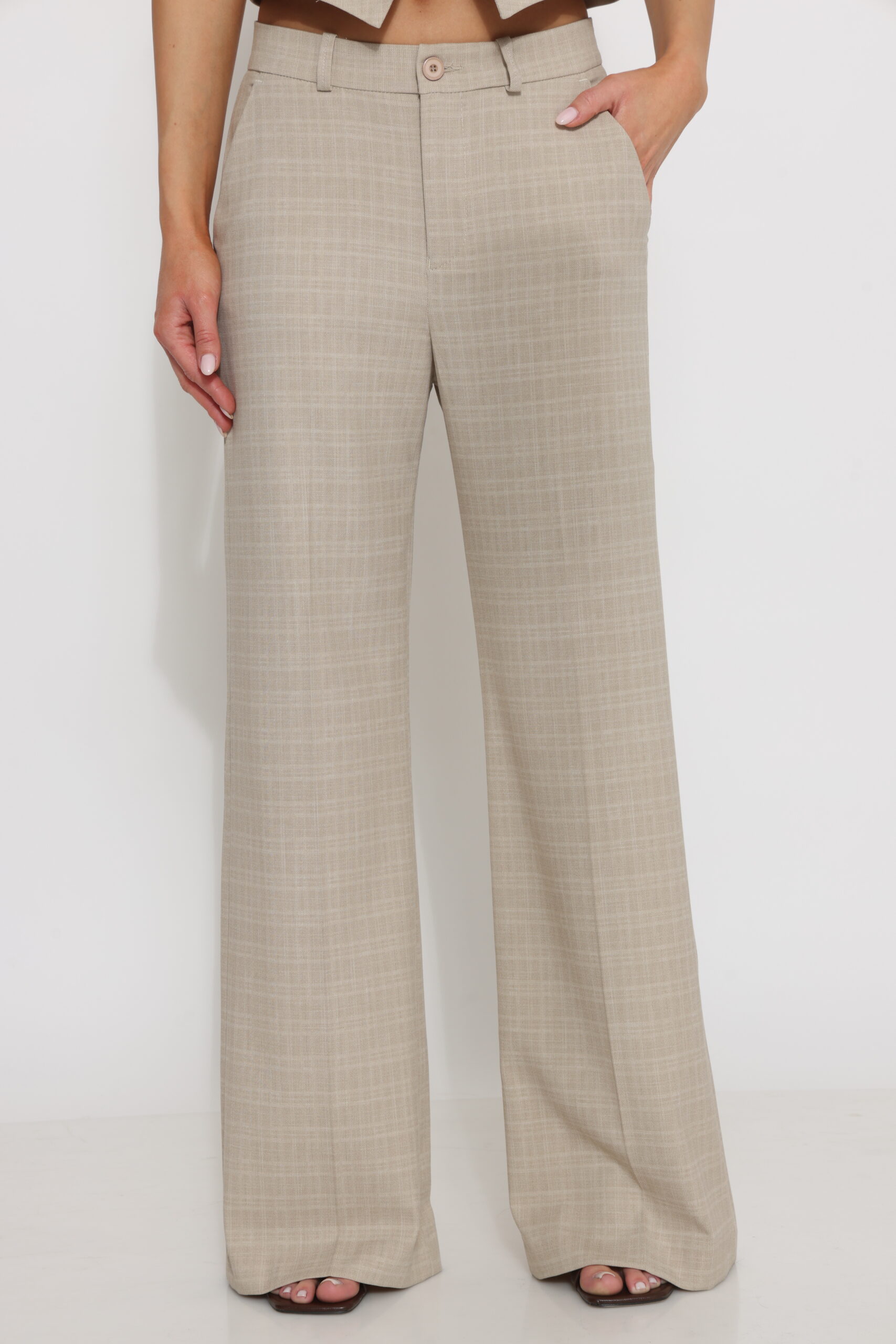 מכנס מבד נשפך עם טקסטורת שיבוץ עדינה בגזרה ישרה עם התרחבות קלה