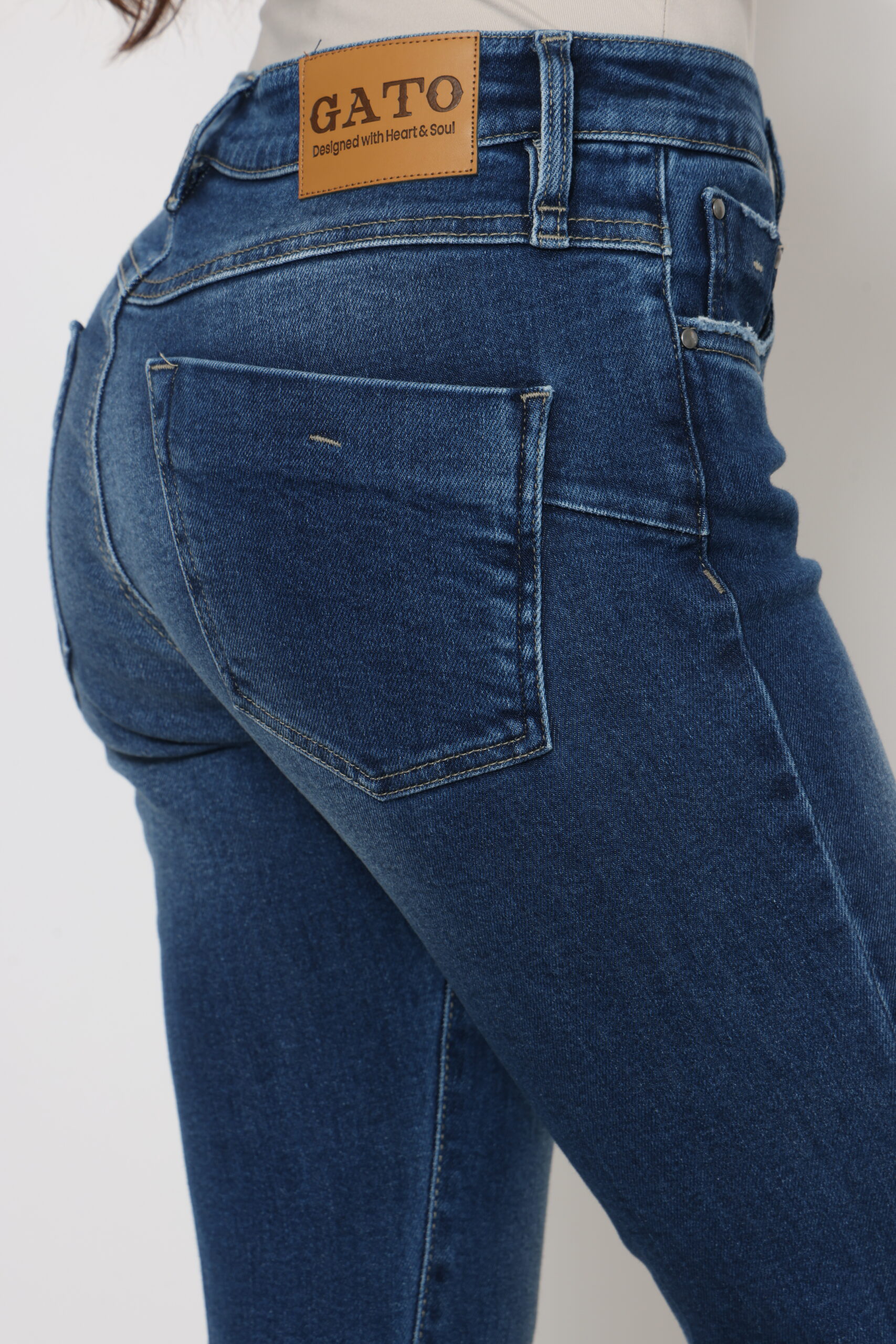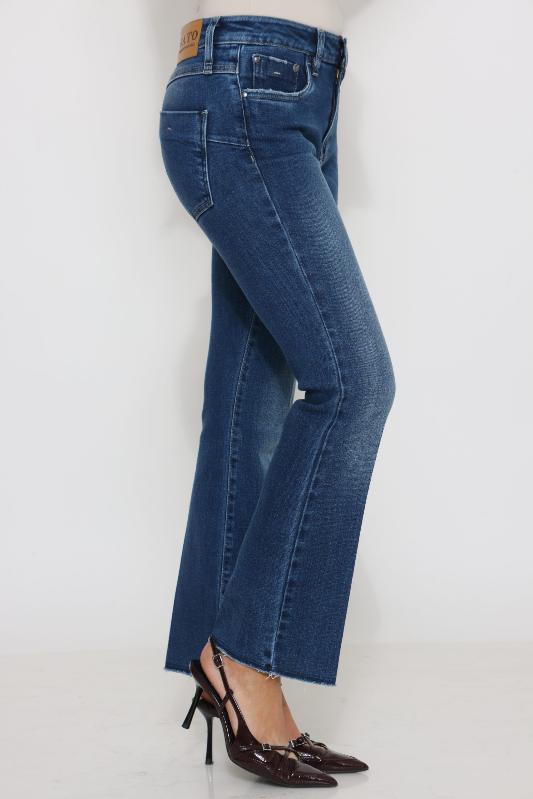גינס גובה אמצע במותן אורך קרסול עם לייקרה וסיומת גזורה
