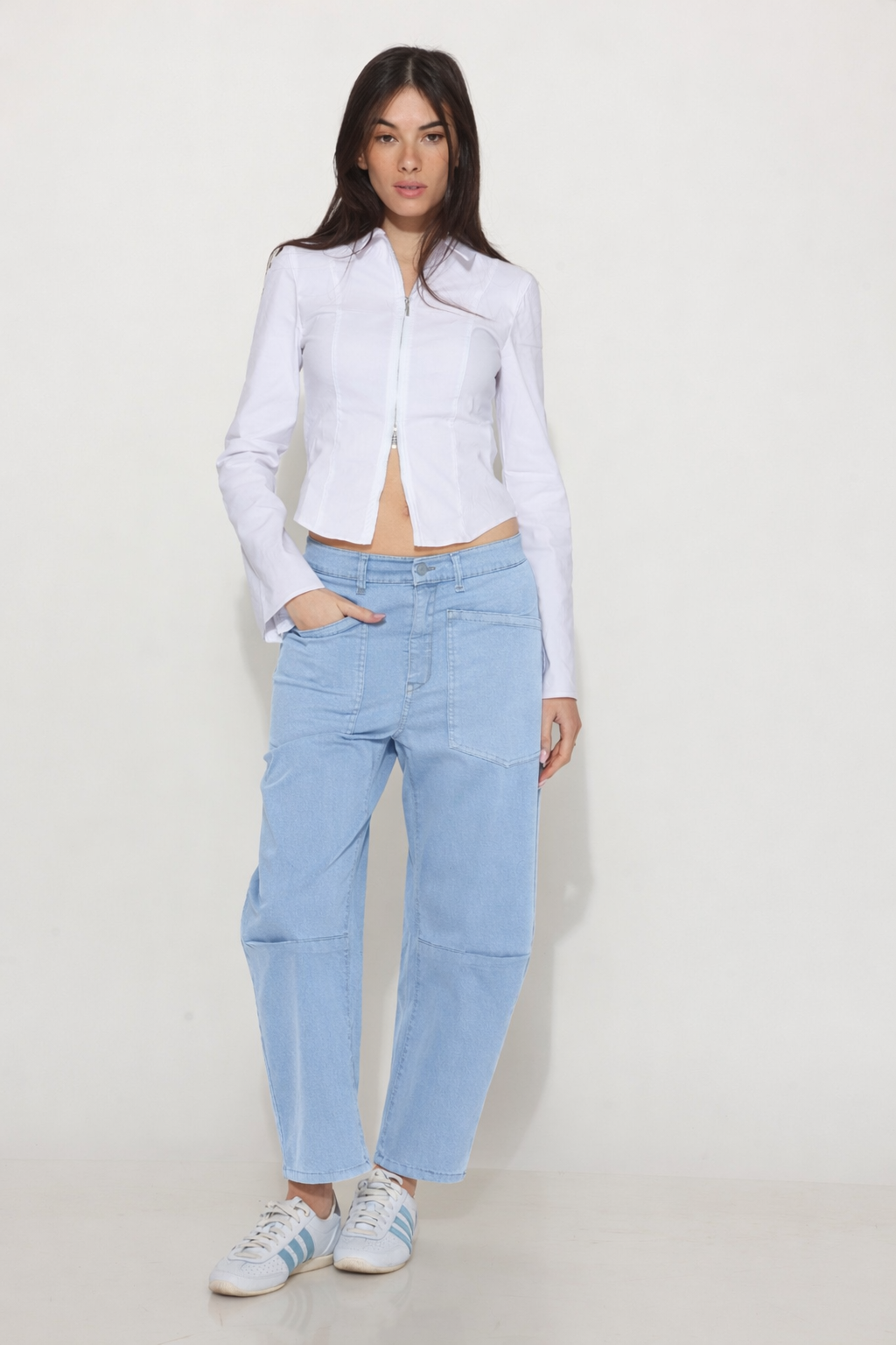 מכנסי כותנה בגיזרת באגי עם כיסים מקדימה וסגירת כפתור