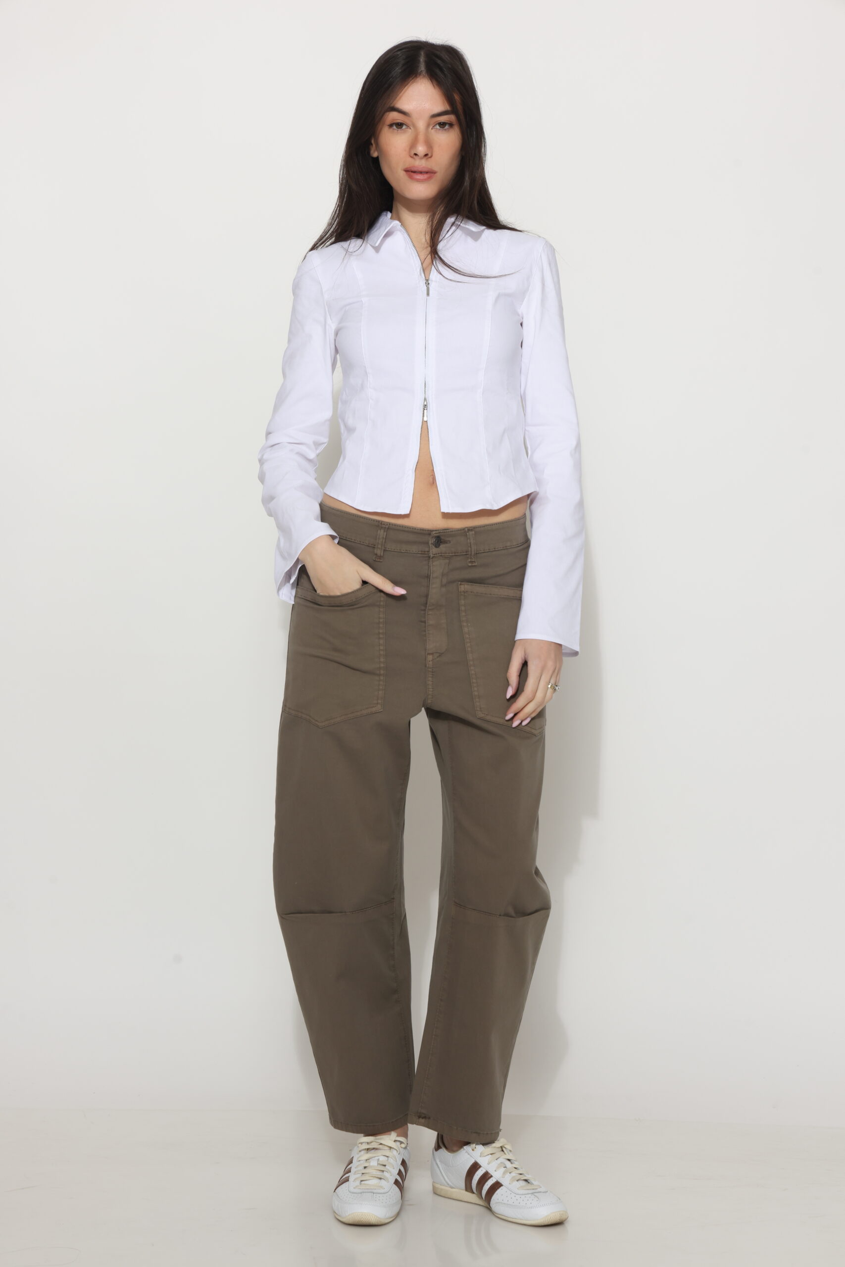 מכנסי כותנה בגיזרת באגי עם כיסים מקדימה וסגירת כפתור