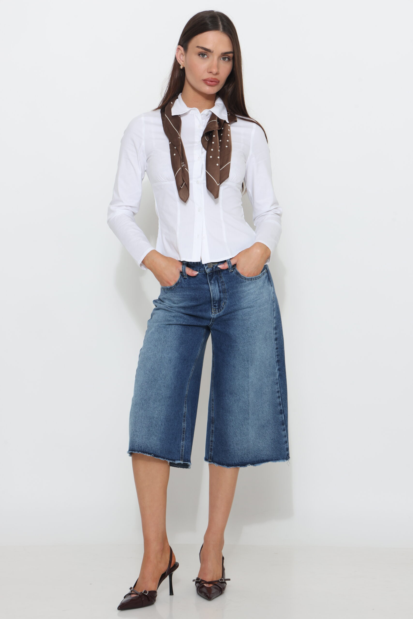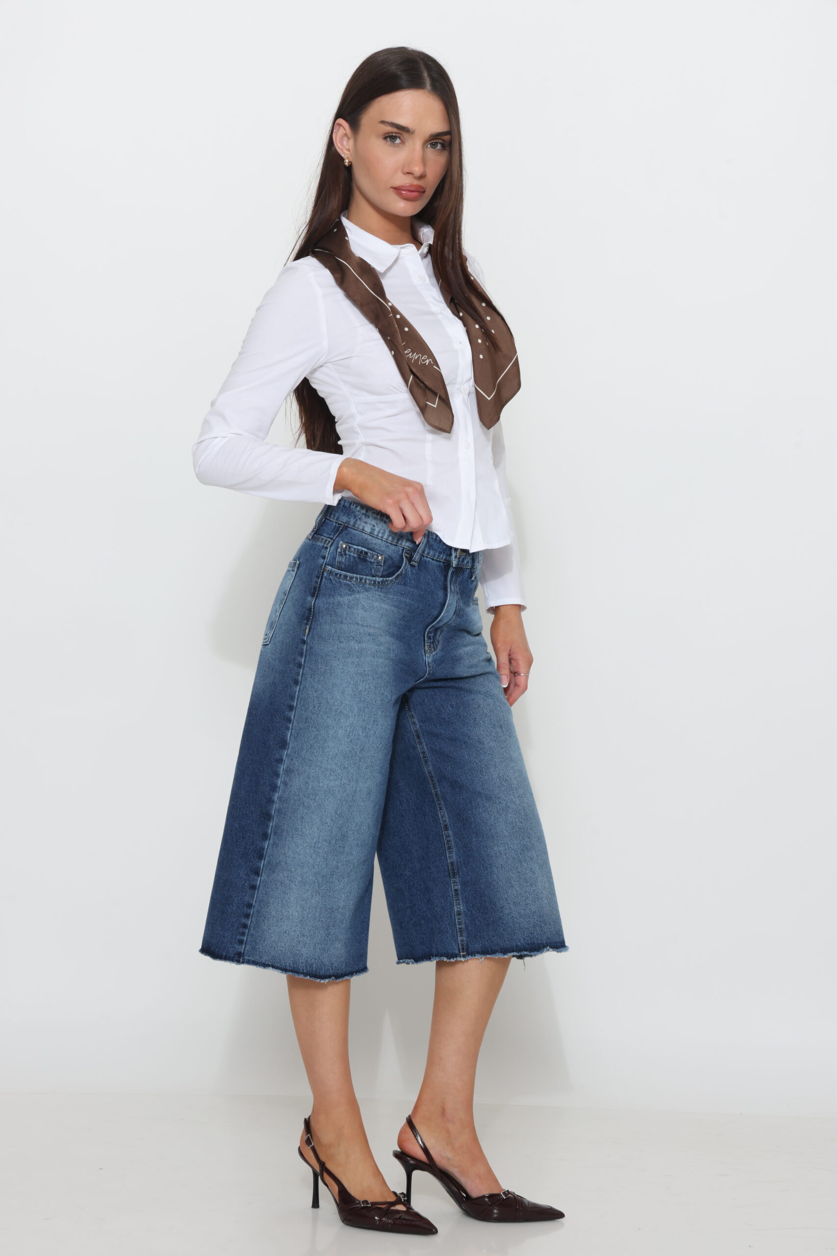 ג׳ינס בגיזרת A אורך אחרי הברך מבד ג׳ינס ללא לייקרה *המלצת המערכת לקחת מידה יותר