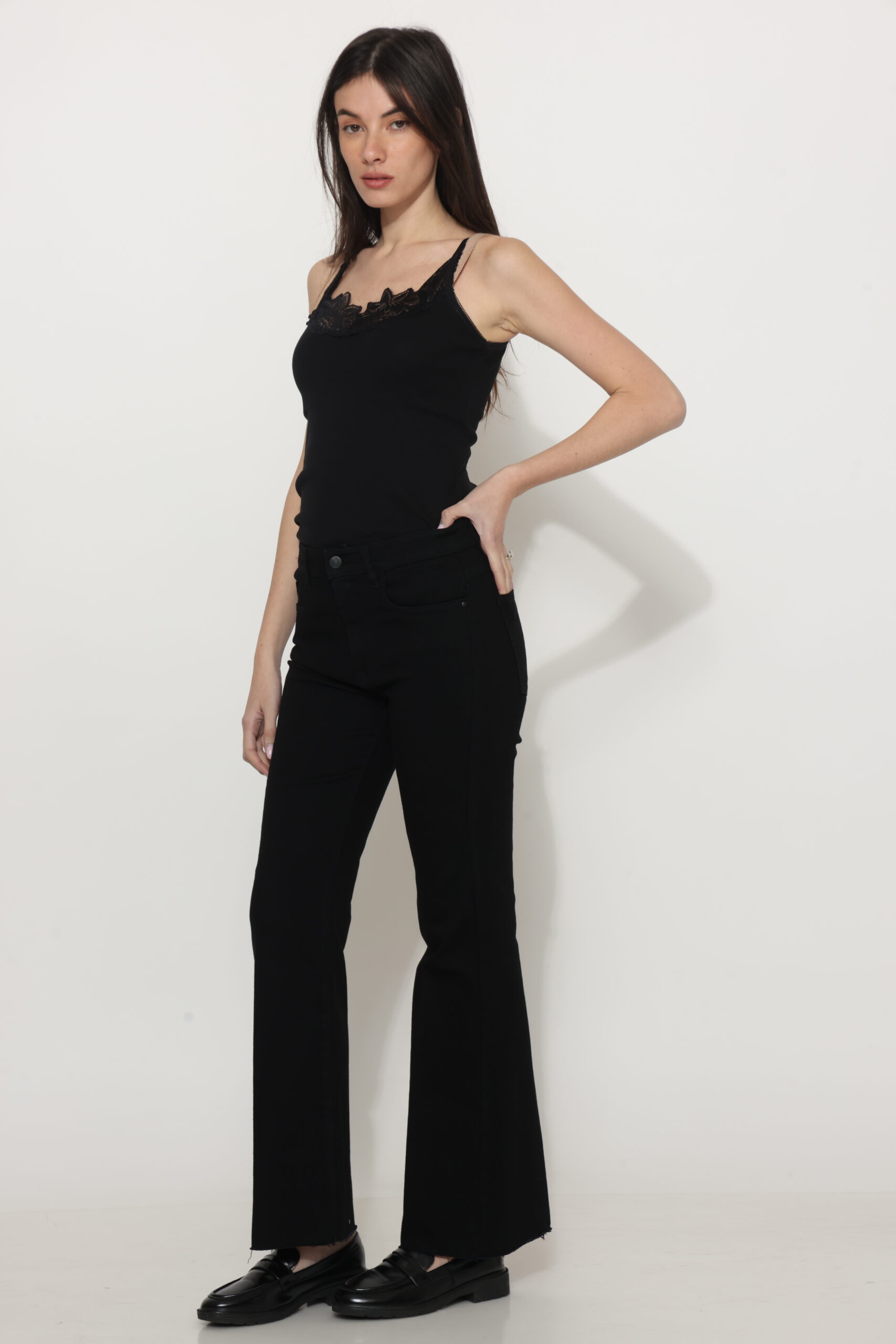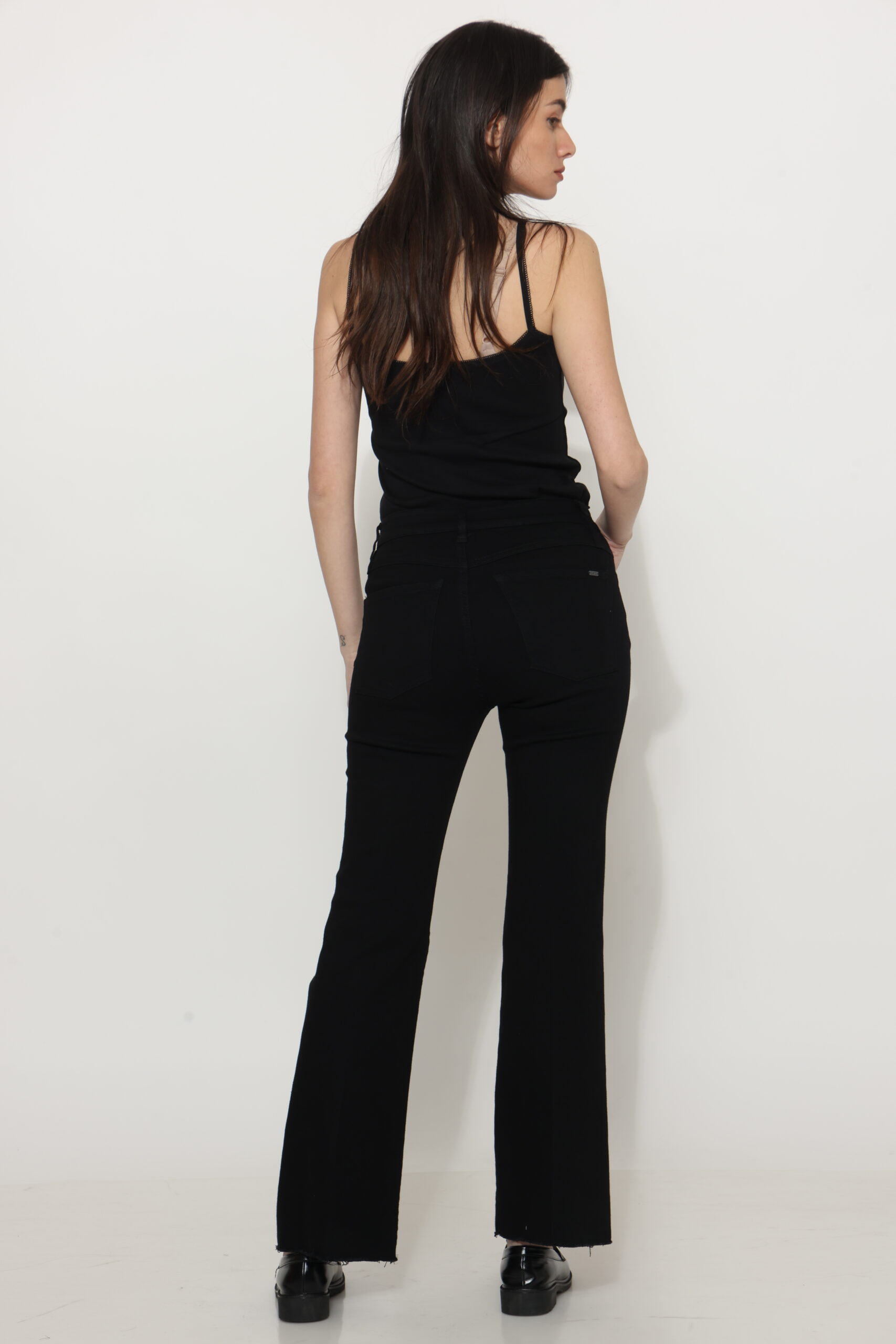 גינס שחור פחם בגיזרת בוט קאט עם לייקרה