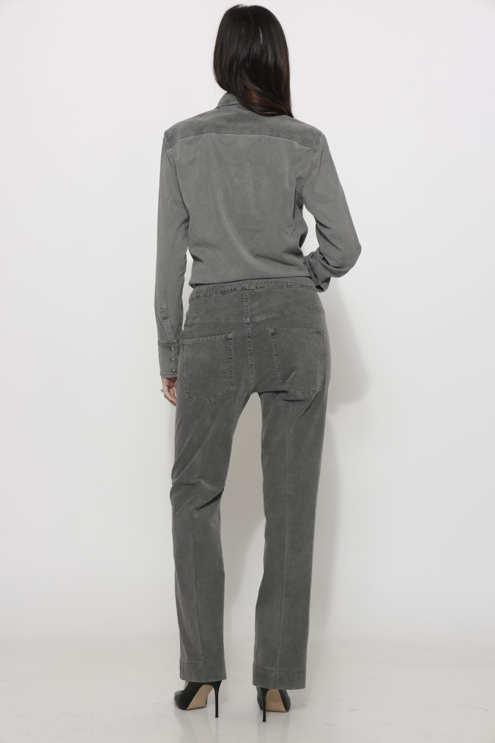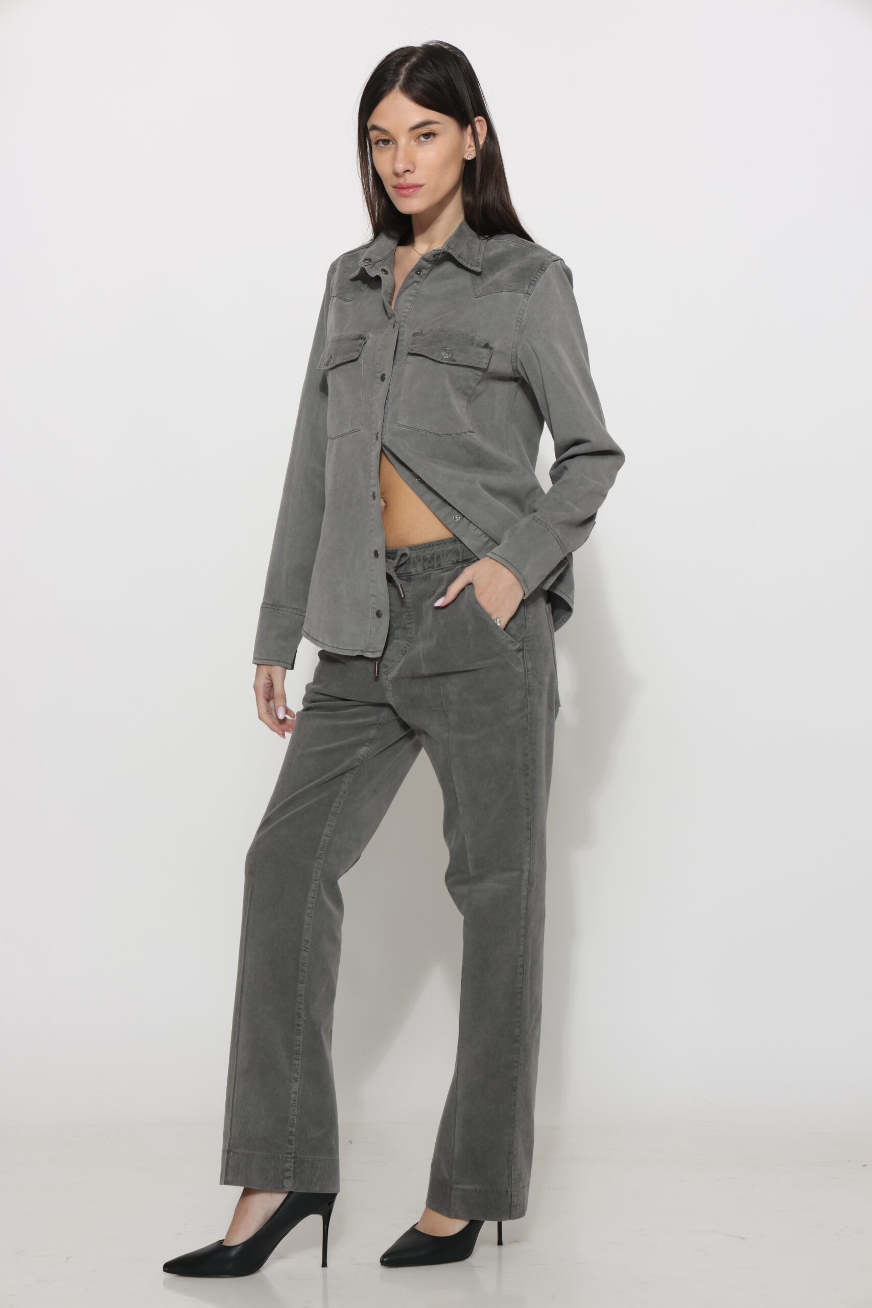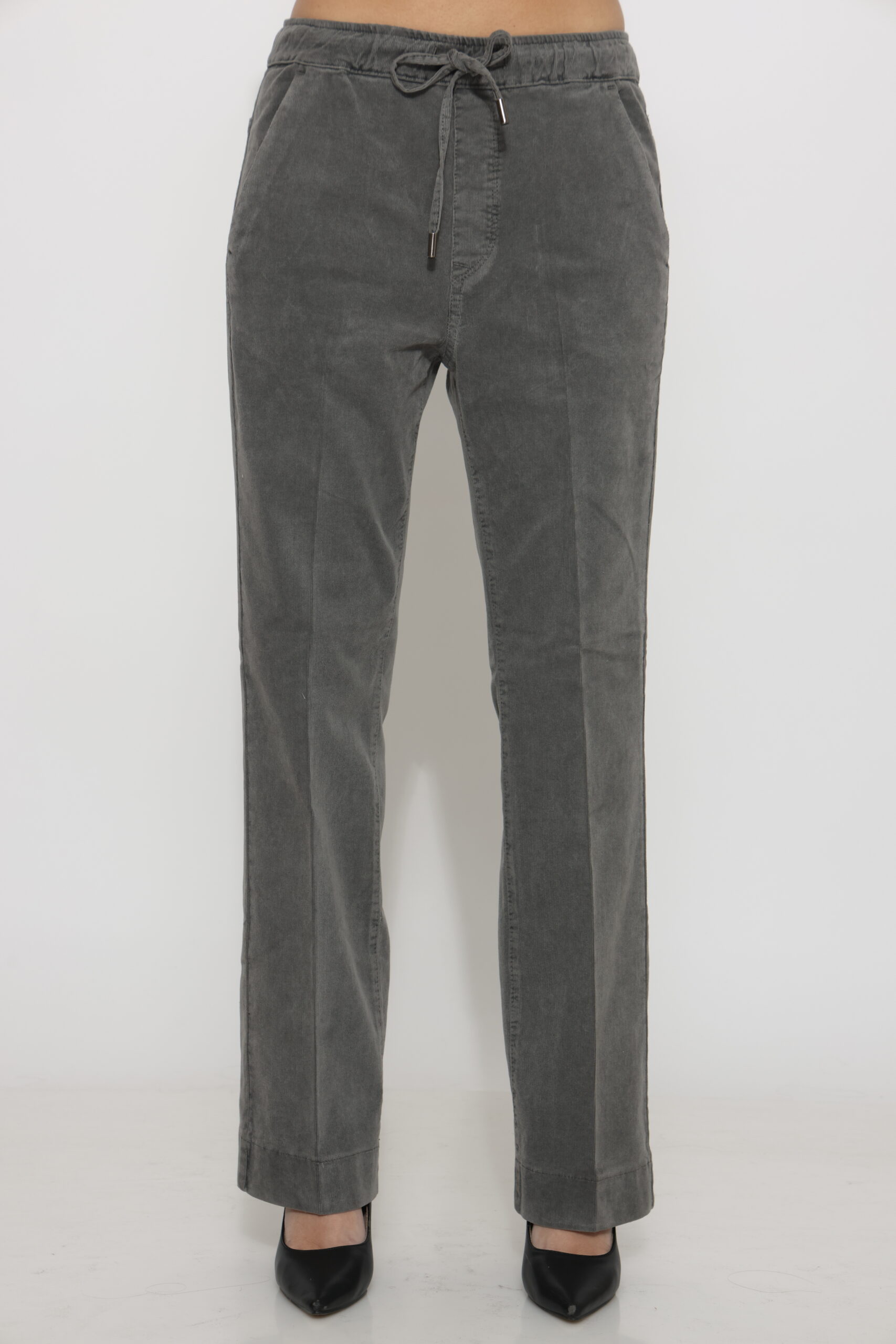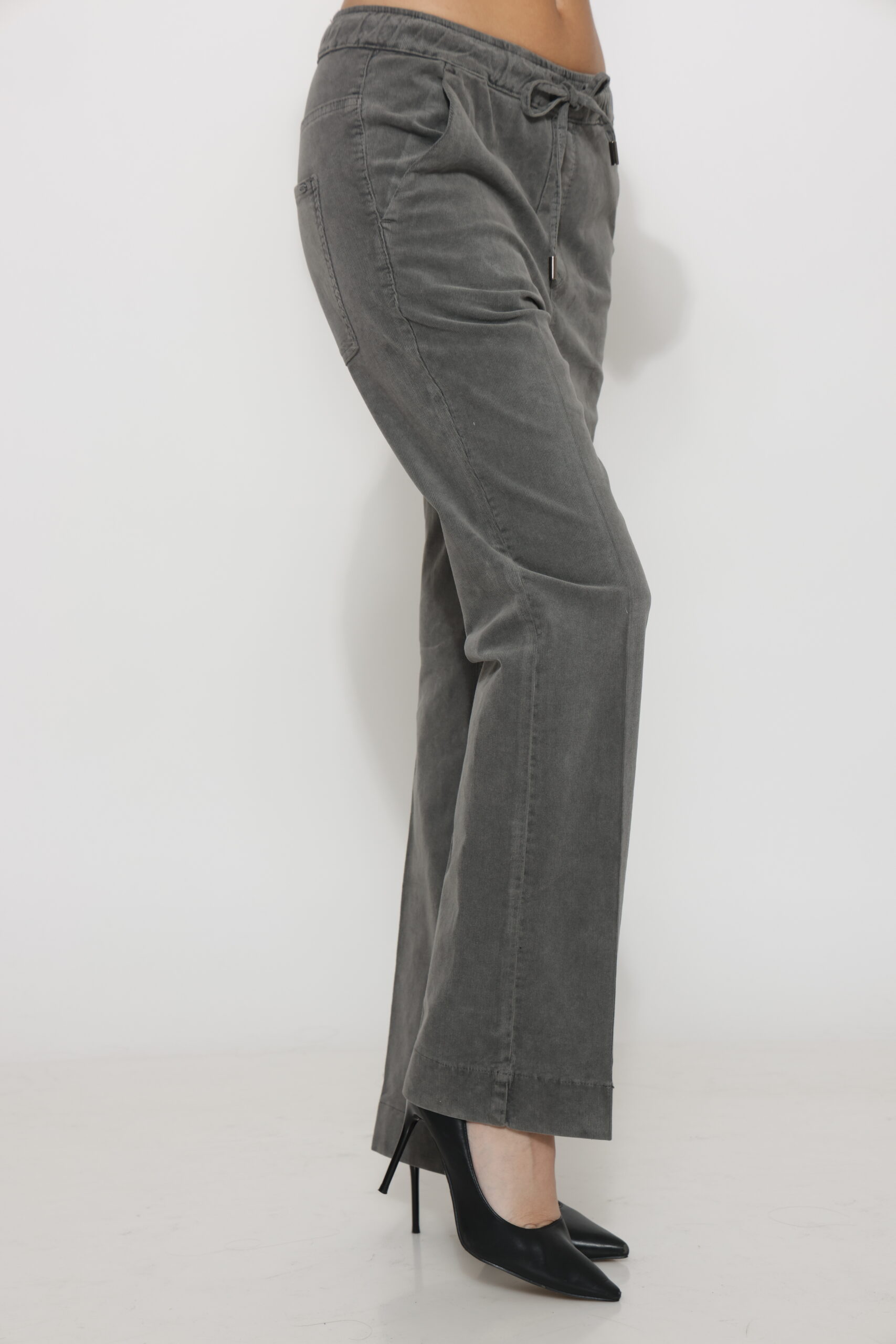 מכנסי קורדוי בגיזרה ישרה עם גומי ושרוך ולייקרה