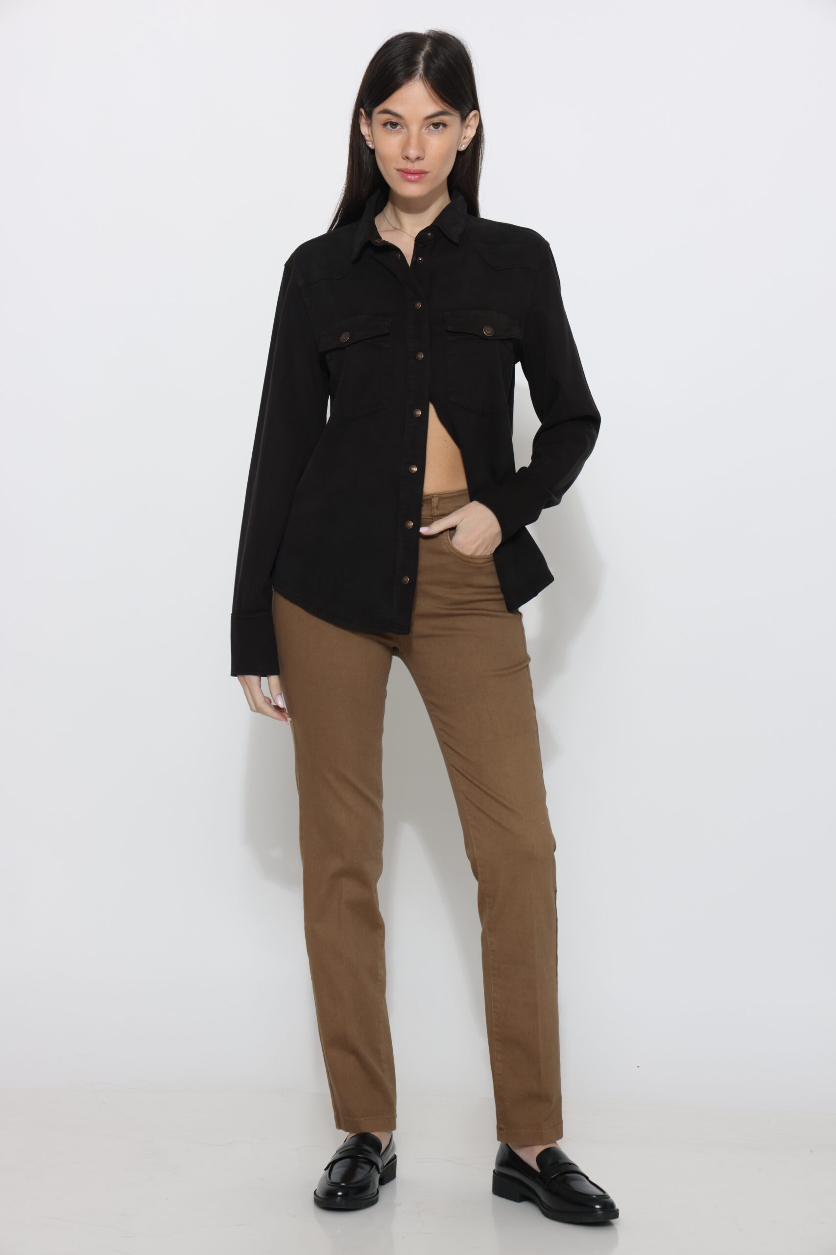 מכנסי גינס בגיזרה סקינית עם לייקרה