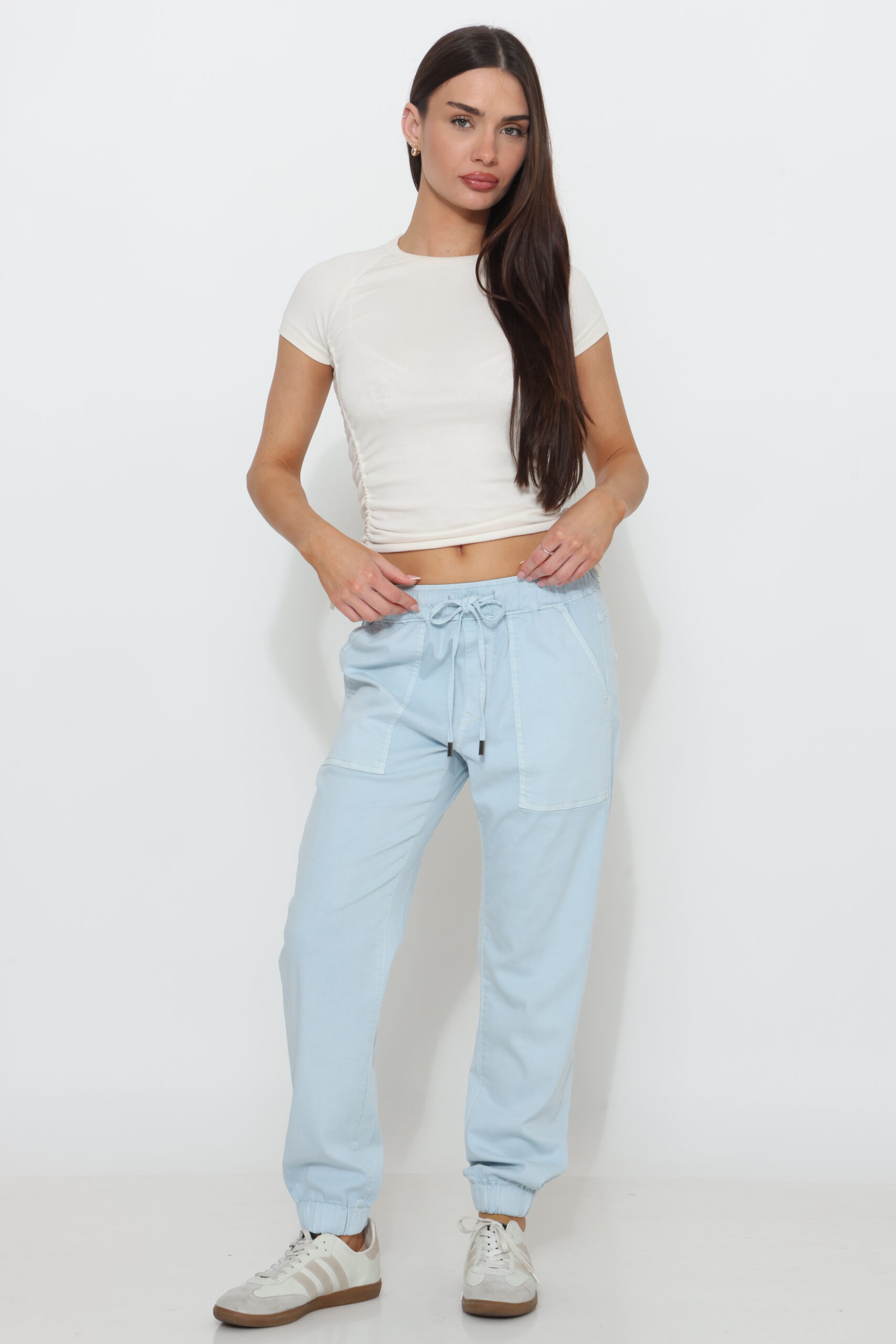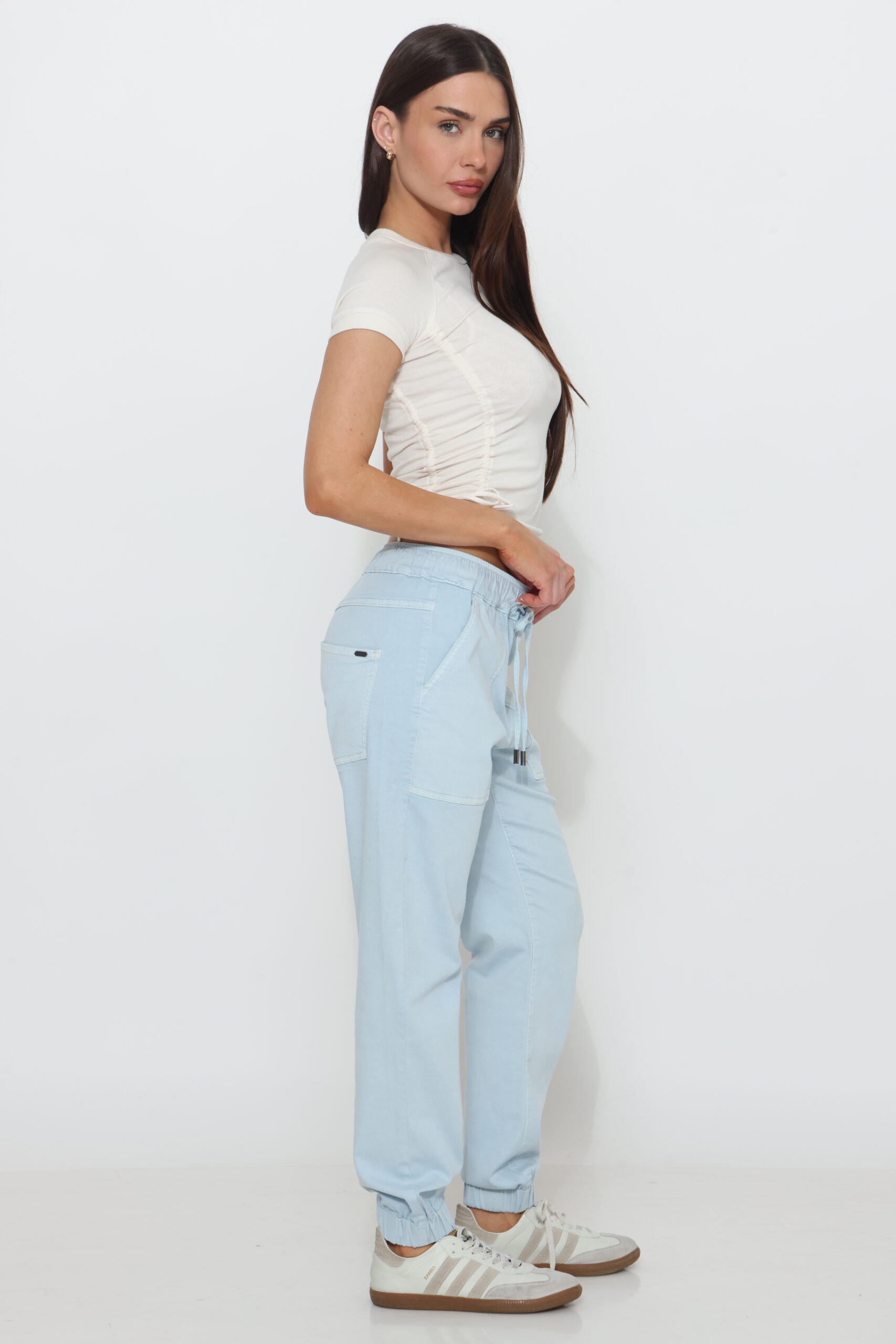 מכנסי כותנה מובחרת עם גומי במותן ושרוך, גומי ברגל