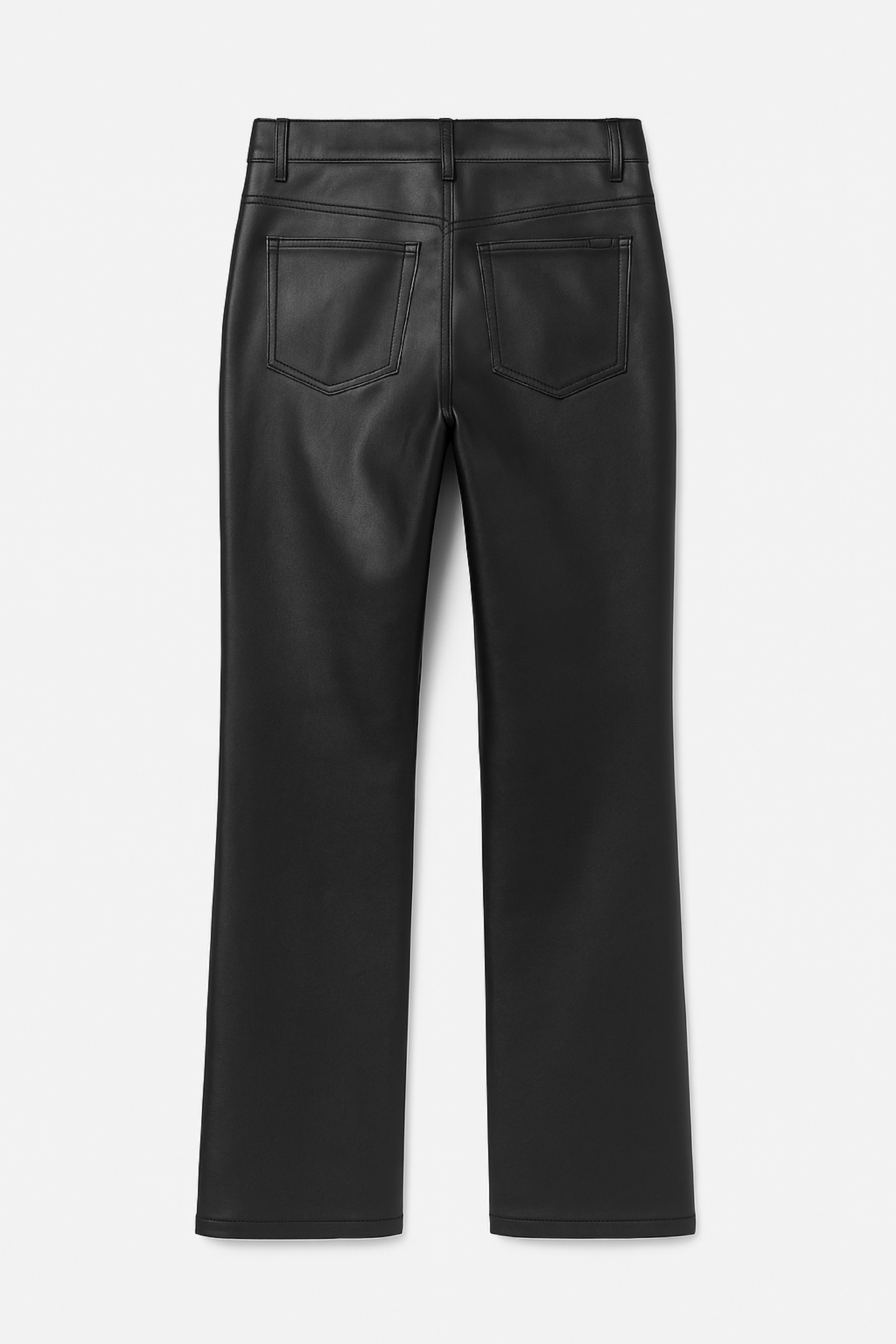 מכנסי עור בגיזרה ישרה מבד שחור סיליקון מראה מט, עם לייקרה