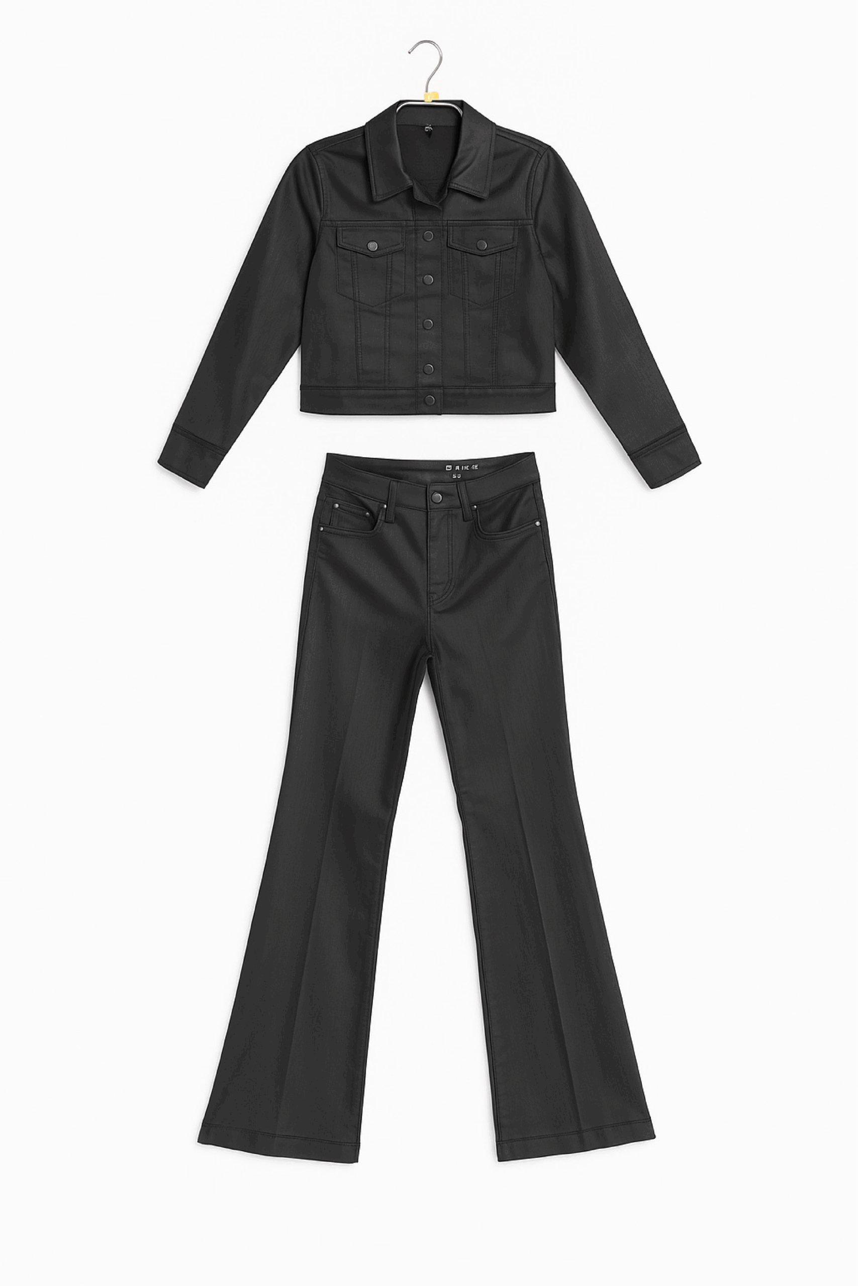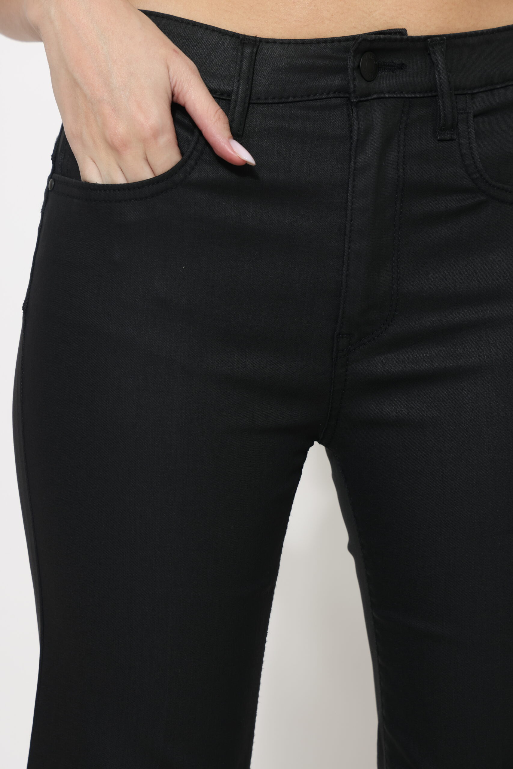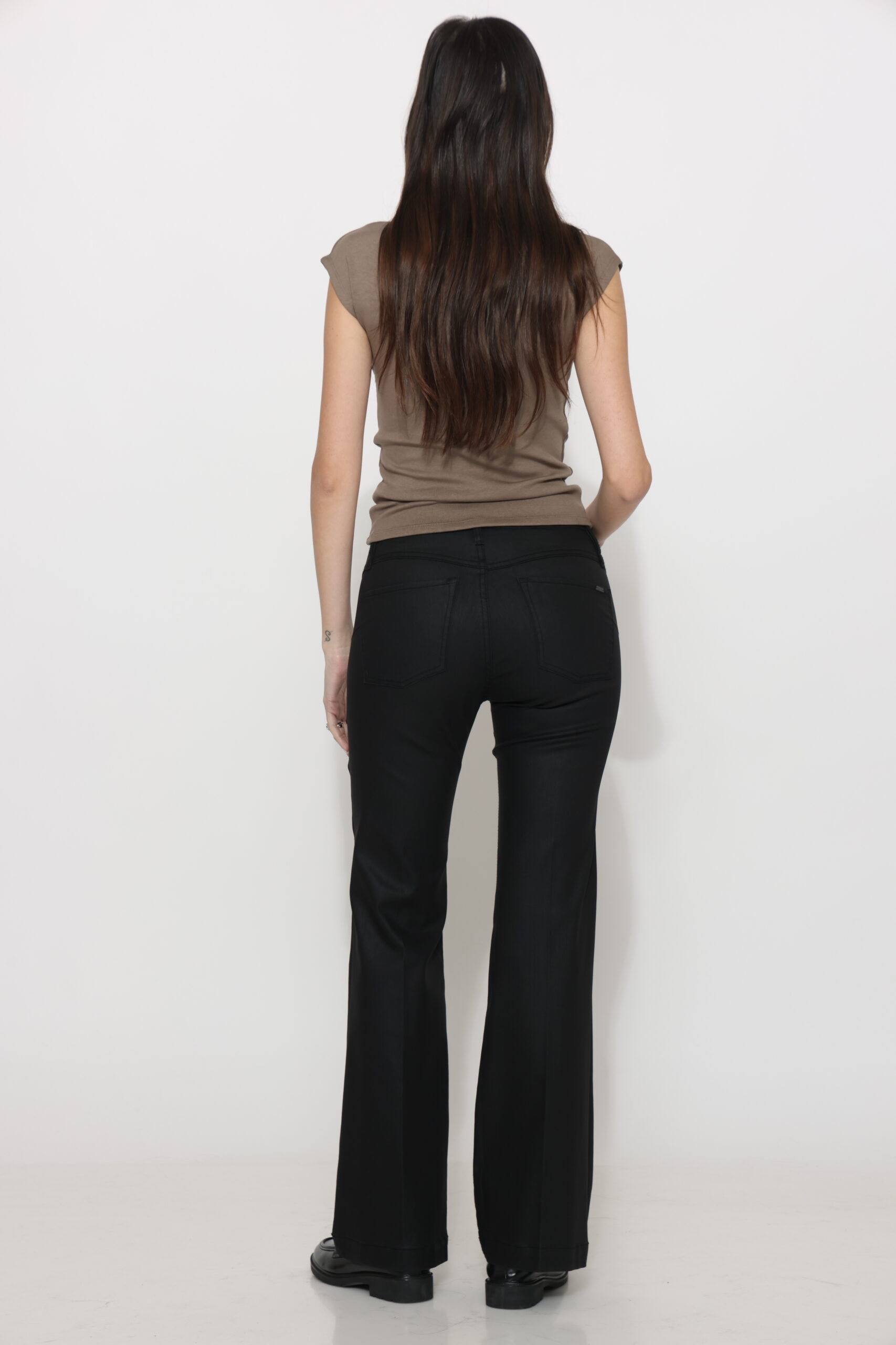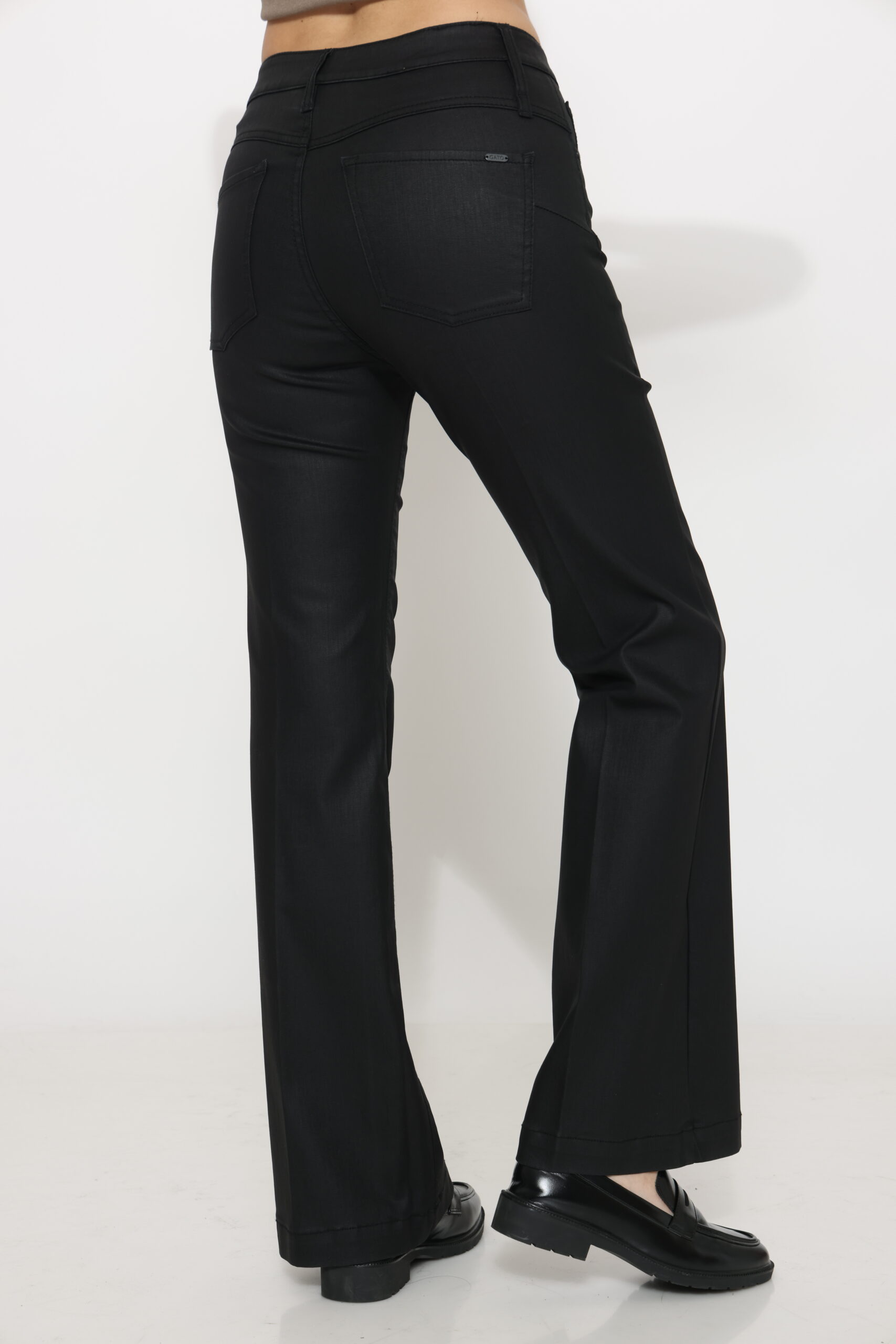 מכנס מבד סיליקון מרוח במראה מט עם לייקרה בגזרת פלייר ארוכה