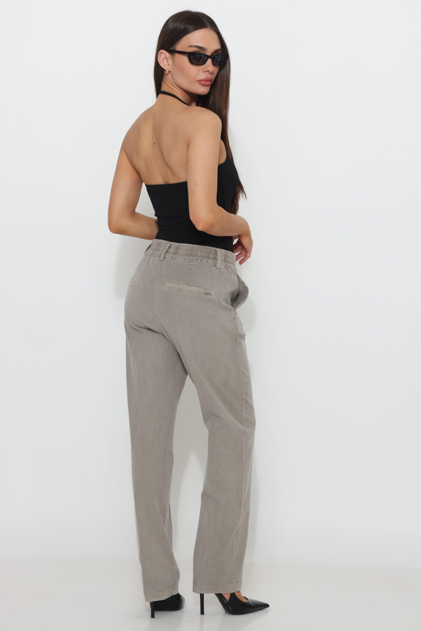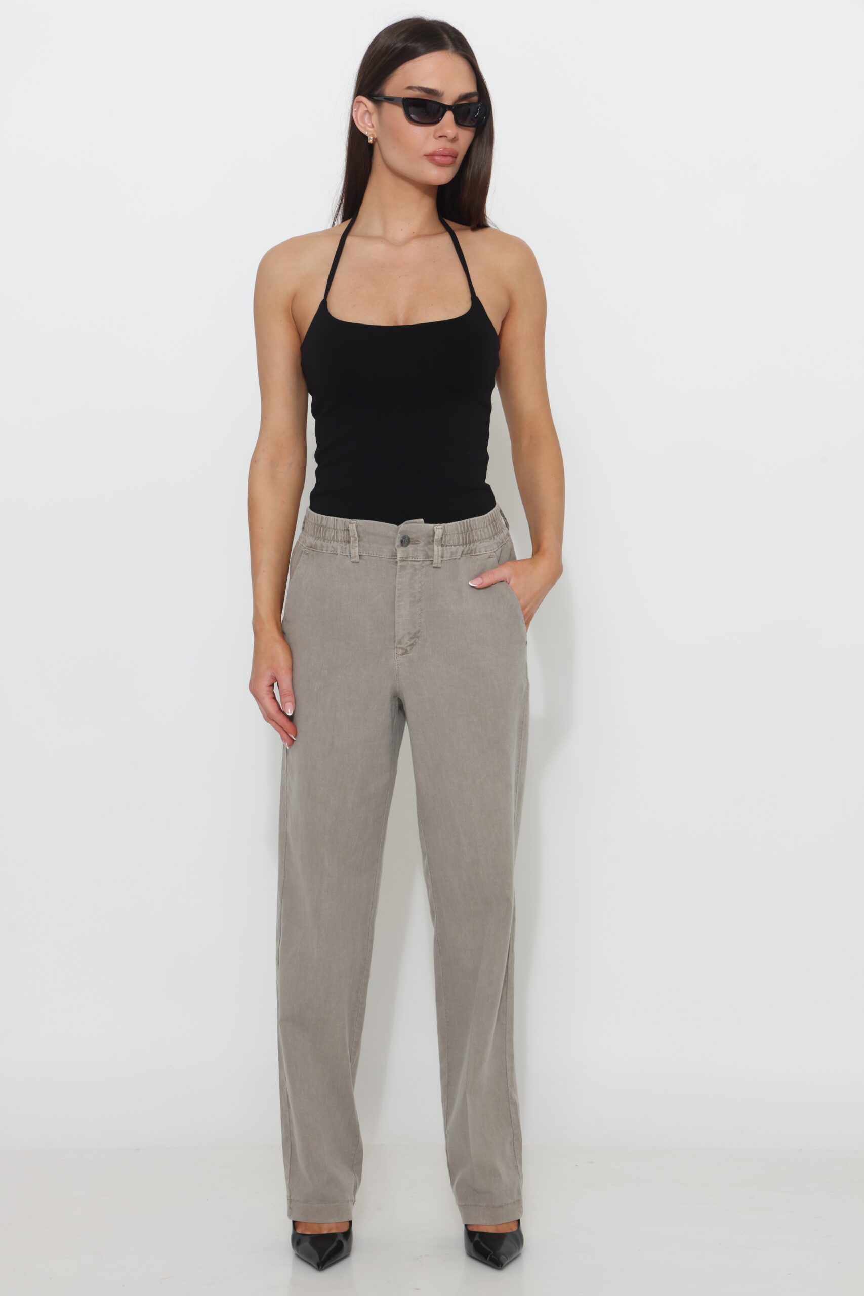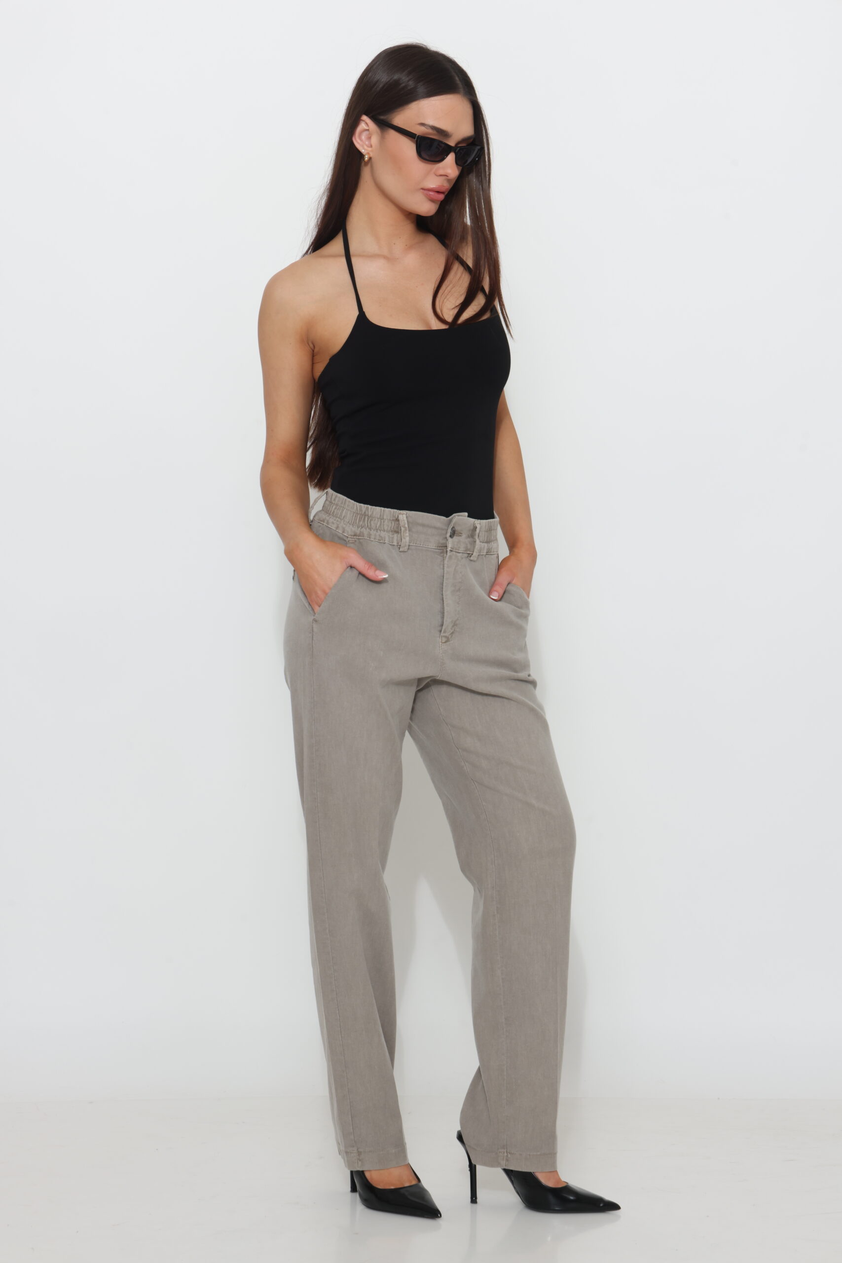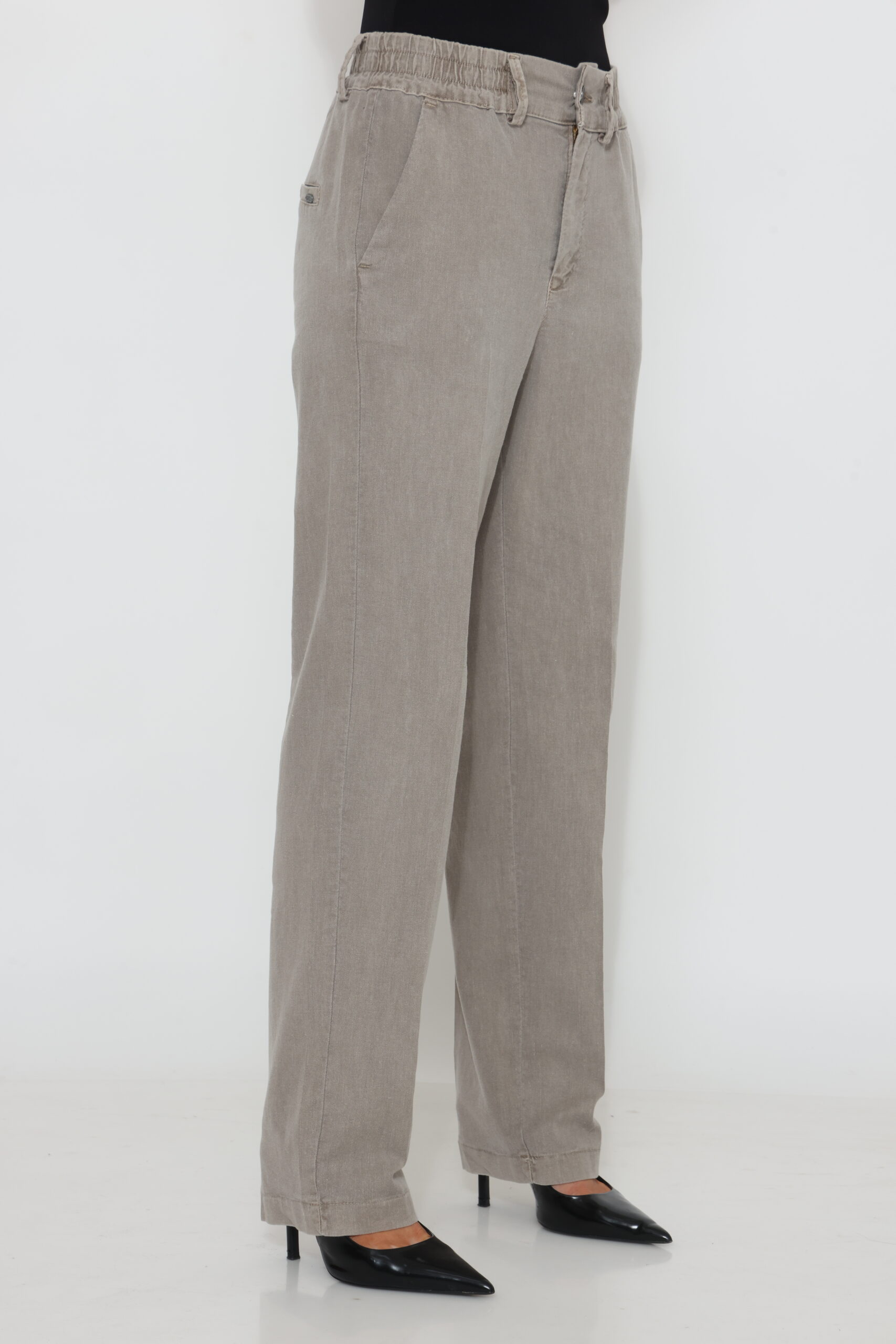 מכנס כותנה בגיזרה ישרה משוחררת עם שני כפתורים וגומי נסתר