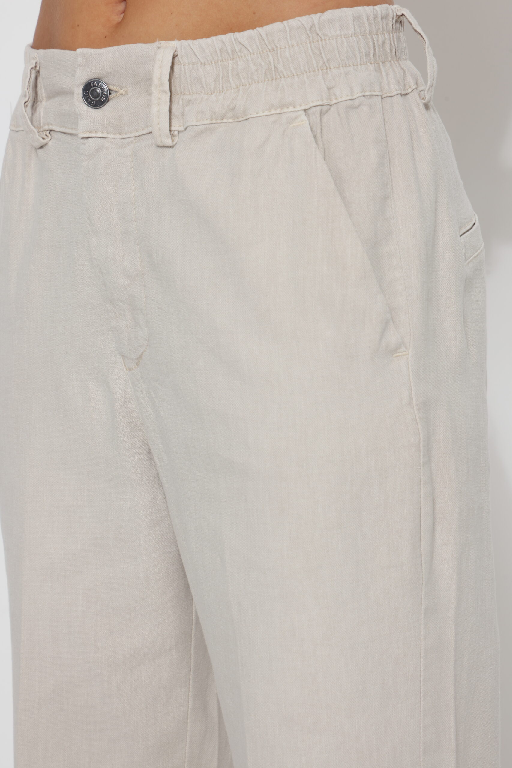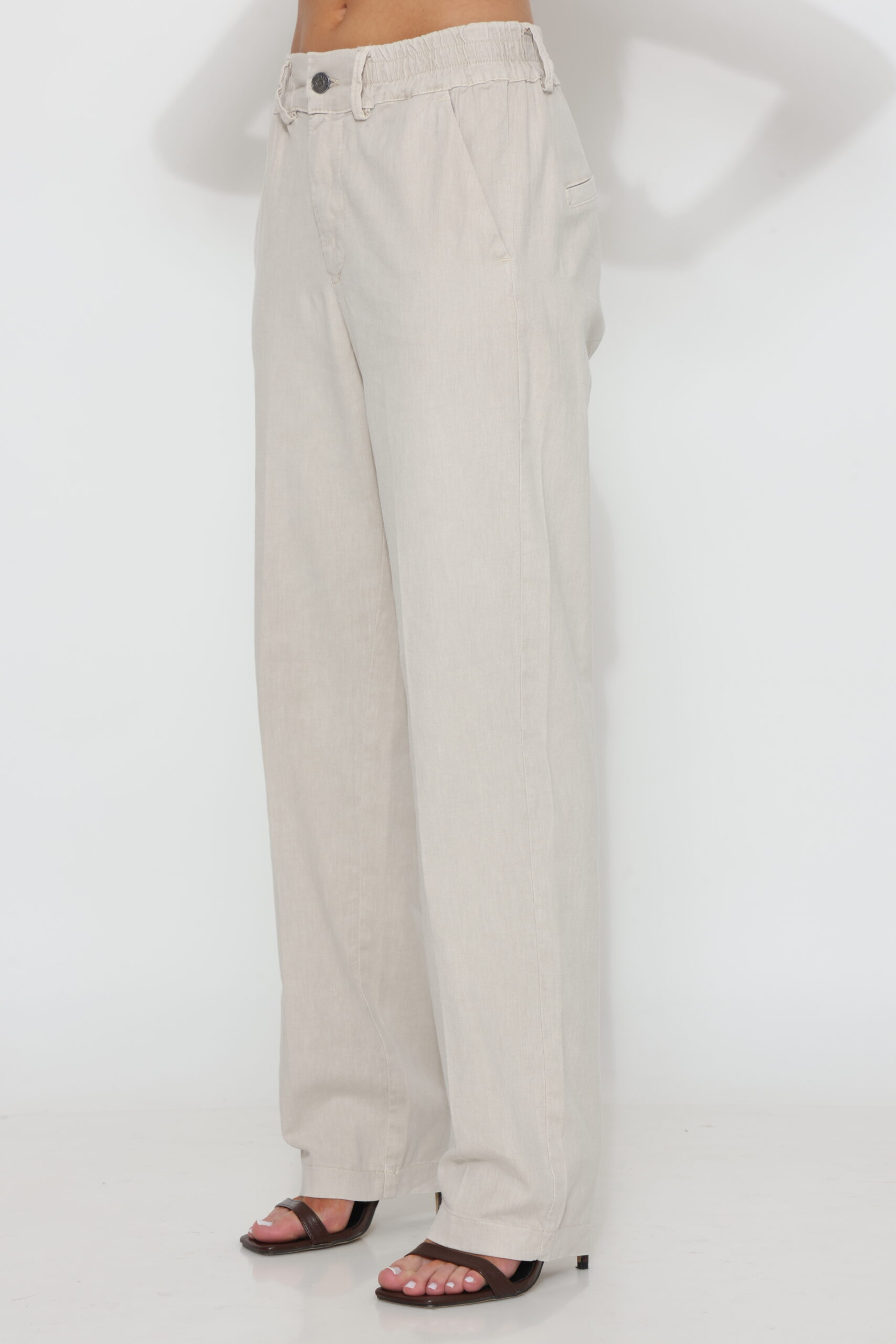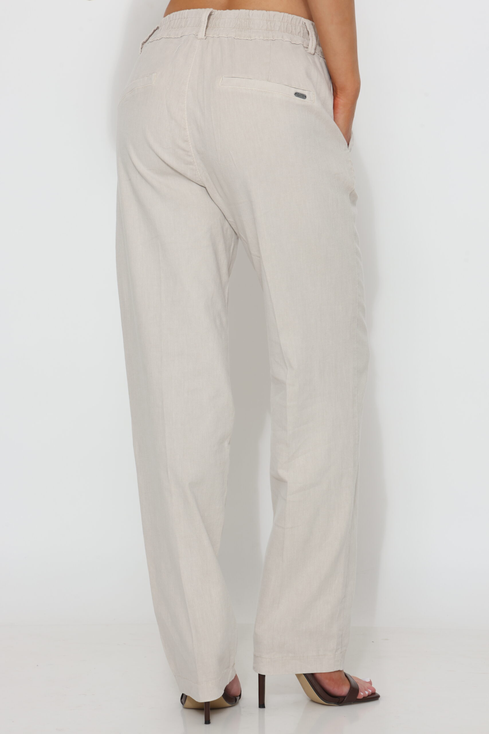 מכנס כותנה בגיזרה ישרה משוחררת עם שני כפתורים וגומי נסתר