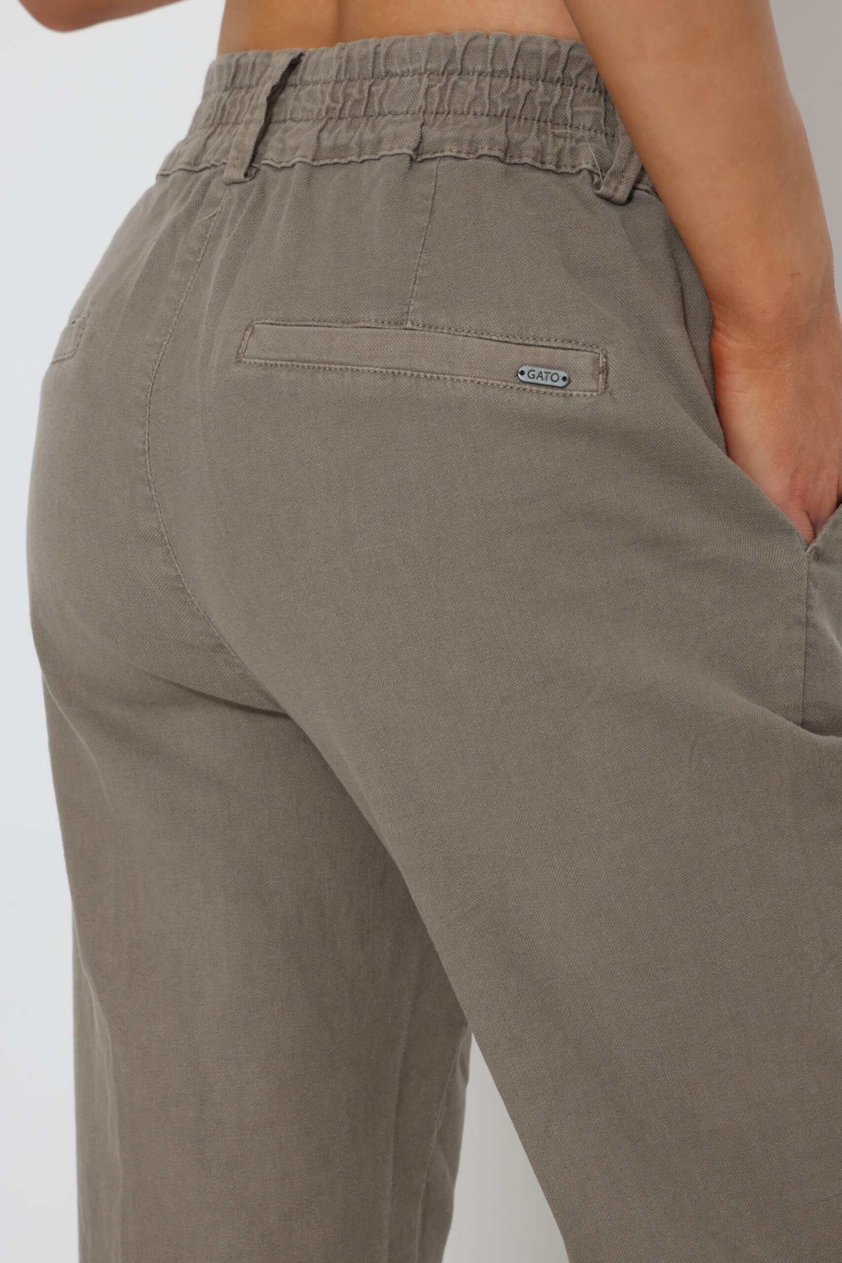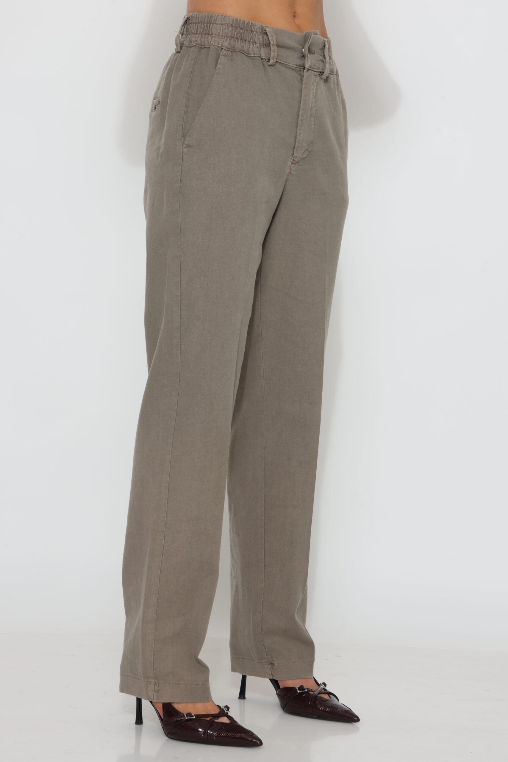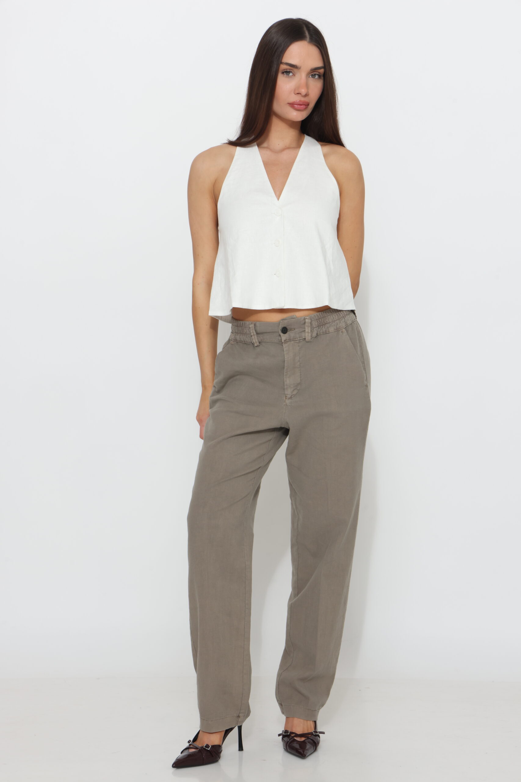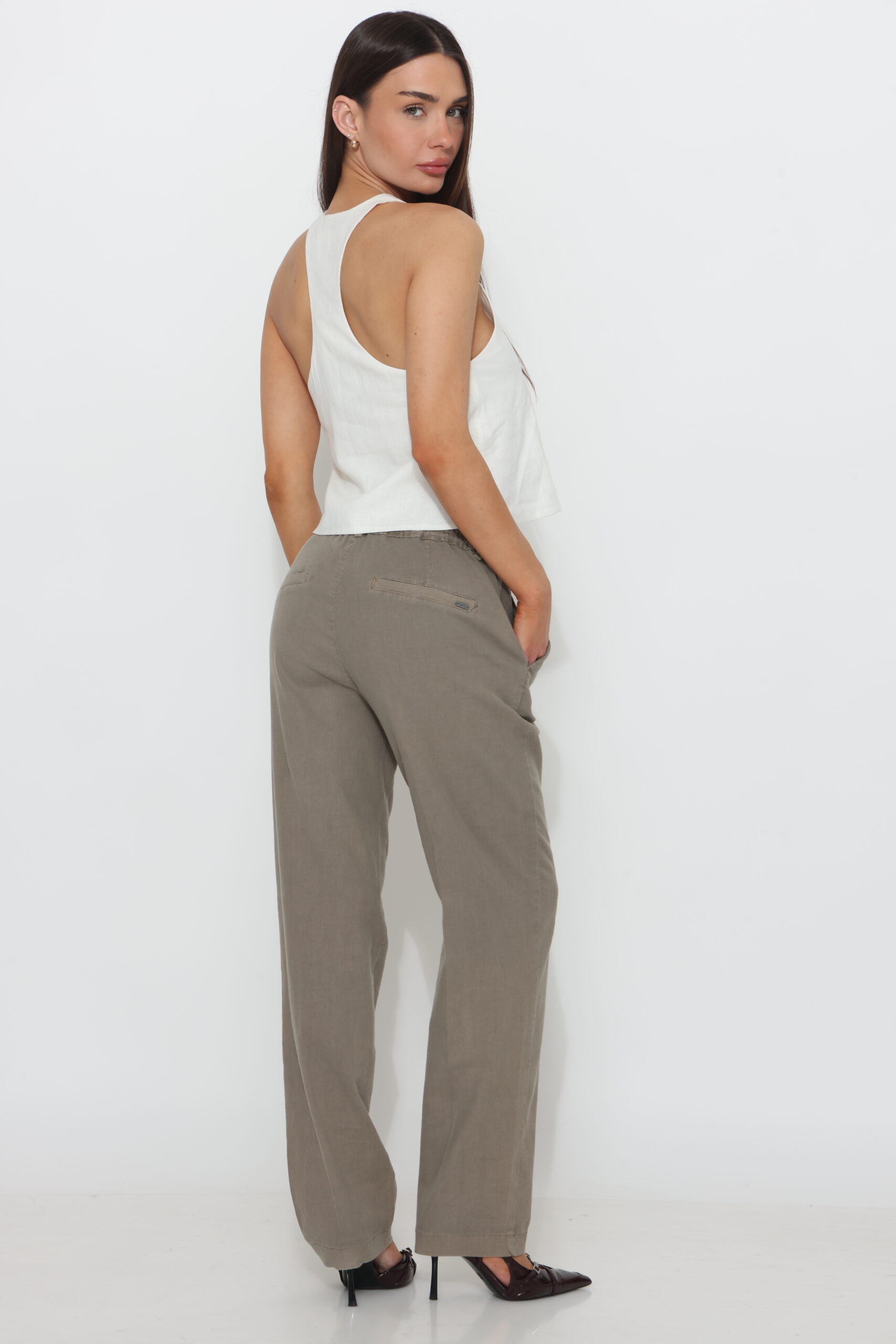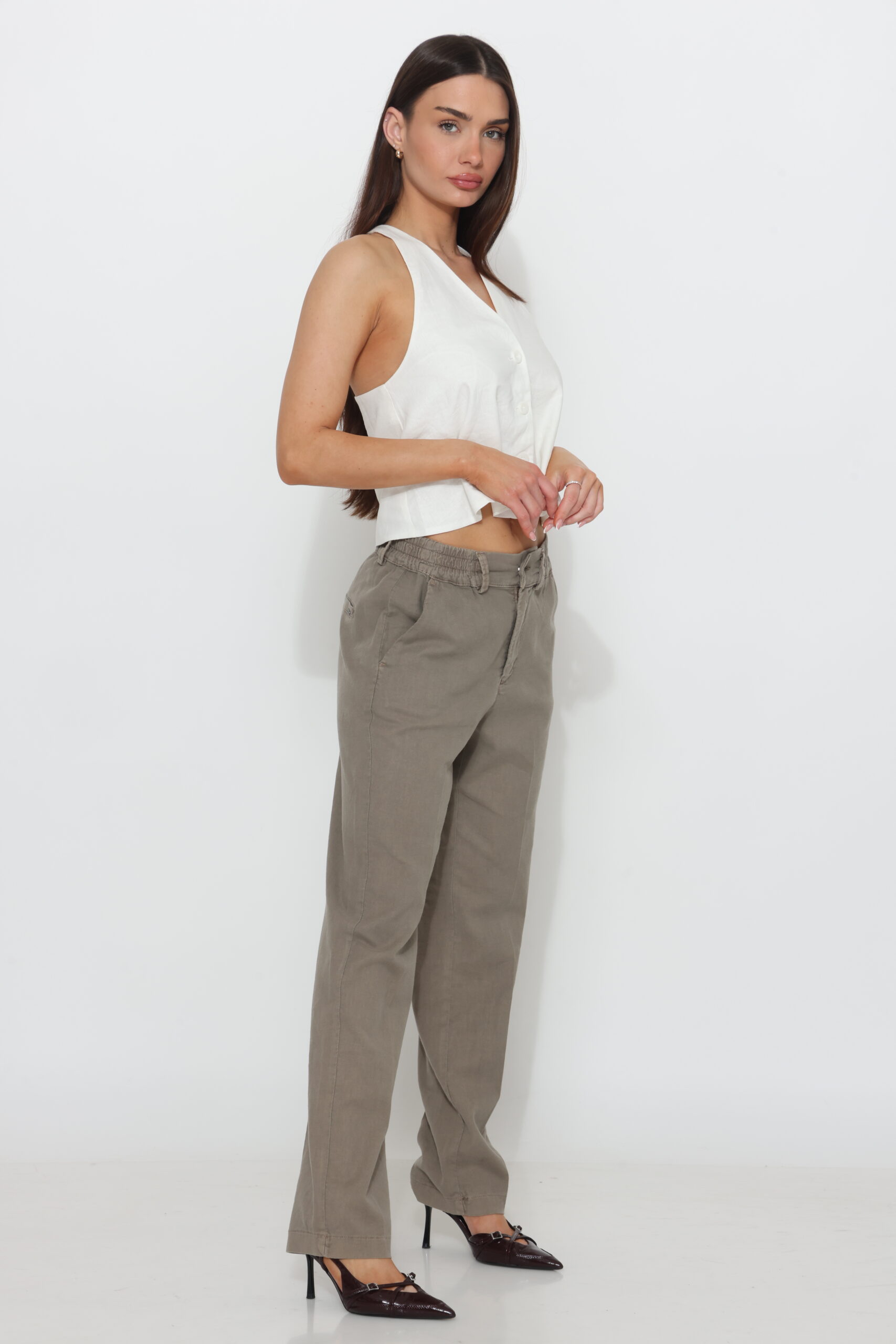 מכנס כותנה בגיזרה ישרה משוחררת עם שני כפתורים וגומי נסתר