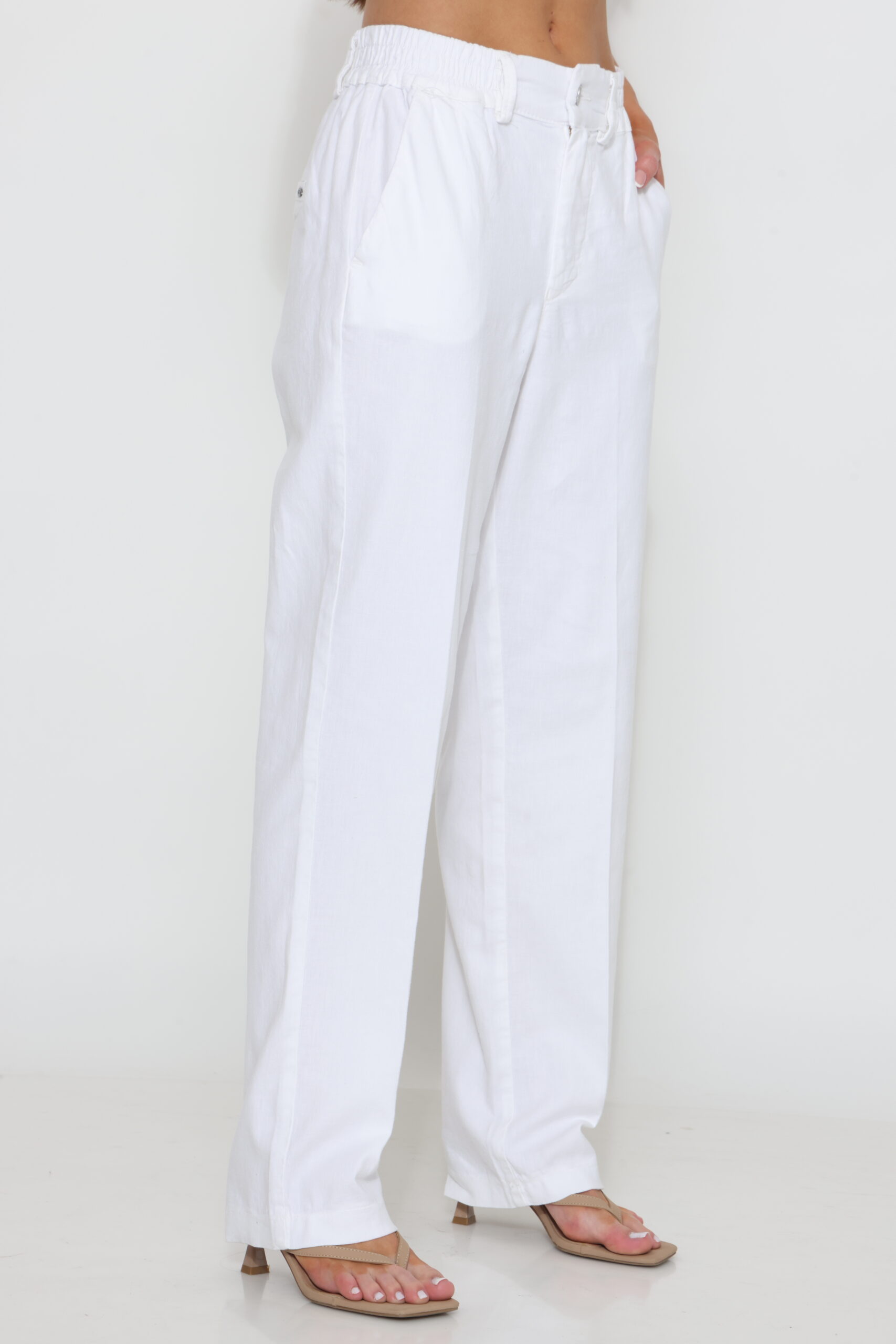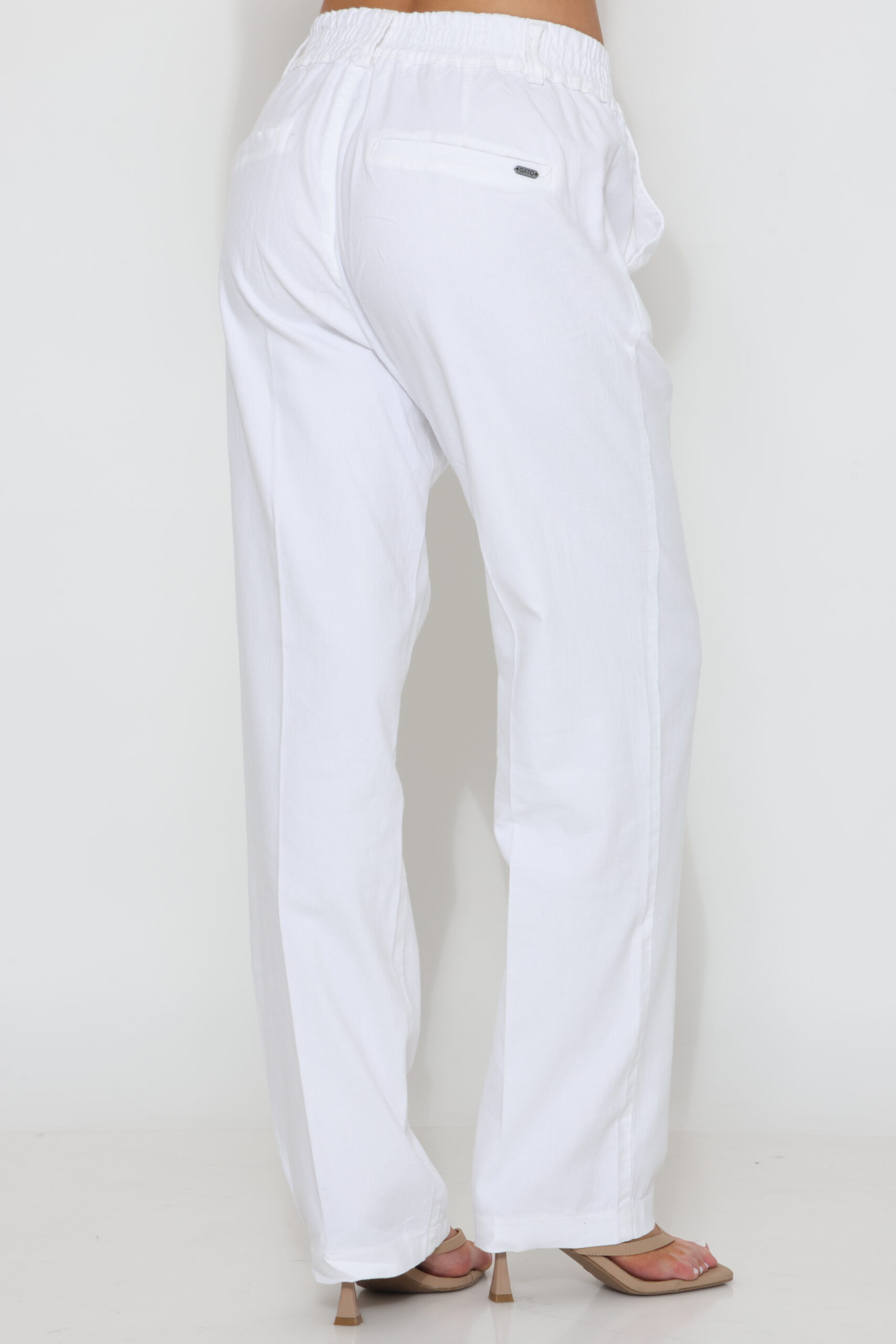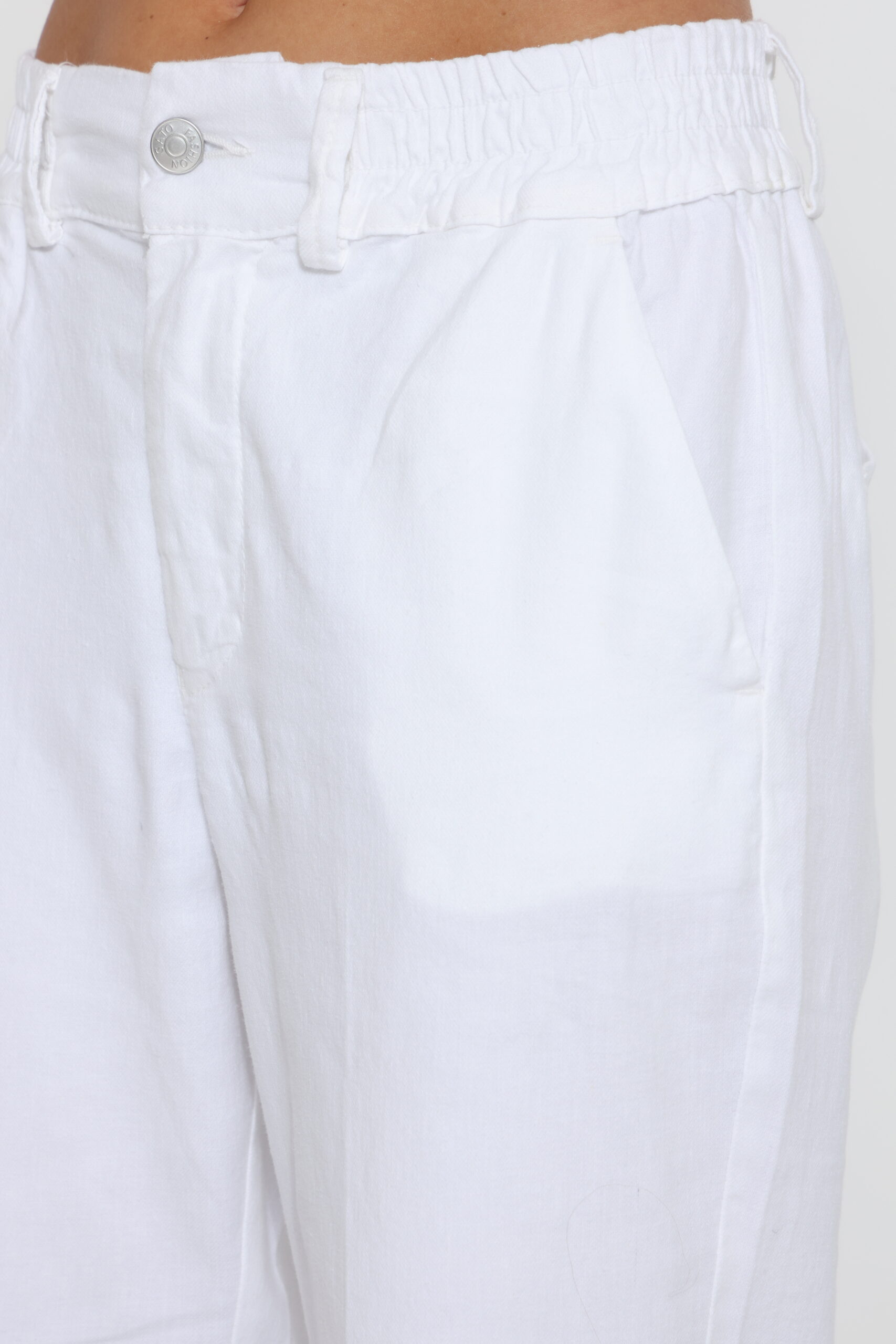 מכנס כותנה בגיזרה ישרה משוחררת עם שני כפתורים וגומי נסתר