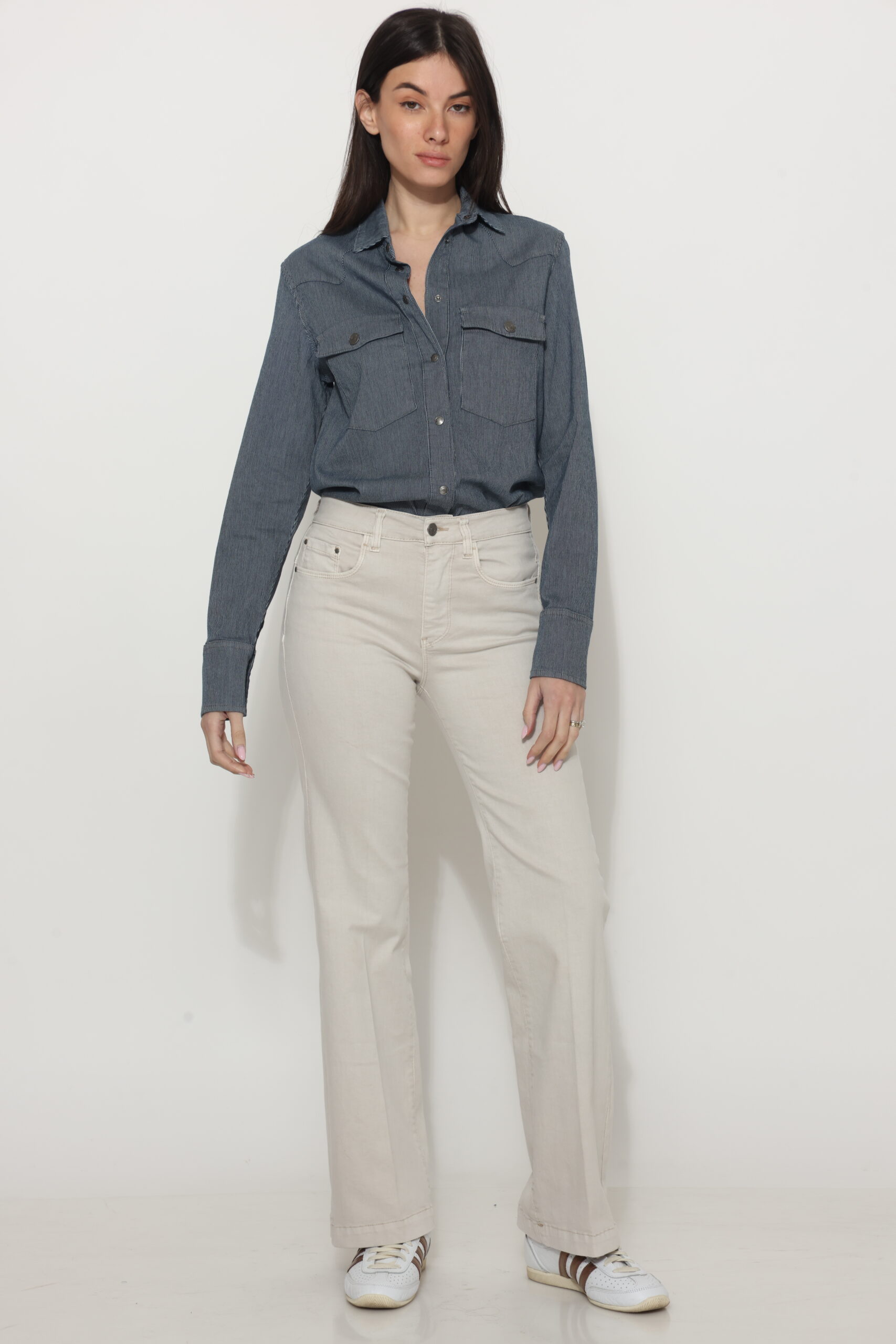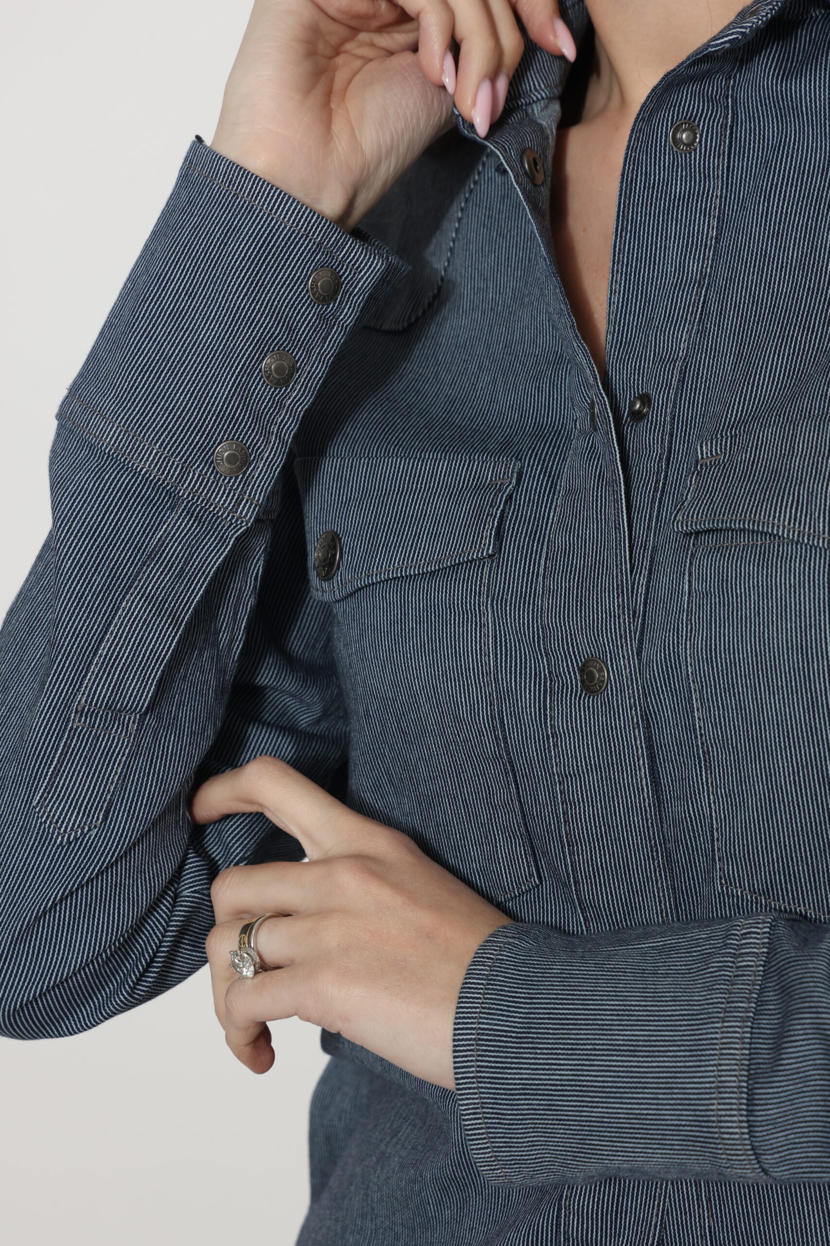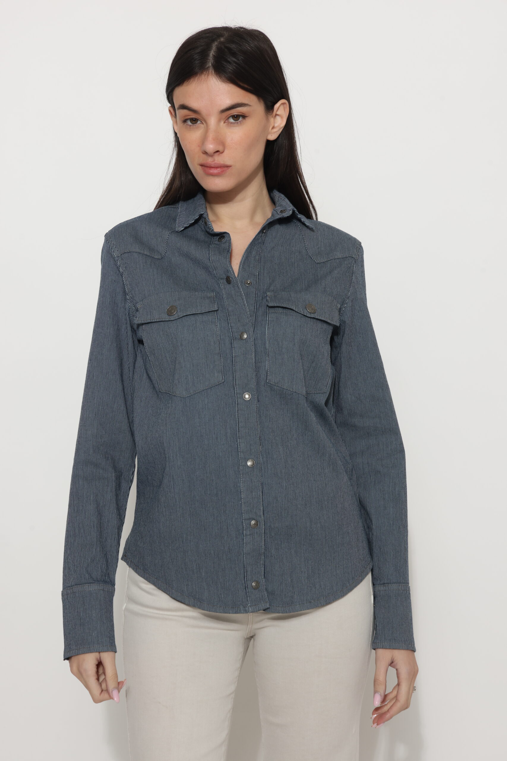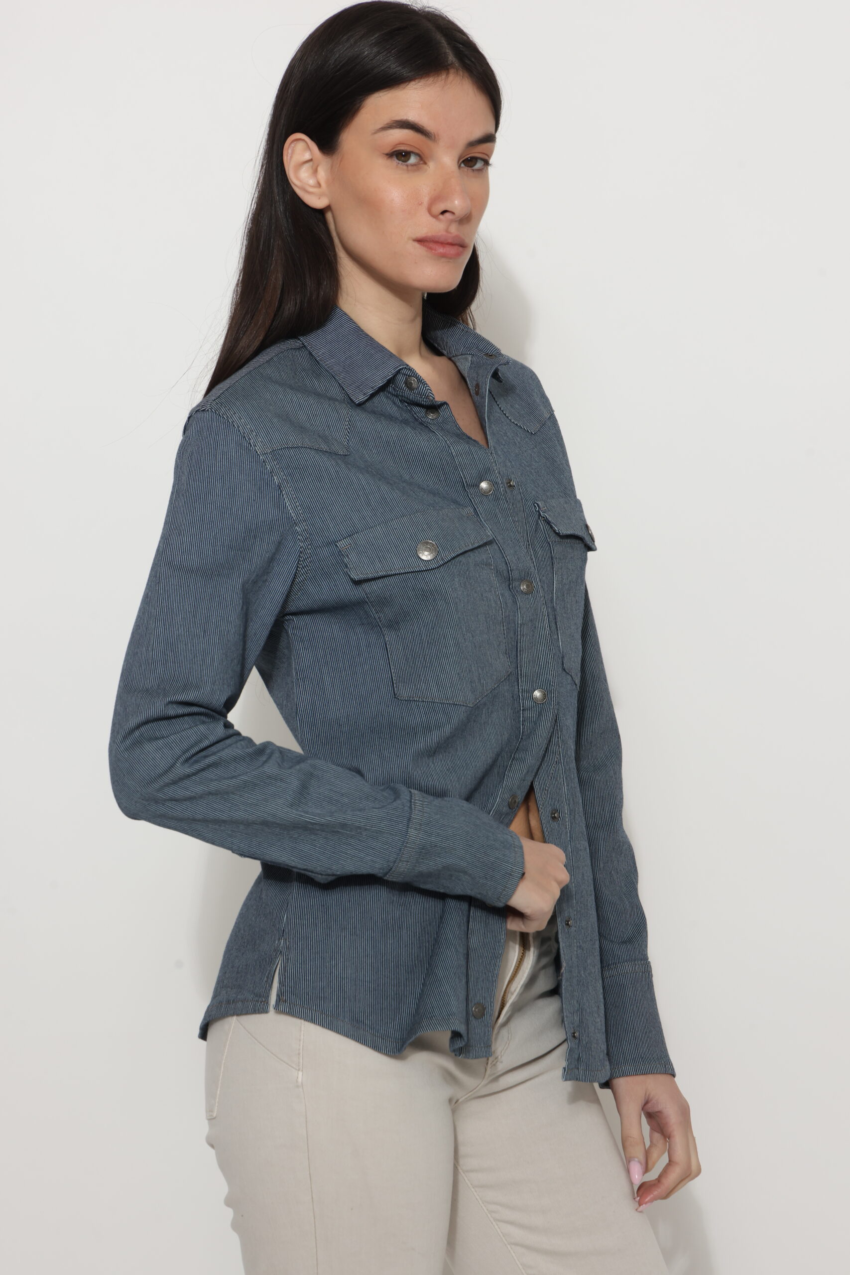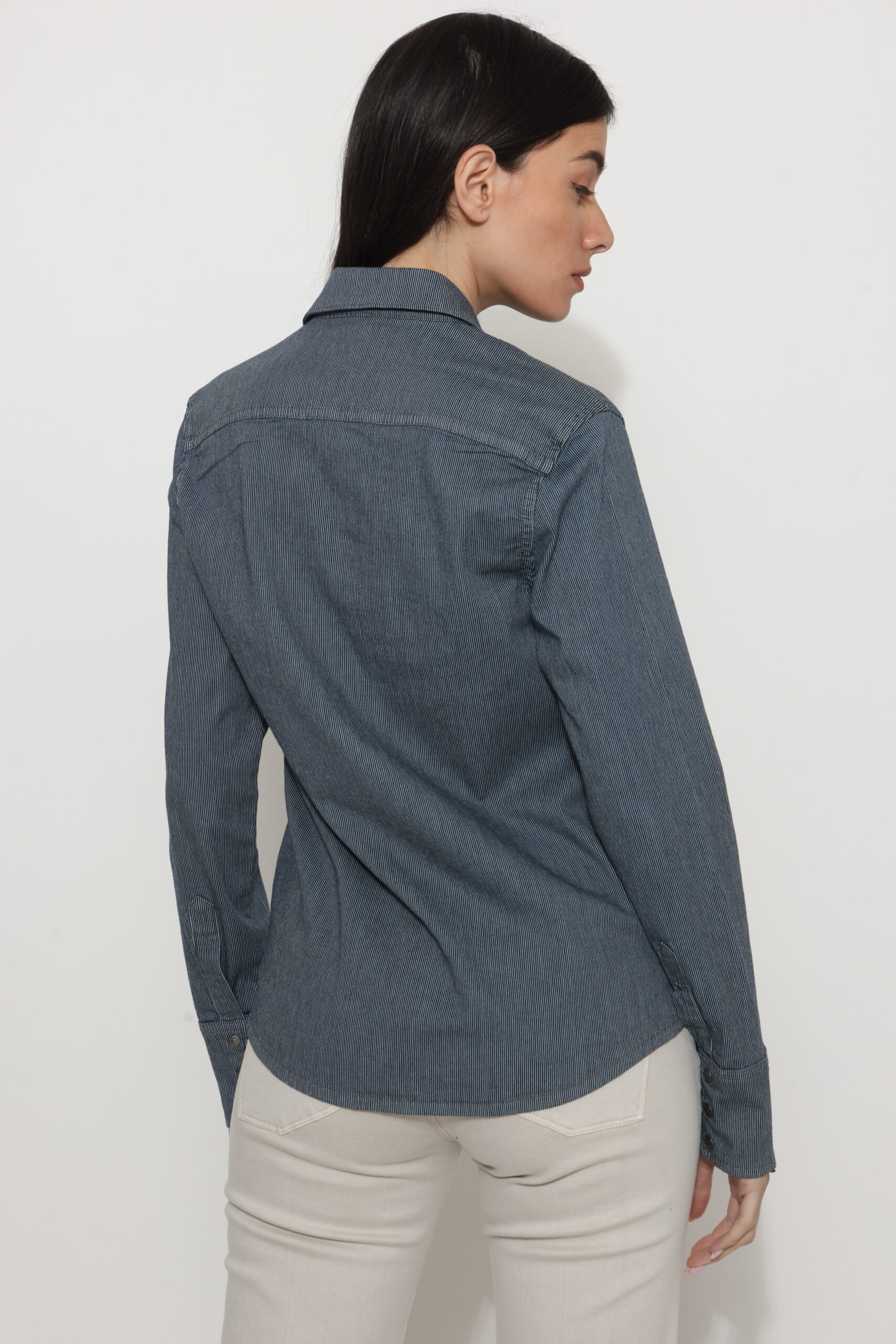 חולצת גינס עם טקסטורה של פסים דקים עם לייקרה