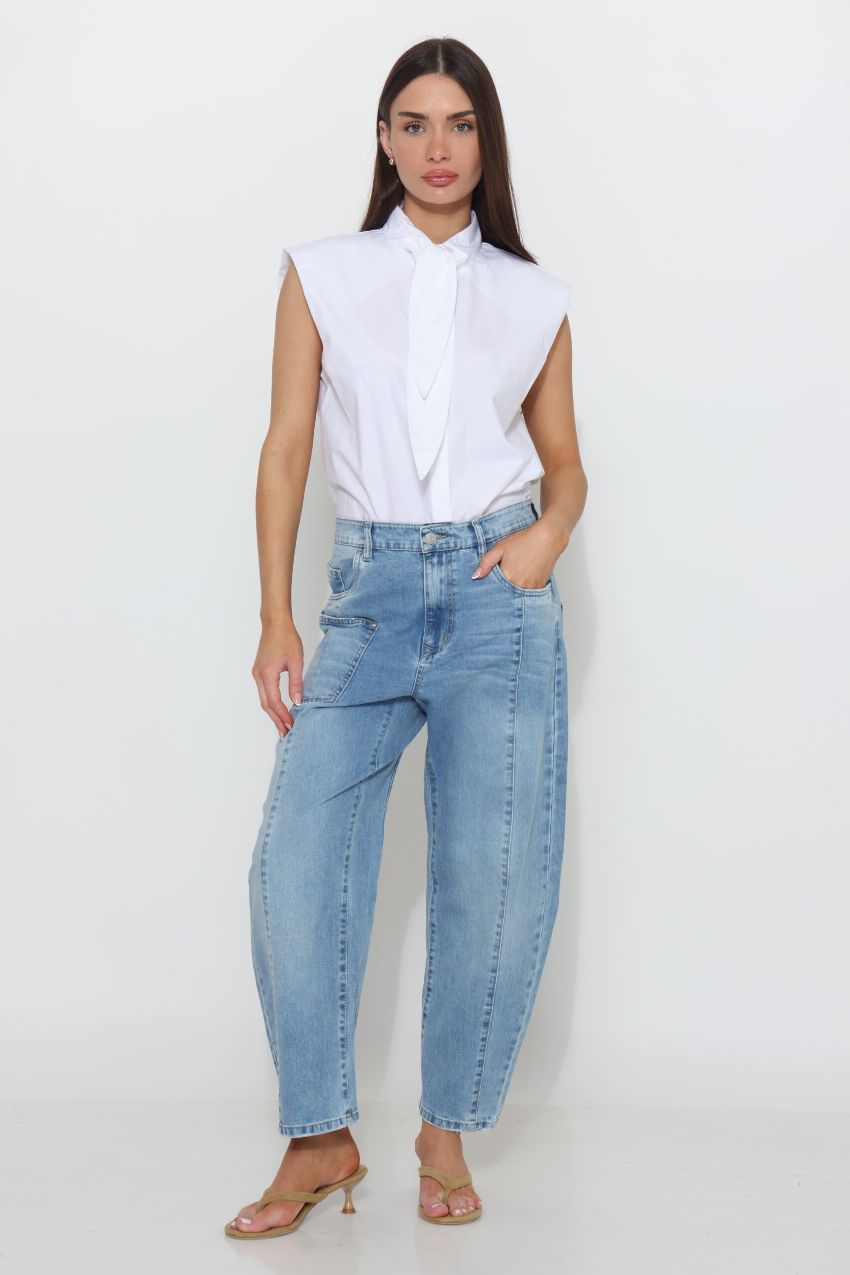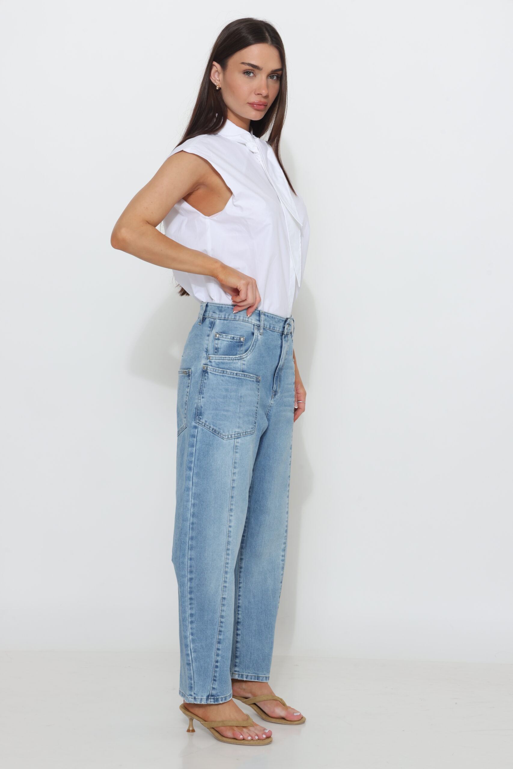 גינס בגיזרת בלון עם תפר חלוקה וכיס קדמי צידי