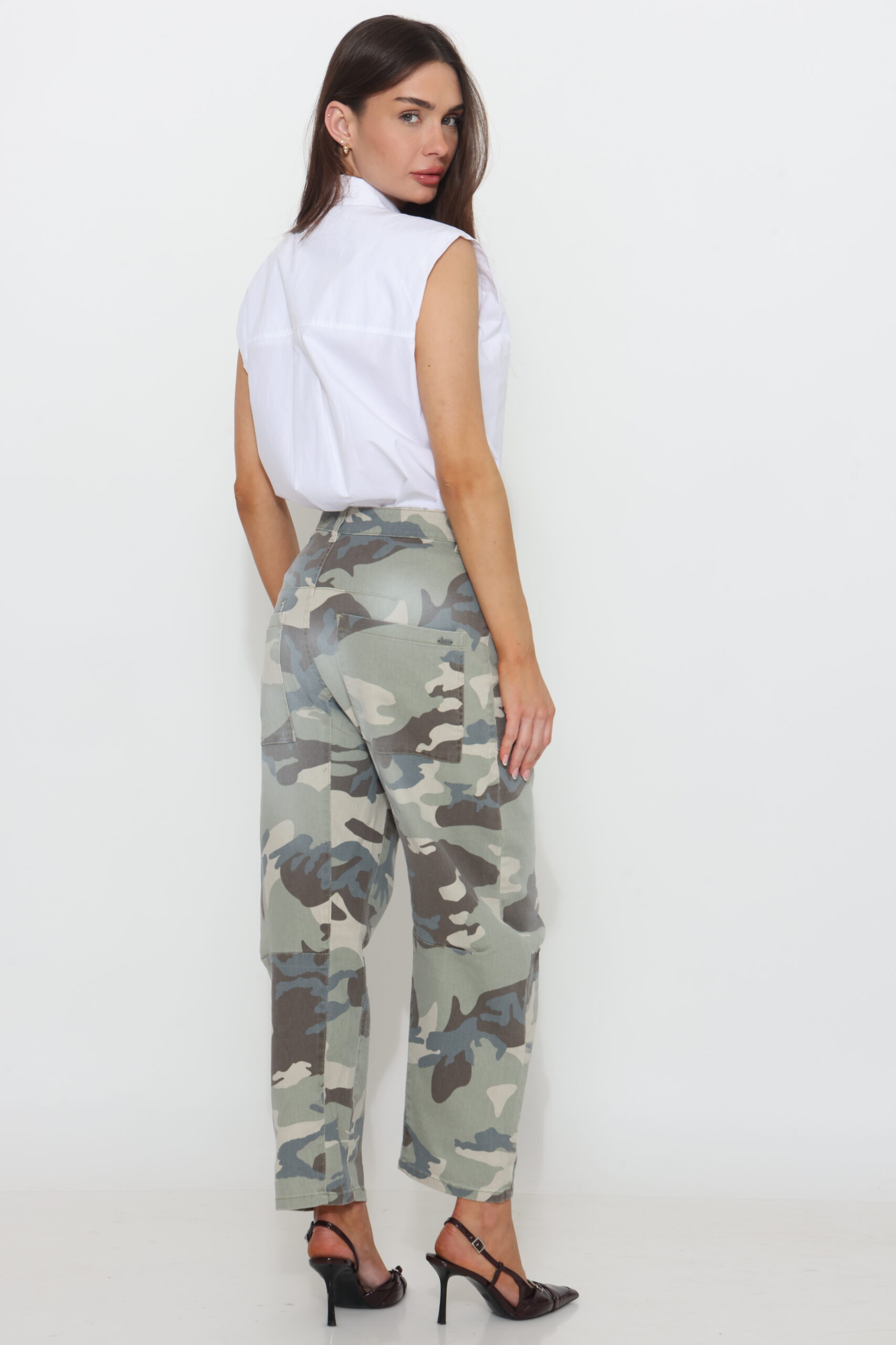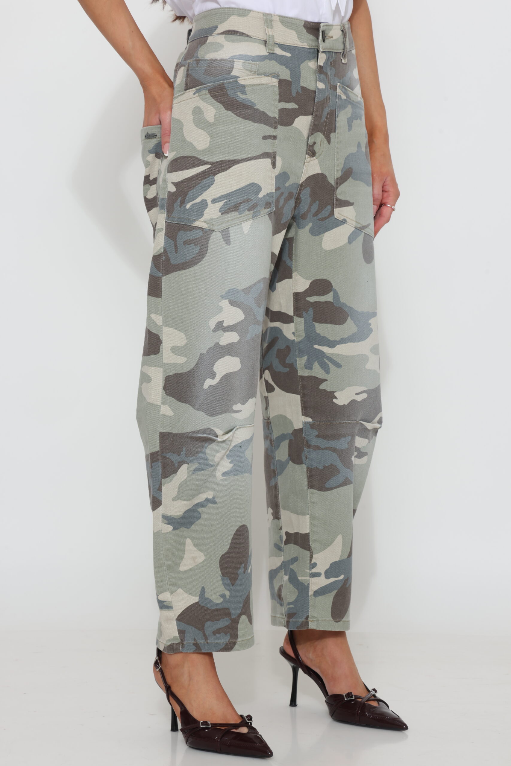 גינס בגזרת בלון עם כיסים קדמיים מבד קומופלאג