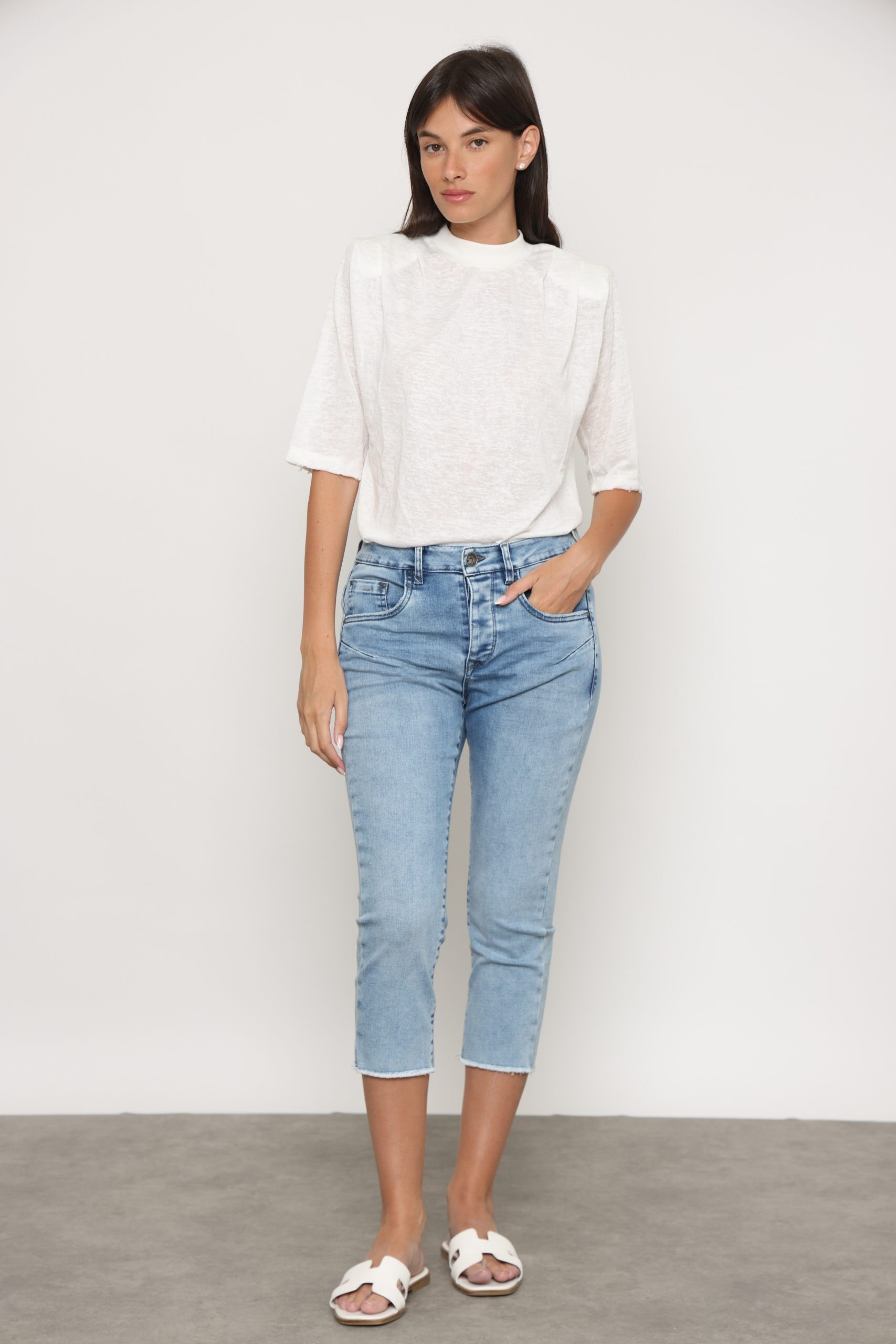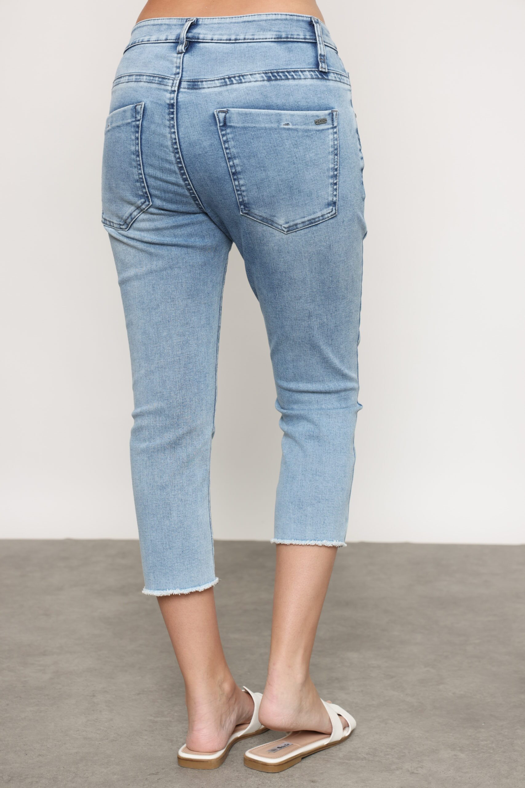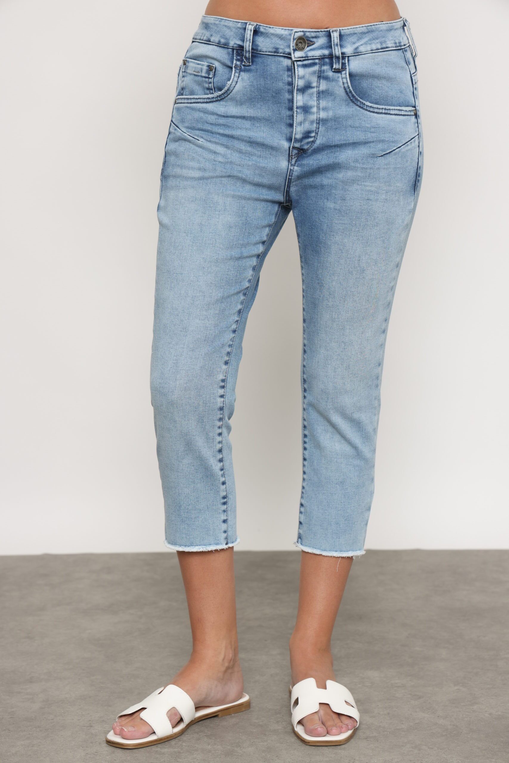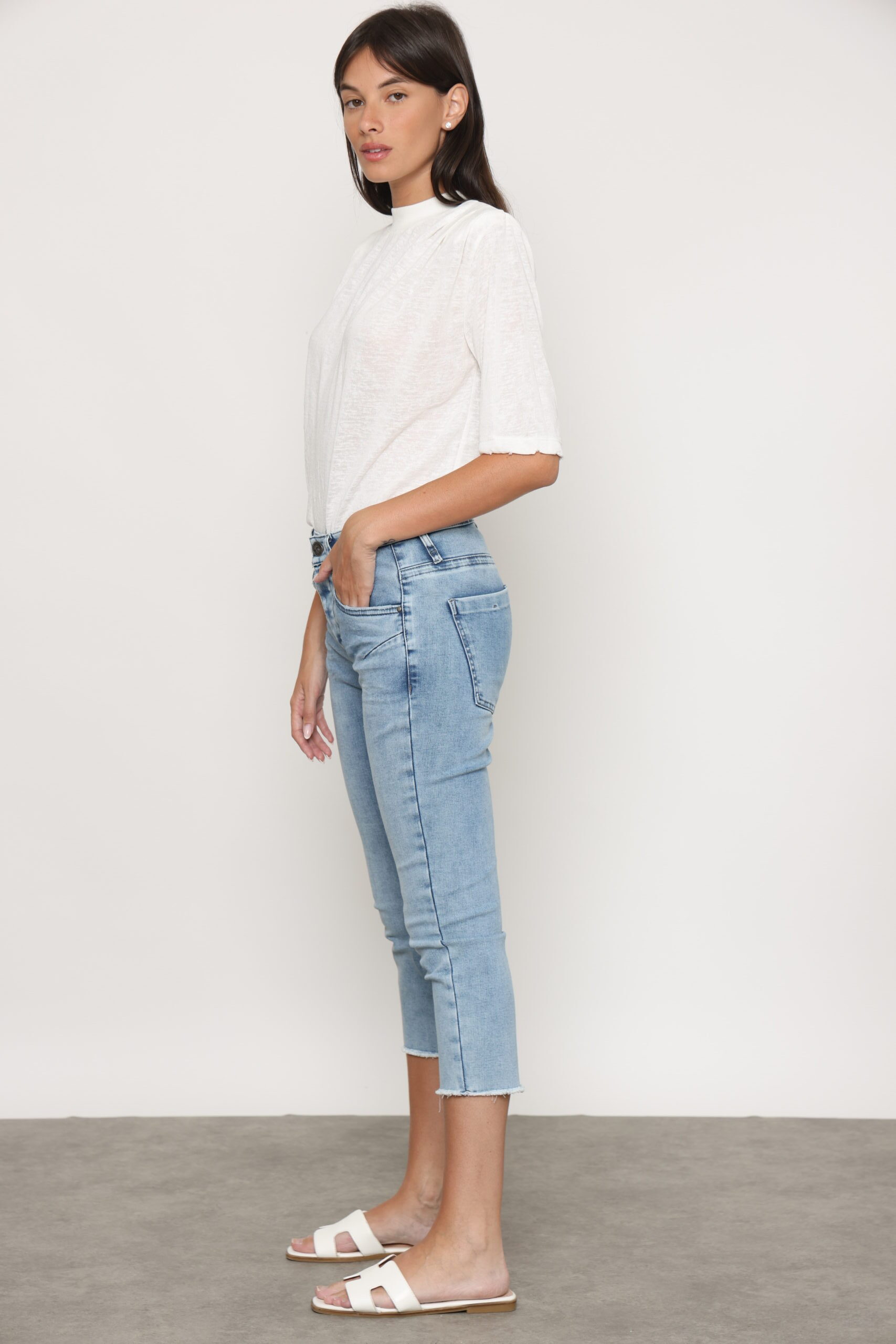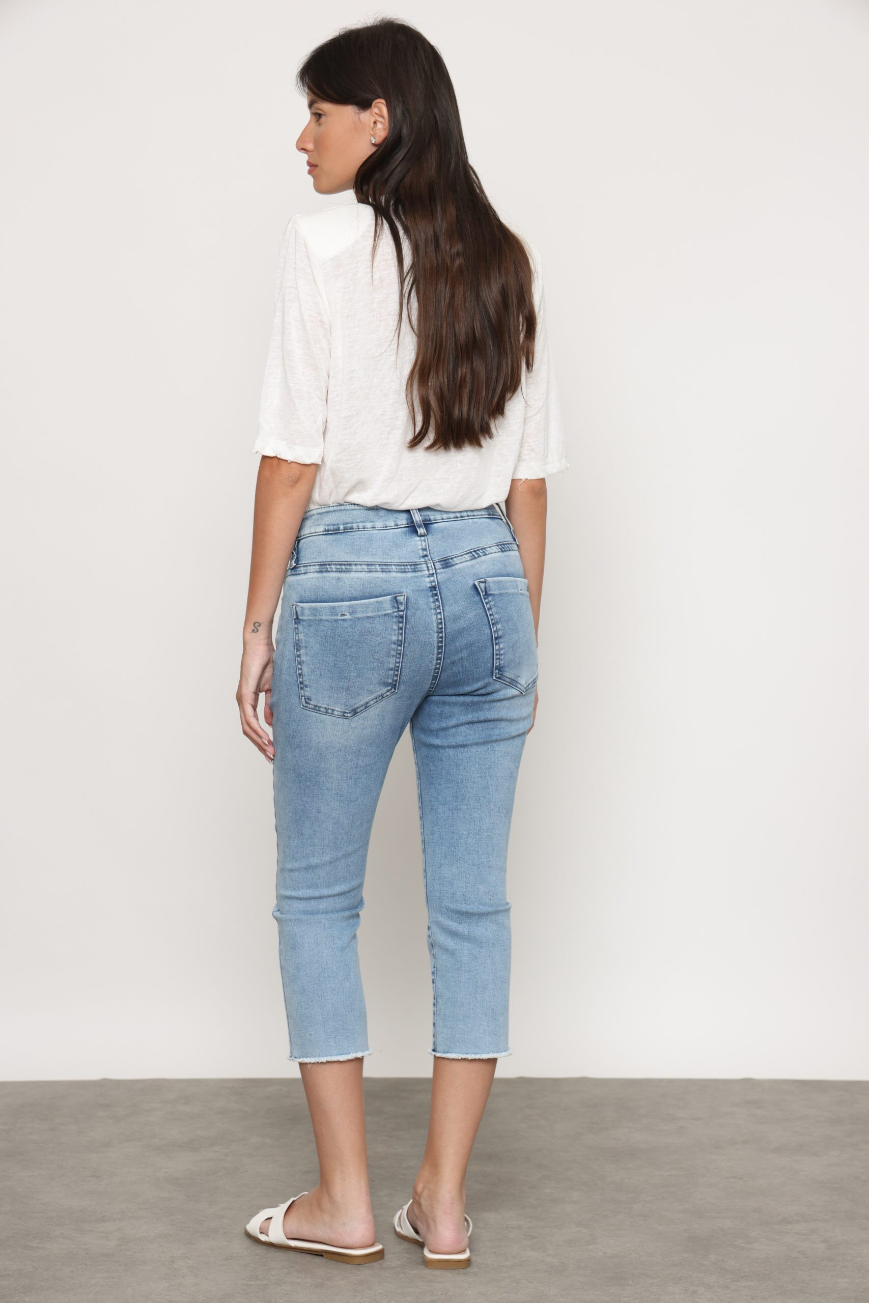 גינס בגזרת 7\8 סיומת גזורה בגוון בהיר עם לייקרה