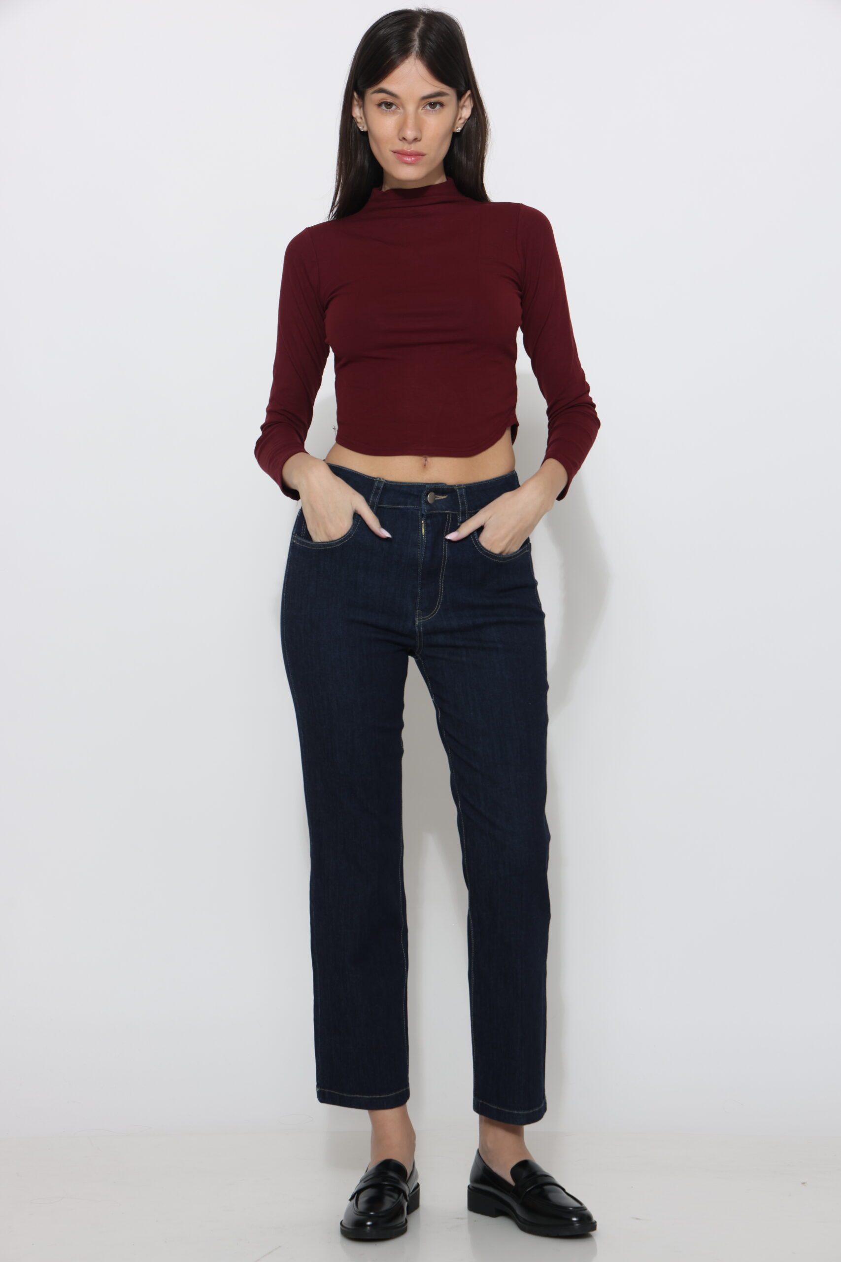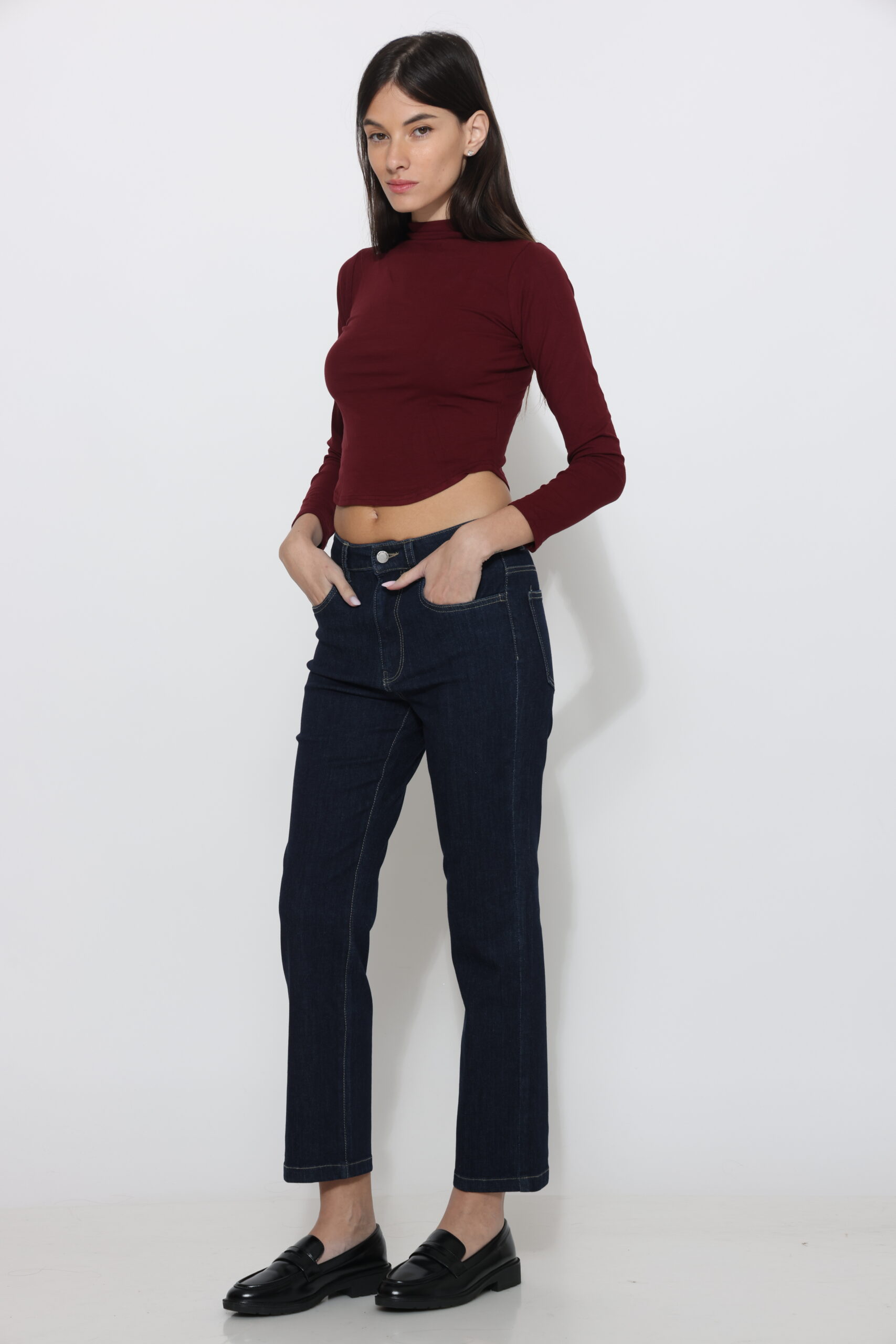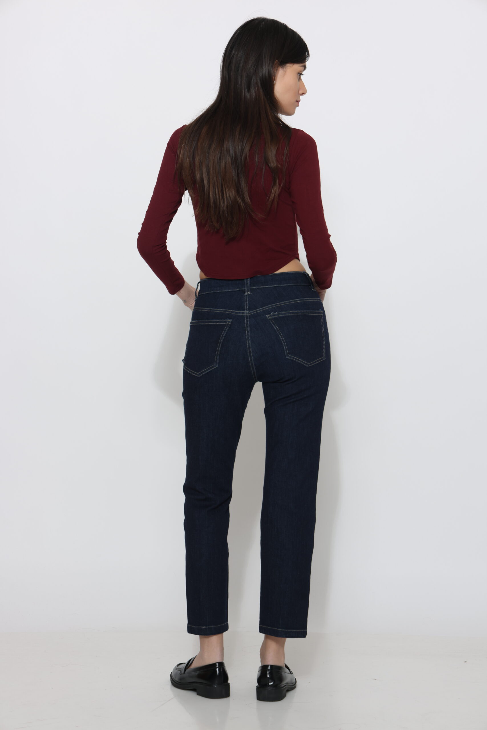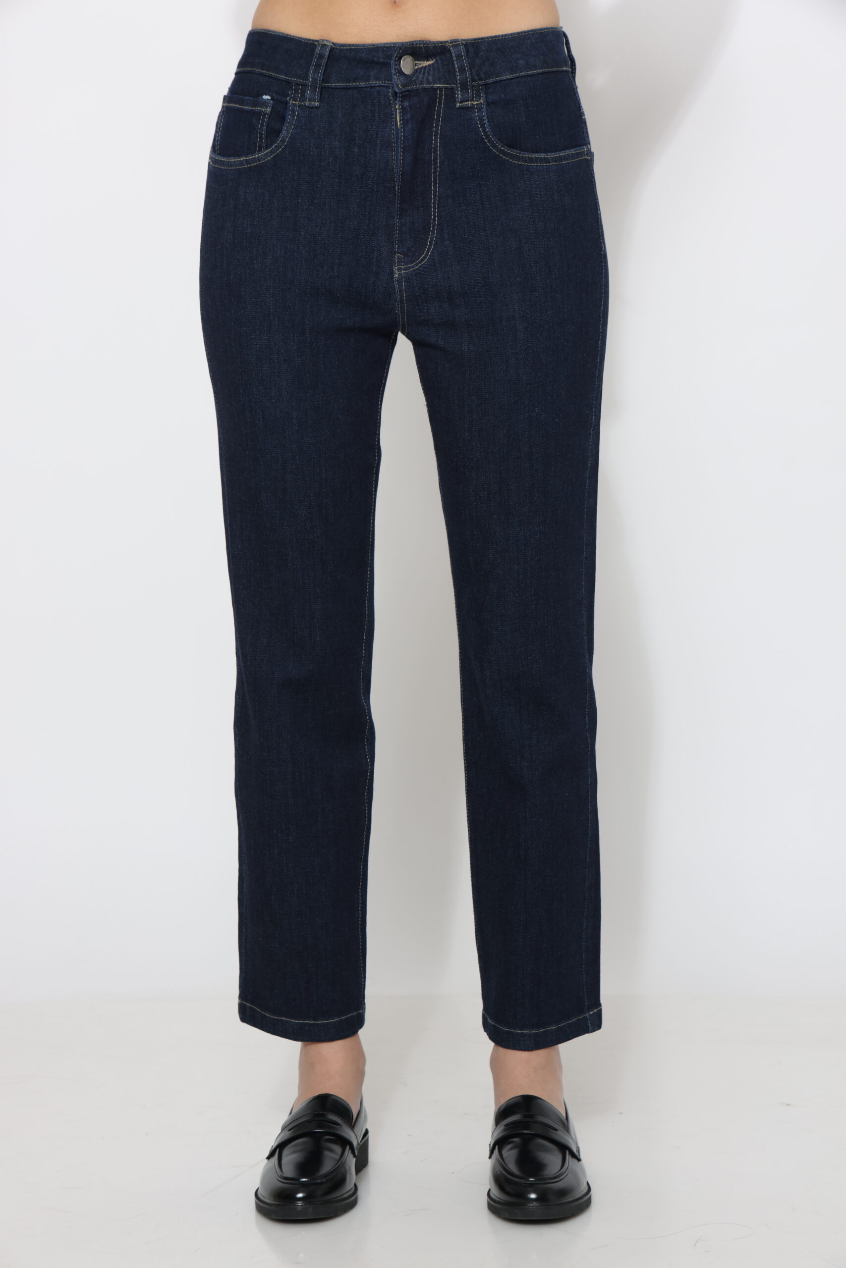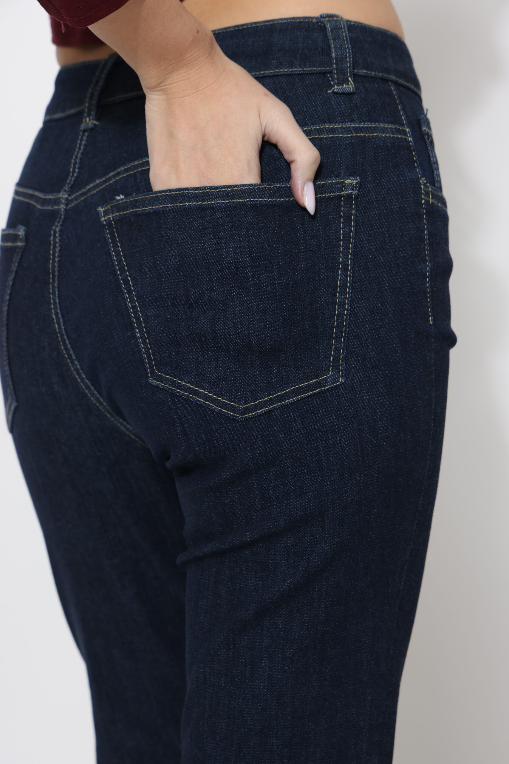גינס כחול שטיפה בגיזרה ישרה עם לייקרה אורך קרסול