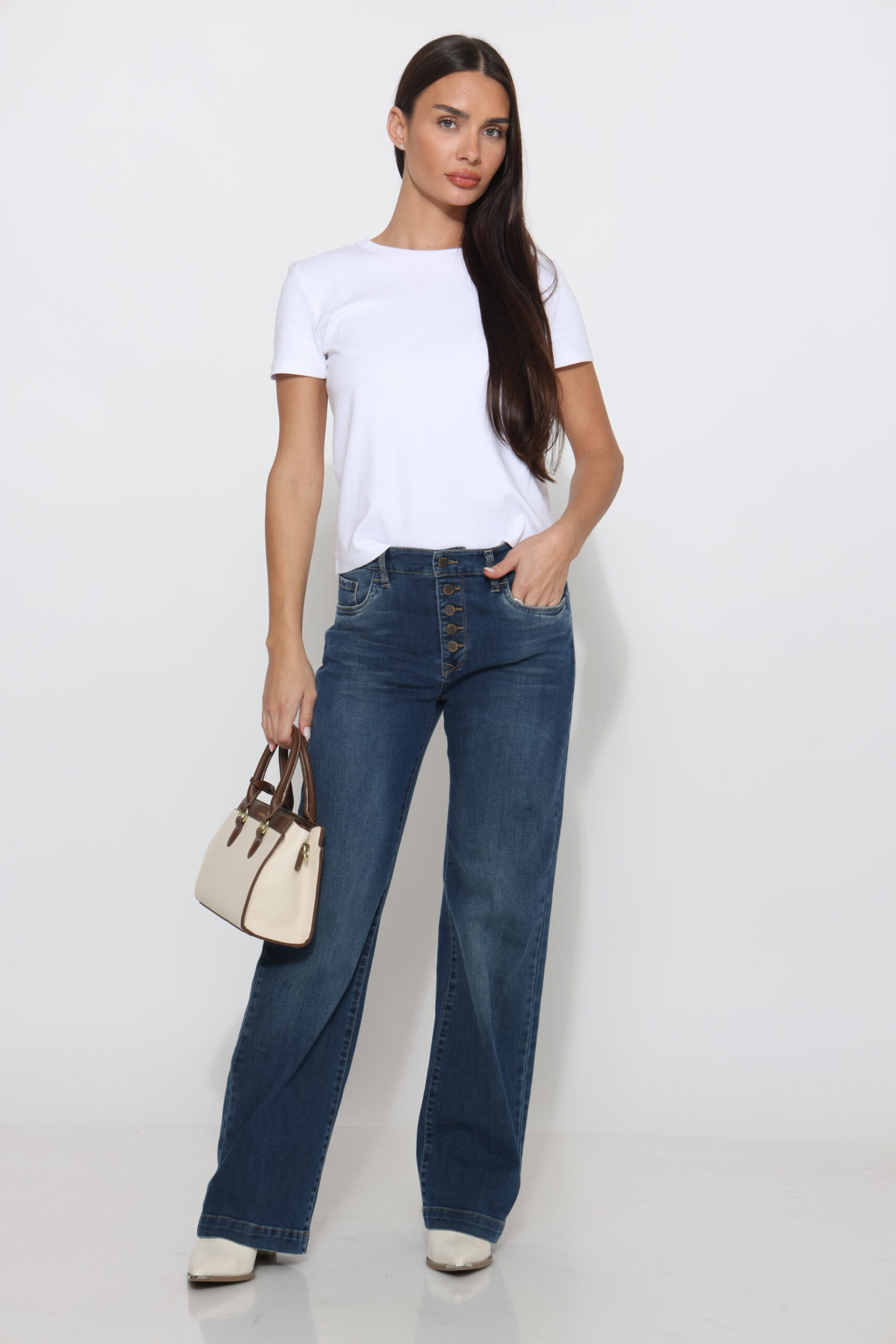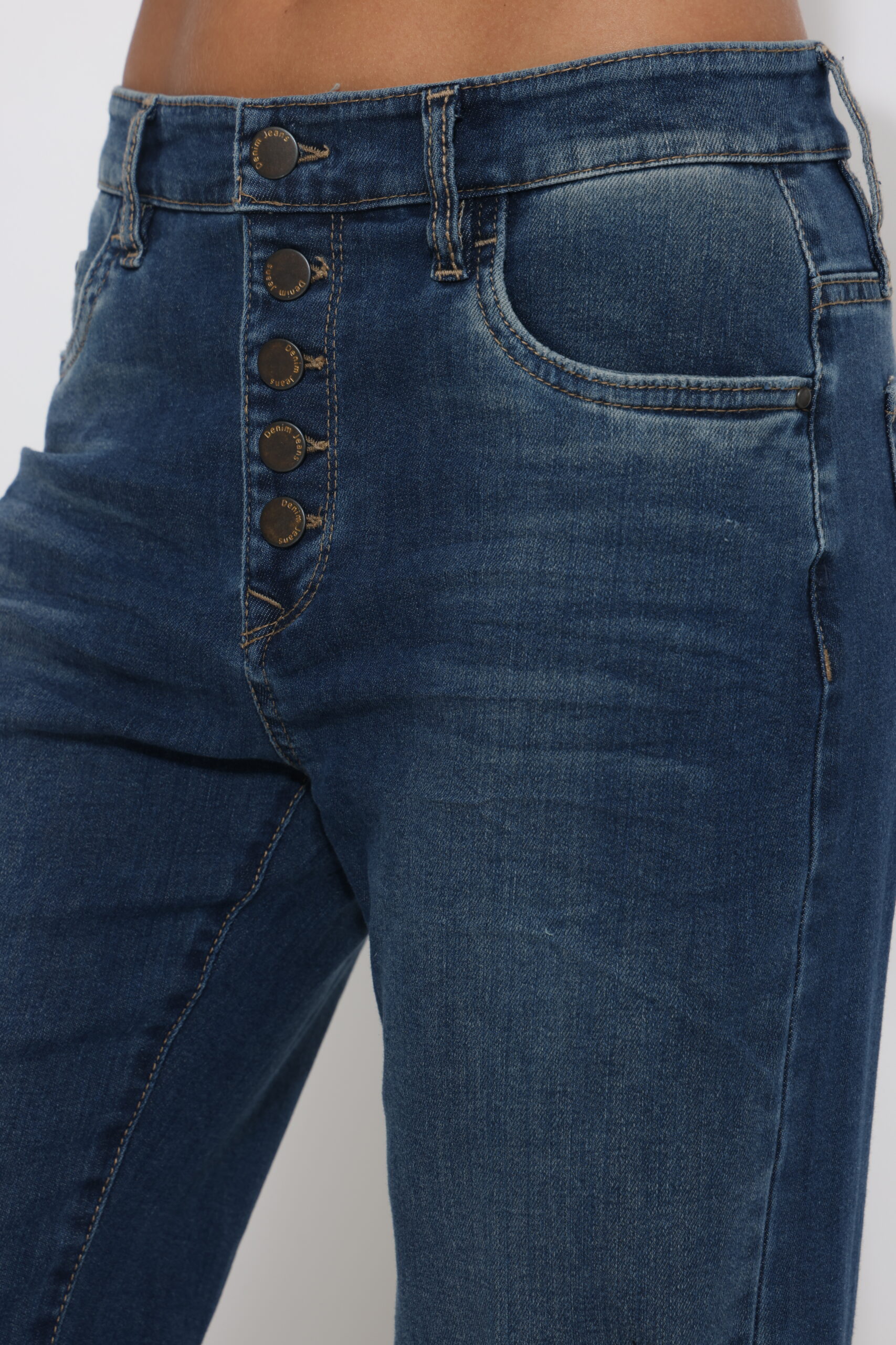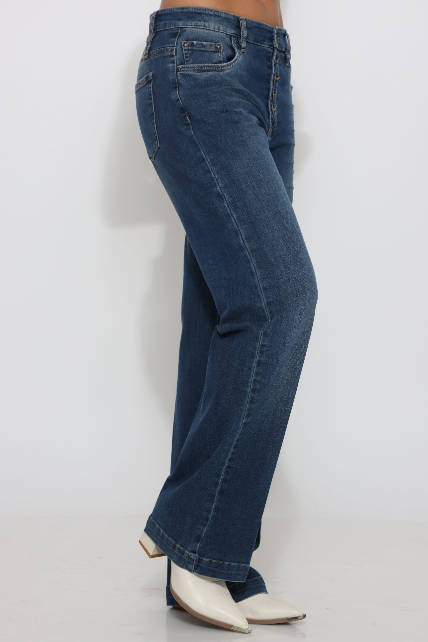 גינס בגיזרה ישרה עם כפתרה חיצונים ולייקרה