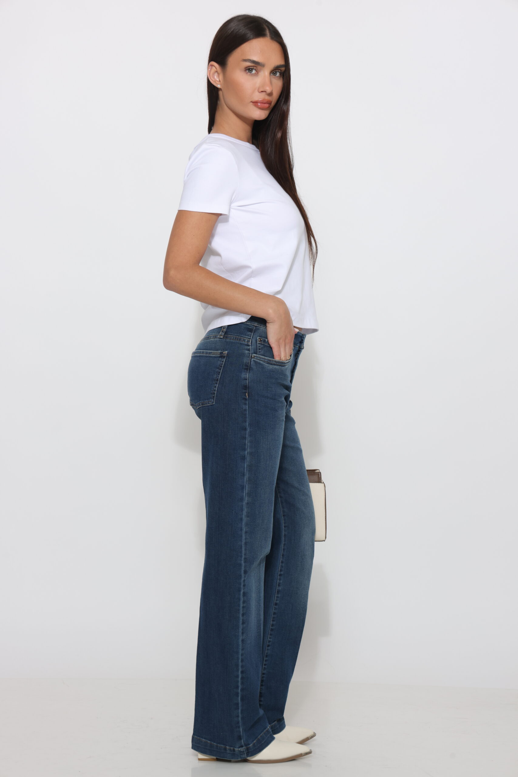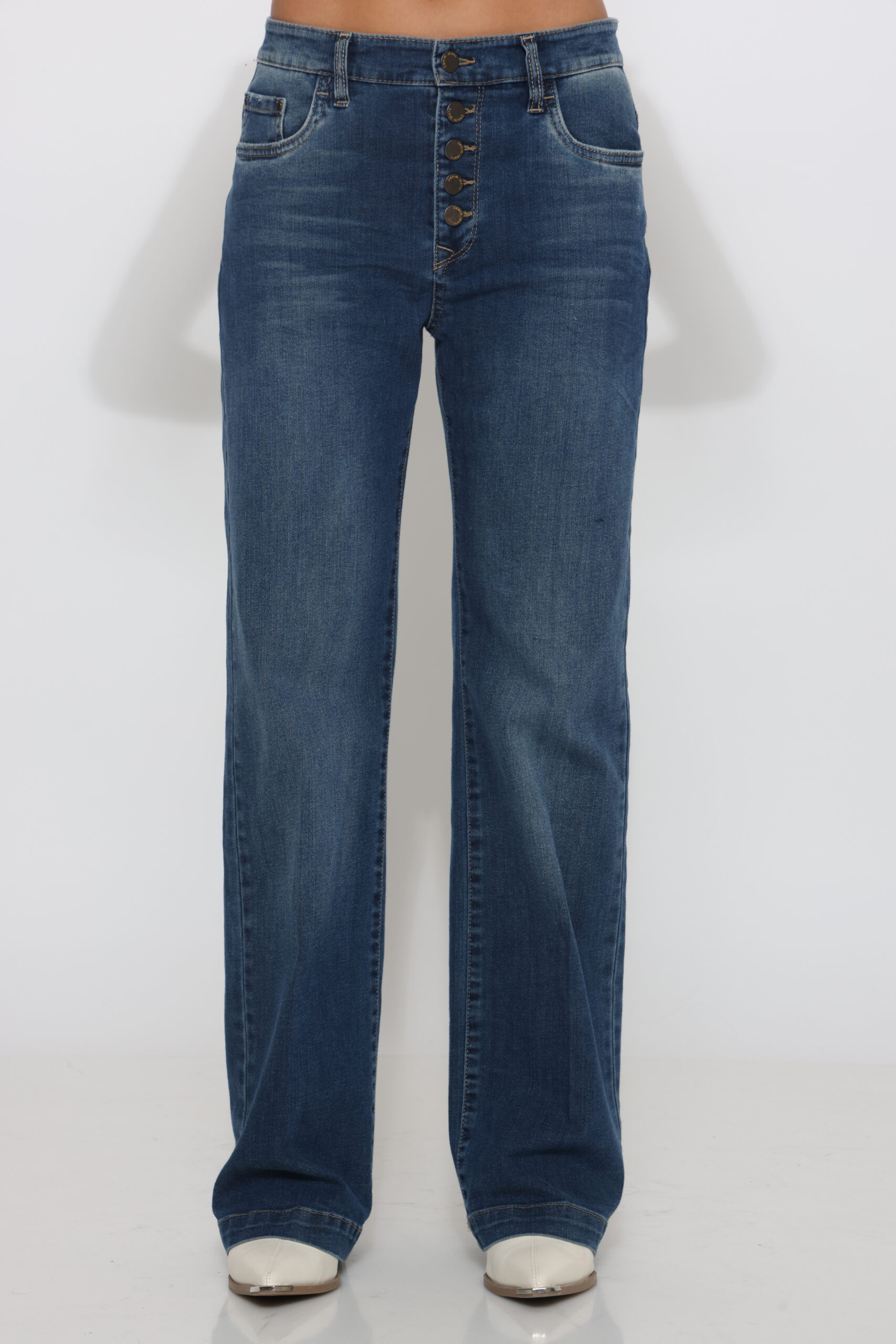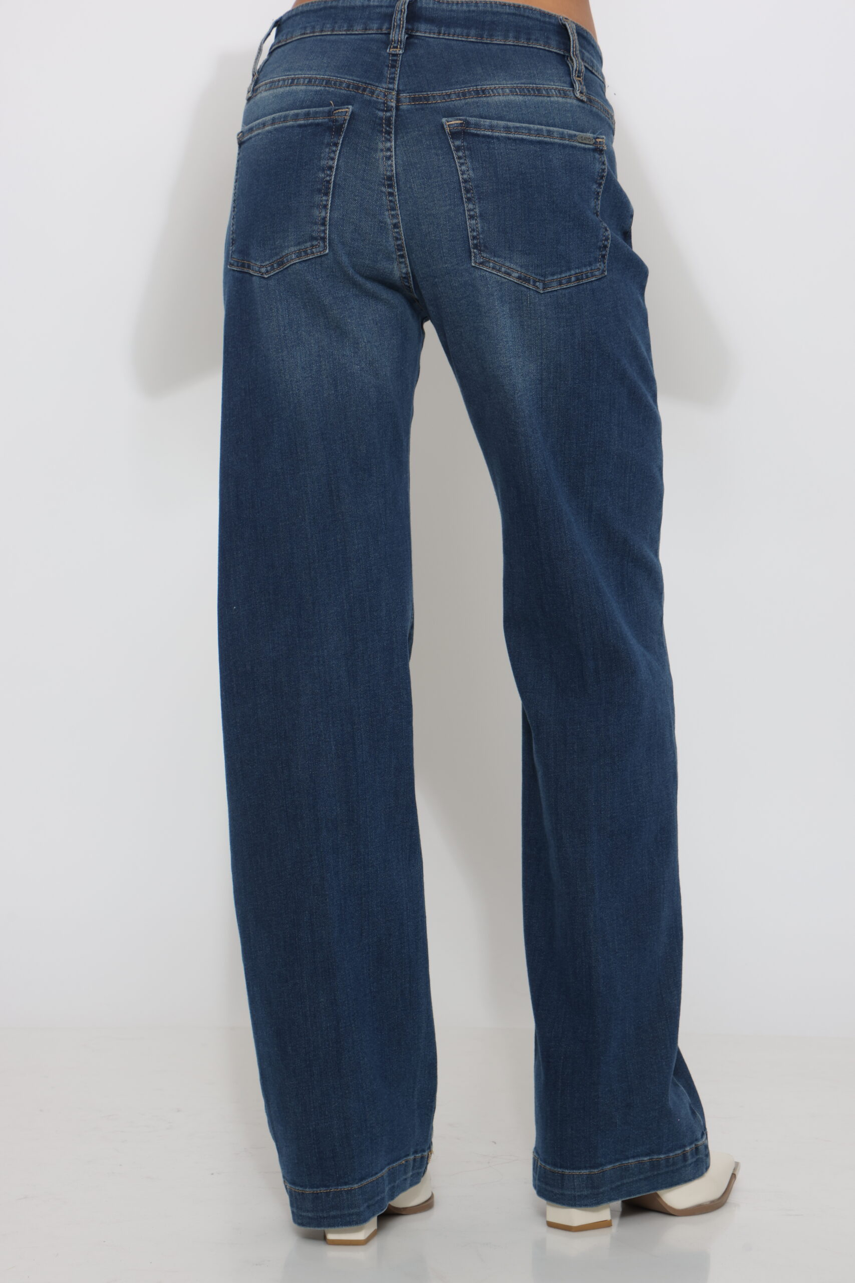 גינס בגיזרה ישרה עם כפתרה חיצונים ולייקרה