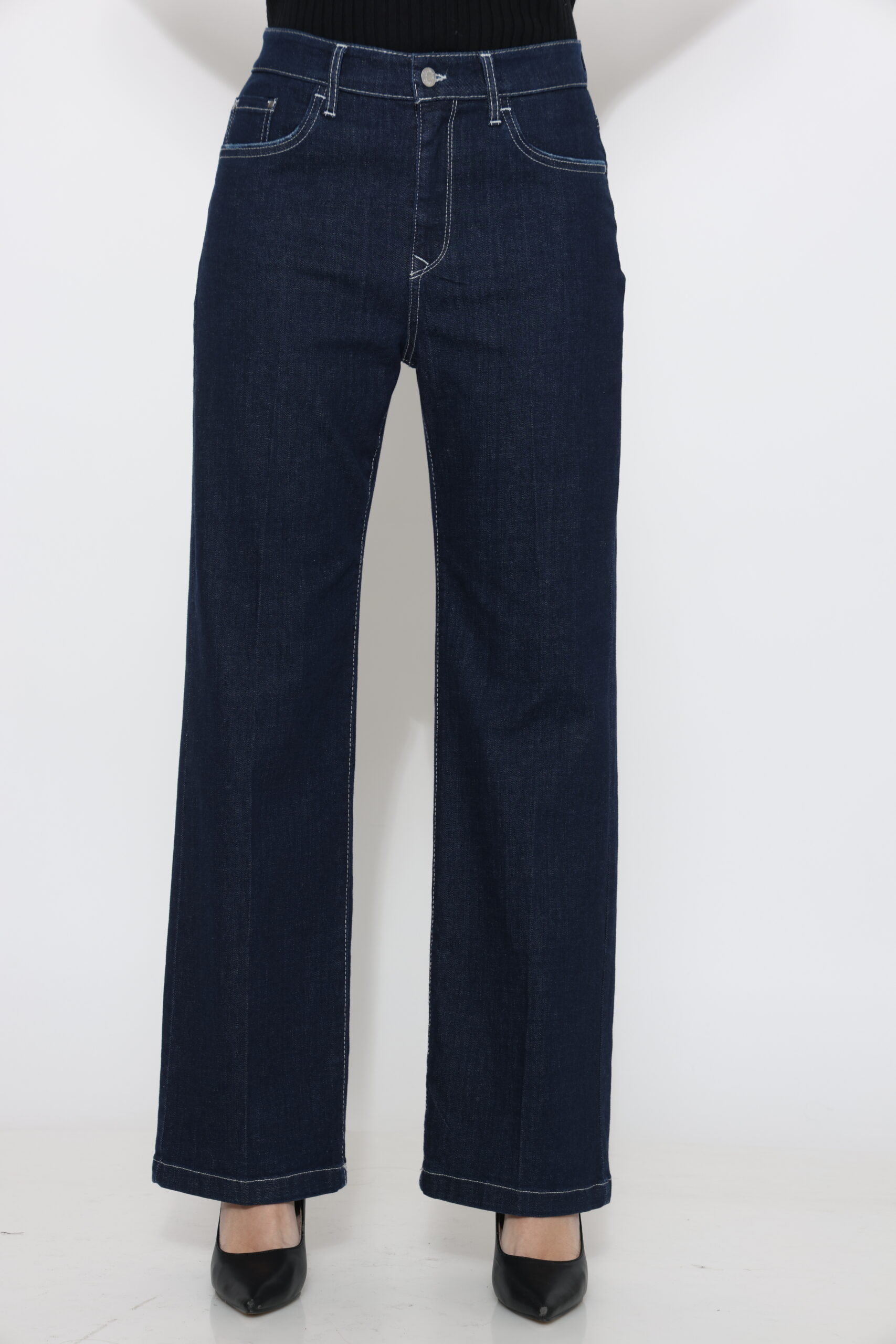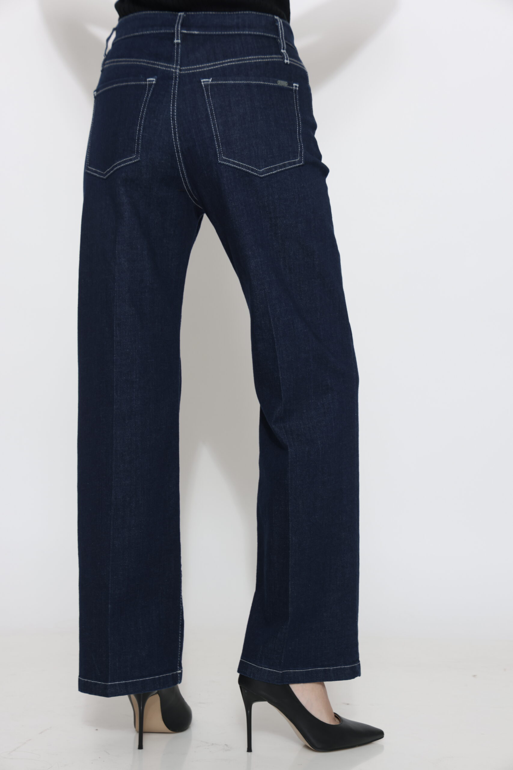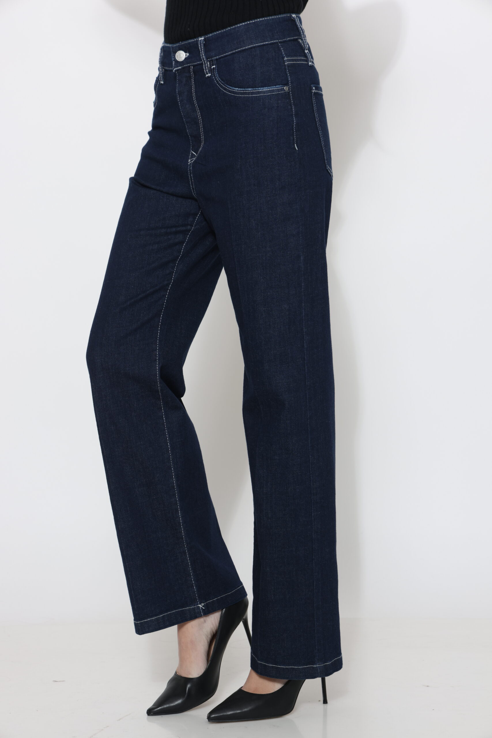 גינס בגיזרה ישרה בגוון כהה עם תיפור בצבע אבן