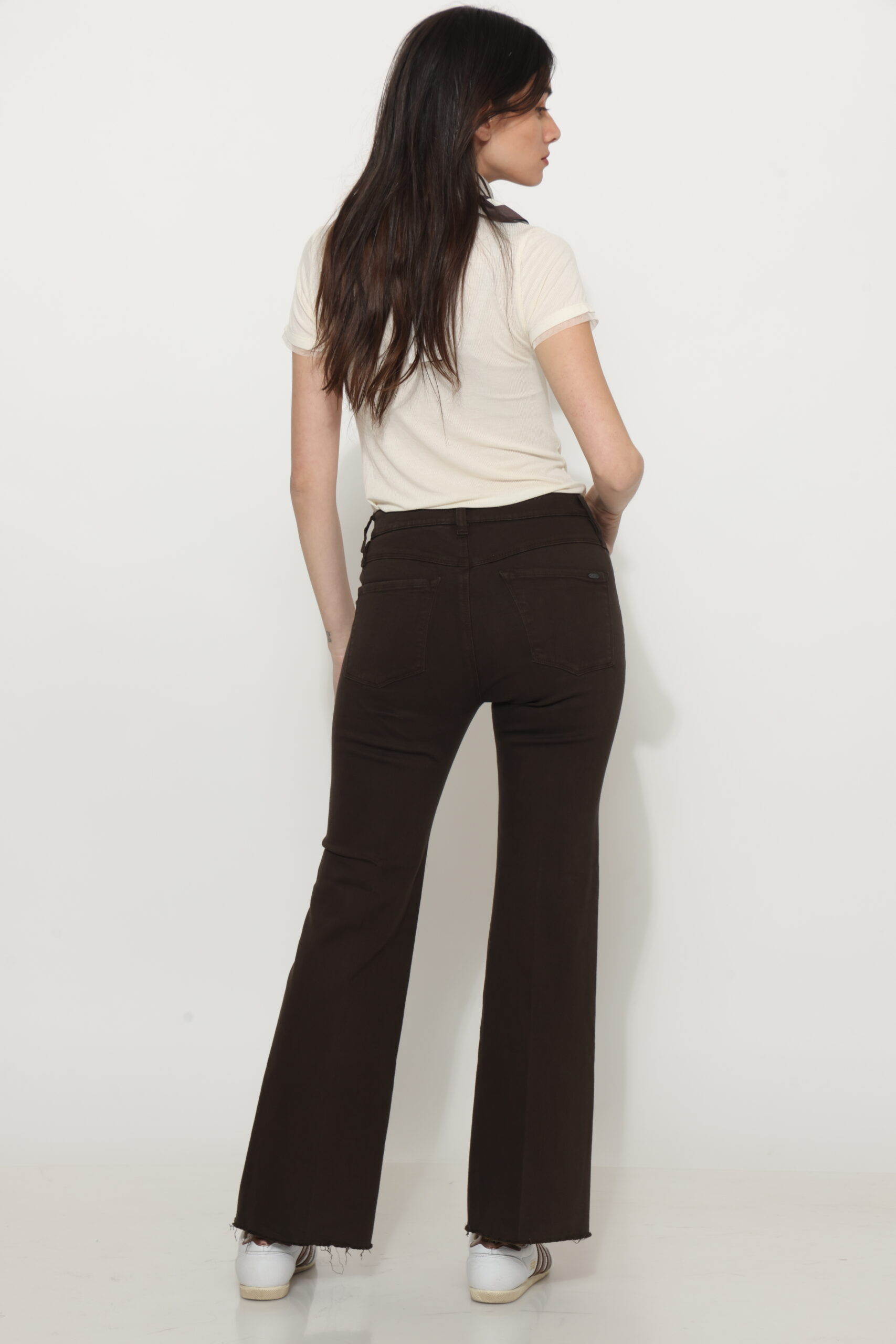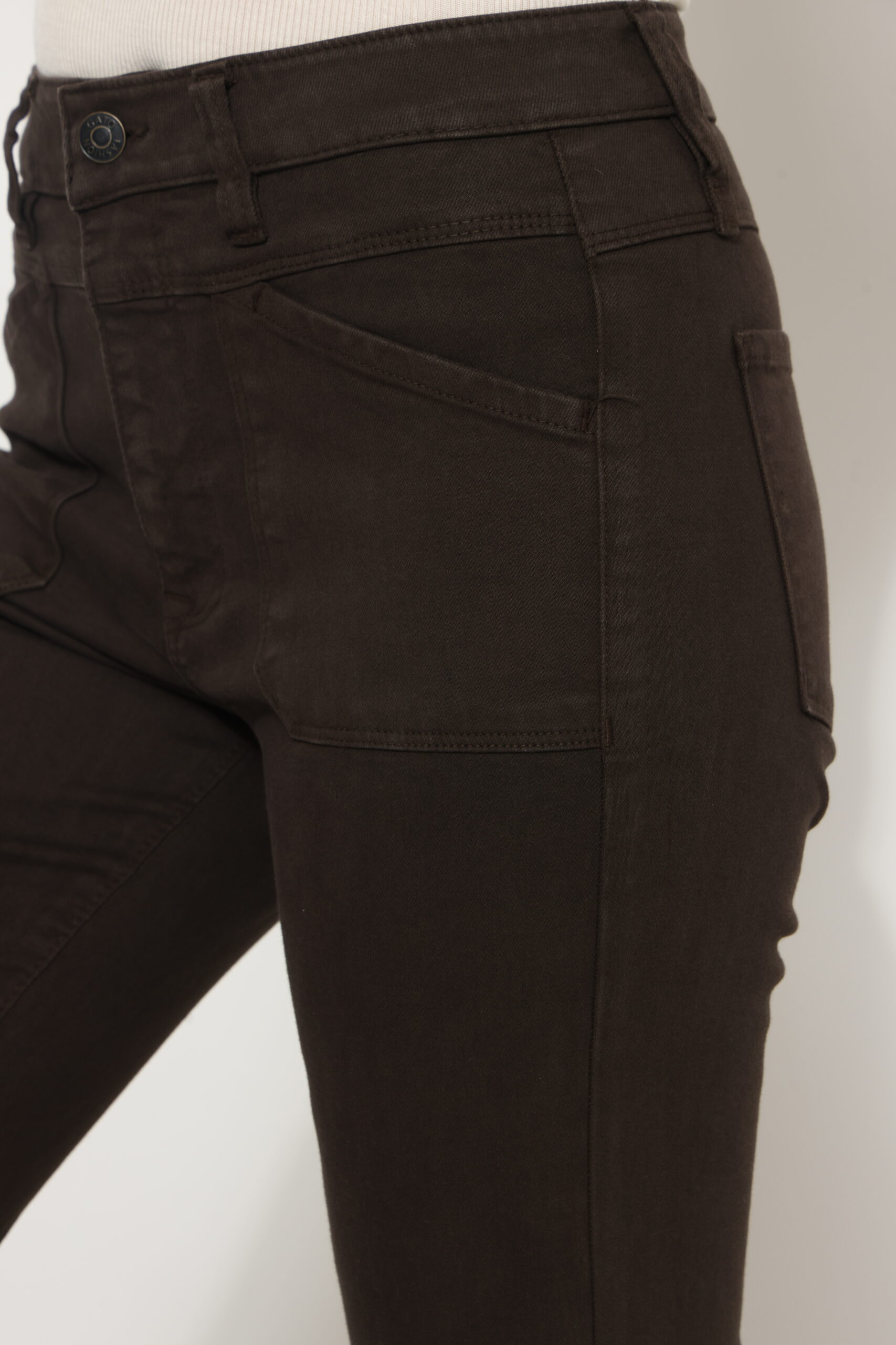 מכנס כותנה בגיזרת פלייר גזורה עם כיסים אלכסוניים עם לייקרה