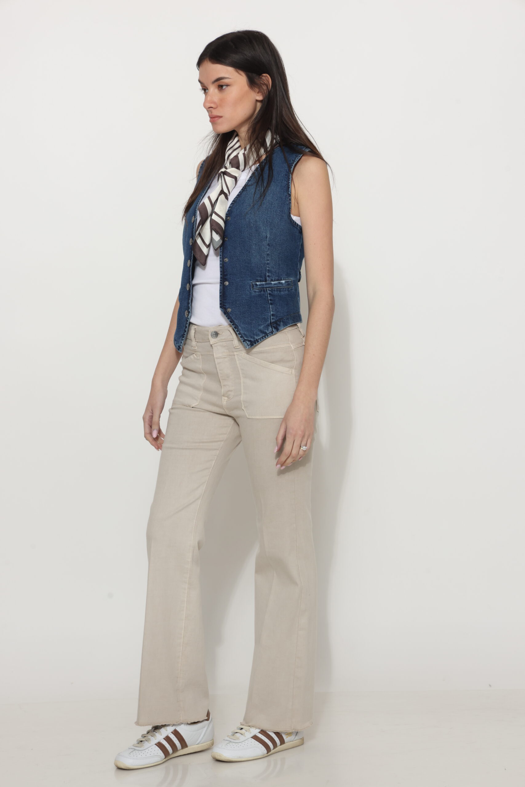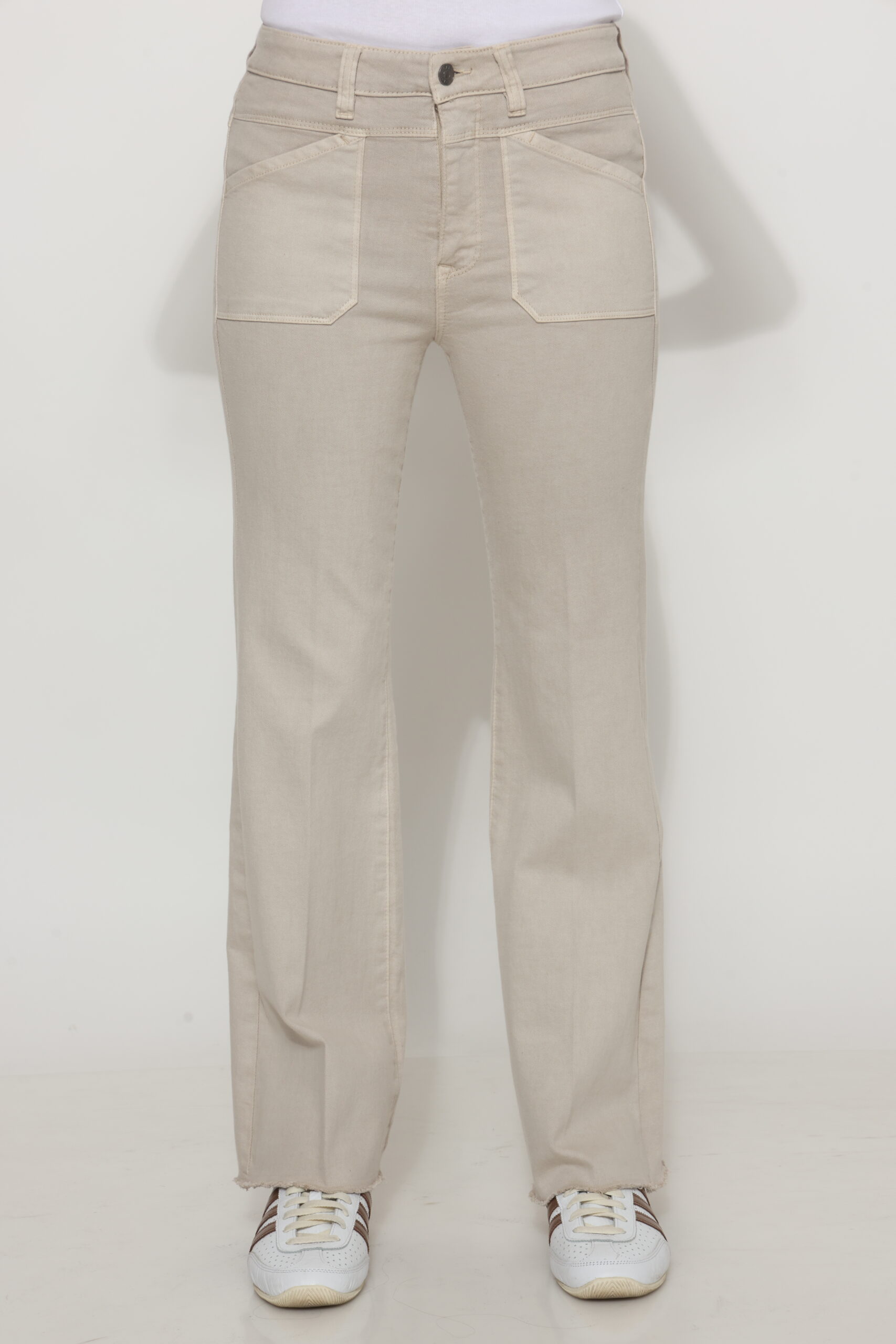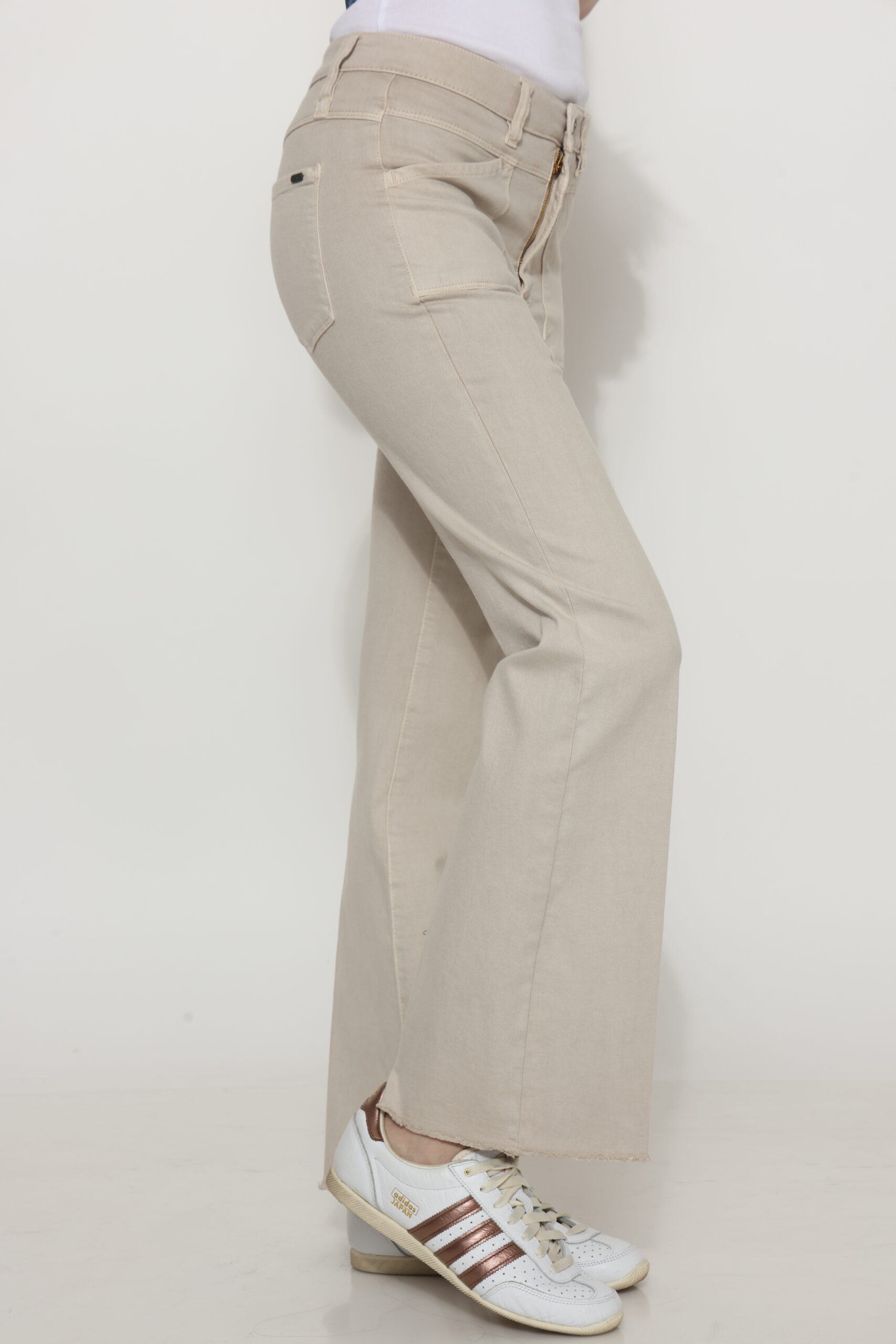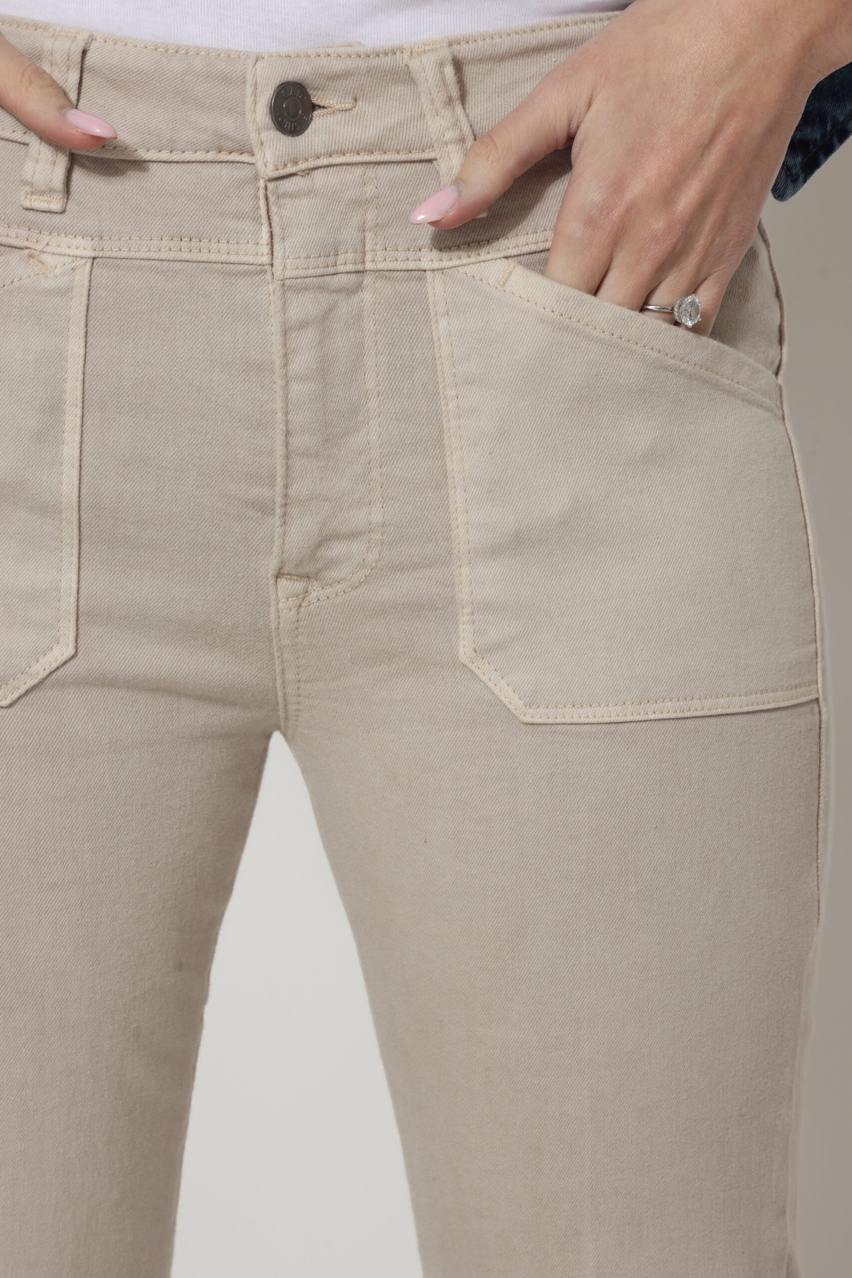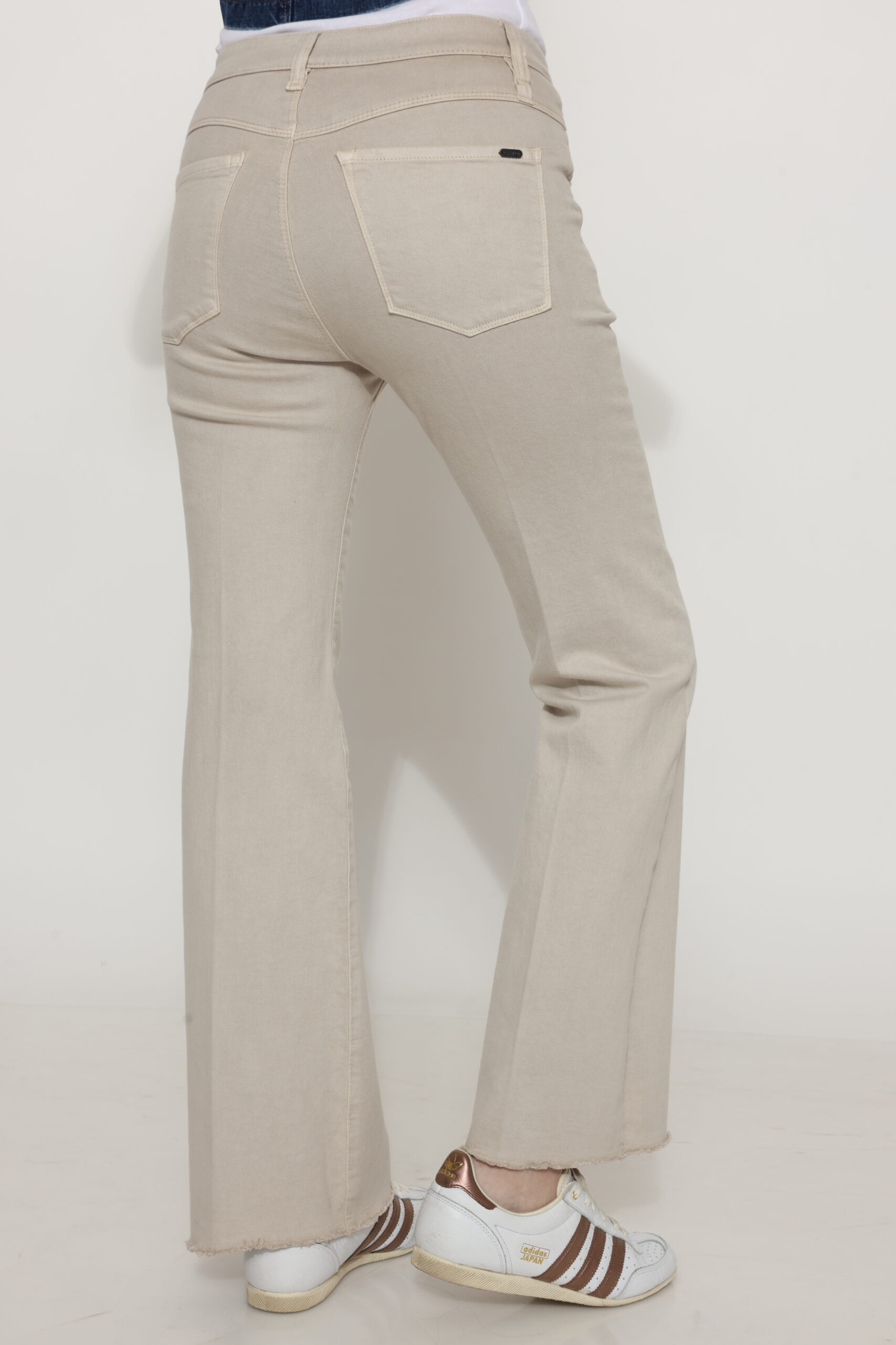 מכנס כותנה בגיזרת פלייר גזורה עם כיסים אלכסוניים עם לייקרה
