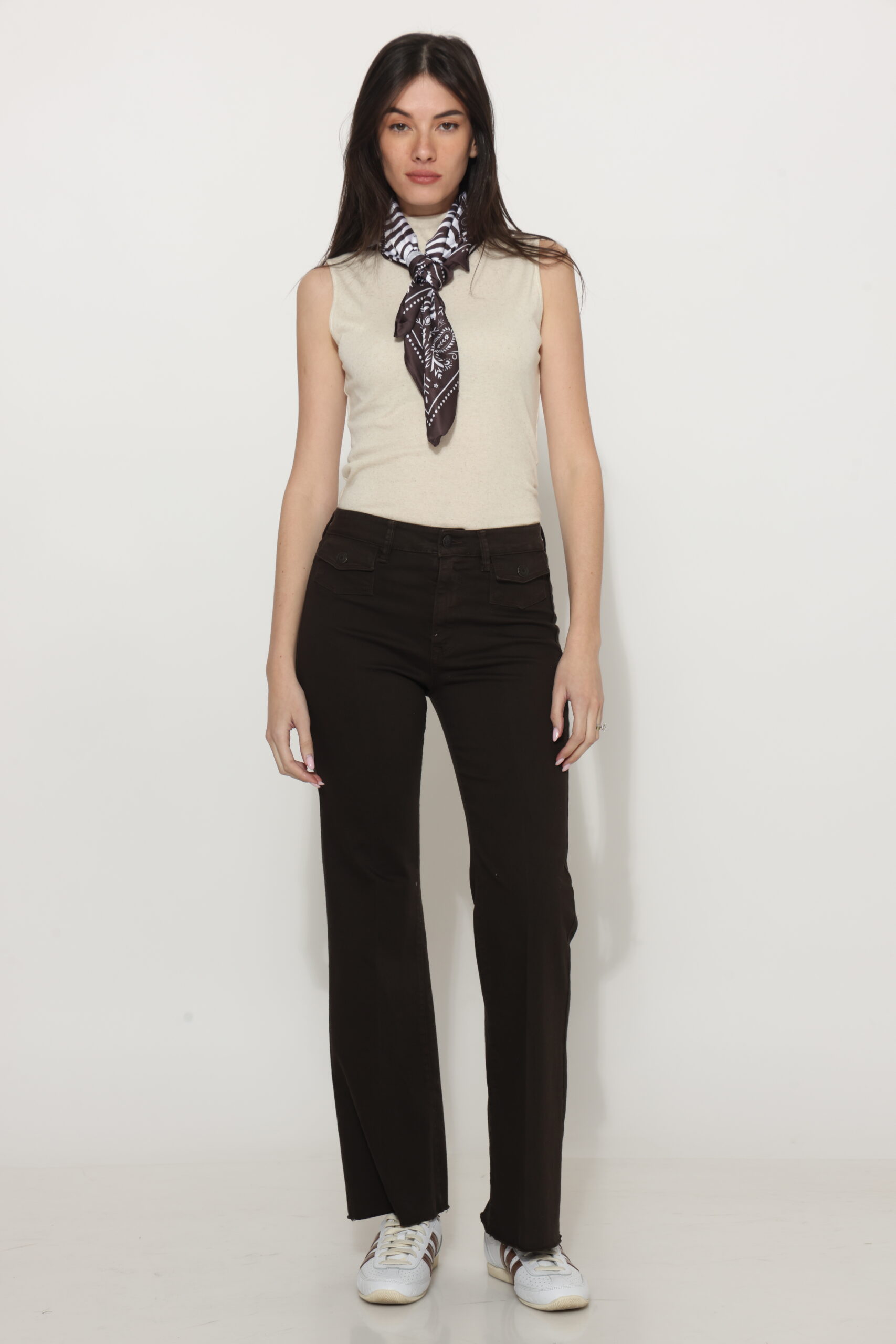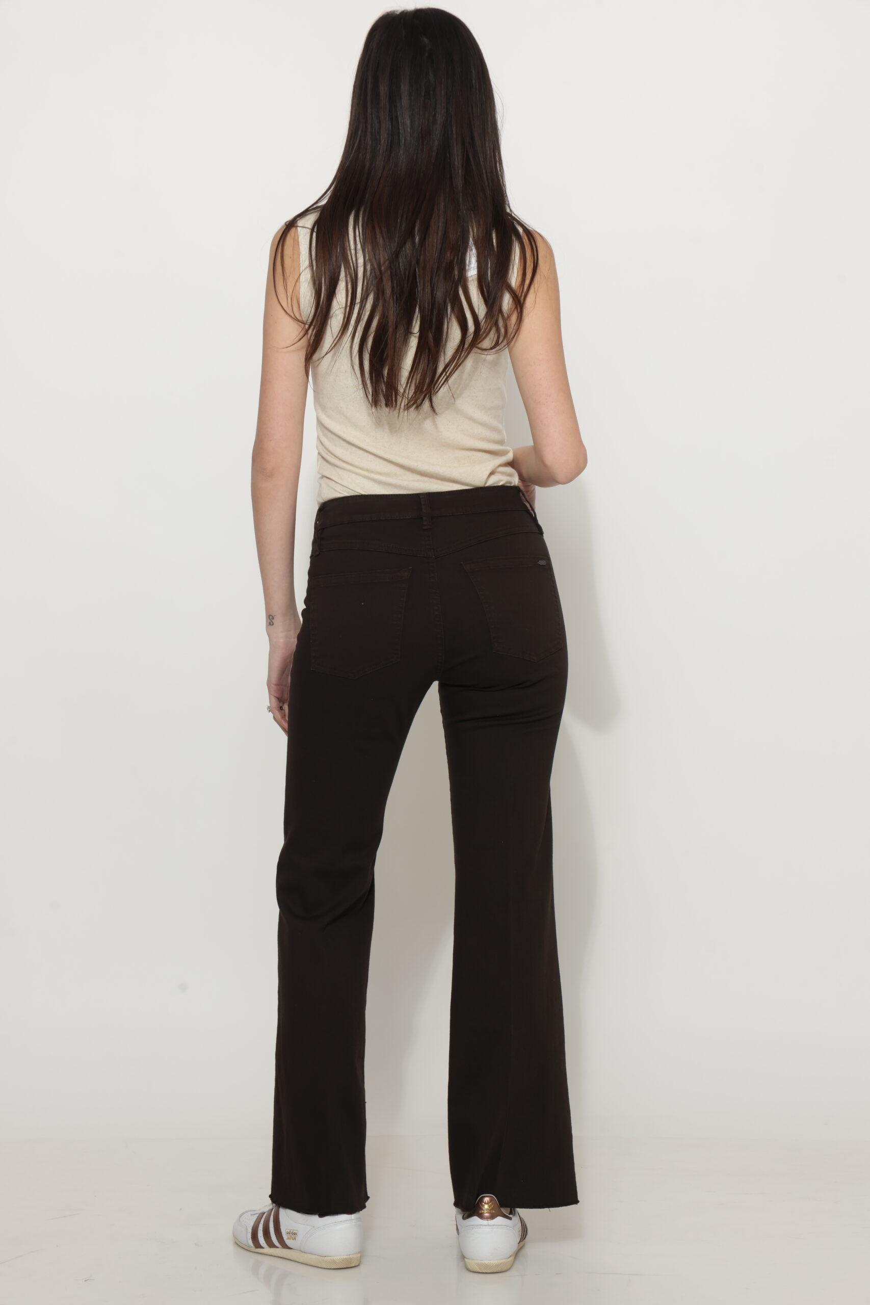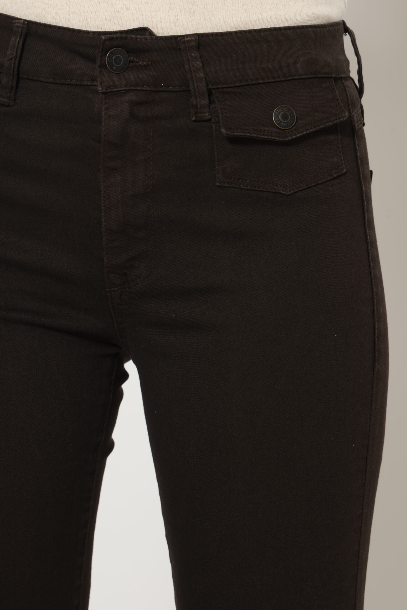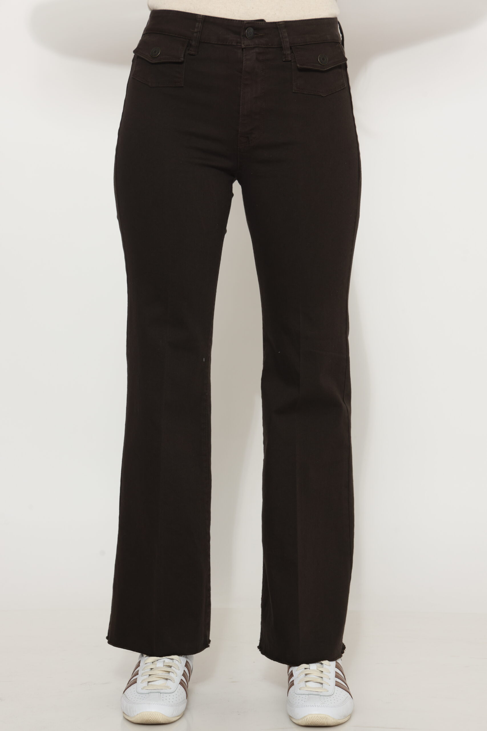מכנסי כותנה בגזרת פלייר עם לייקרה וכיסים קטנים קדמיים