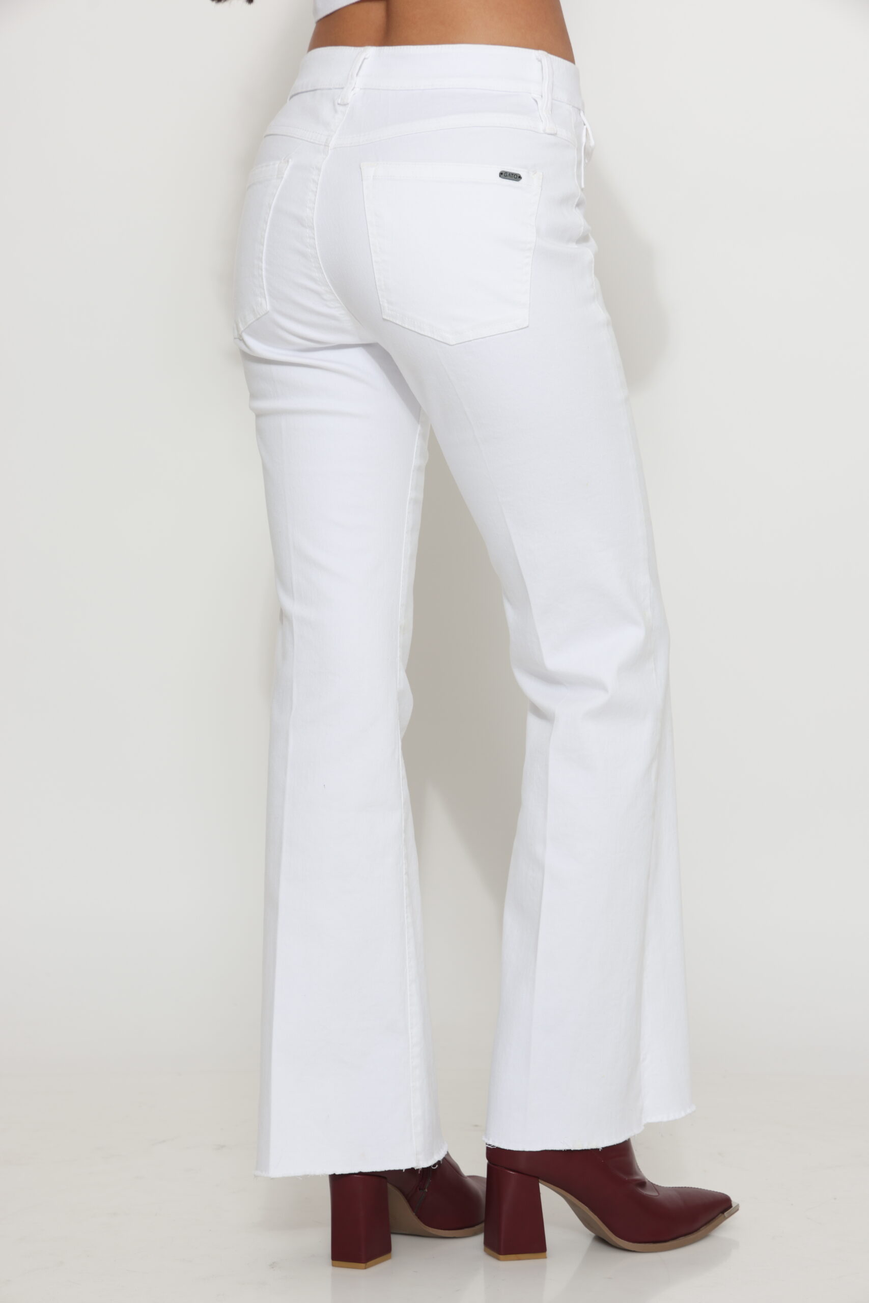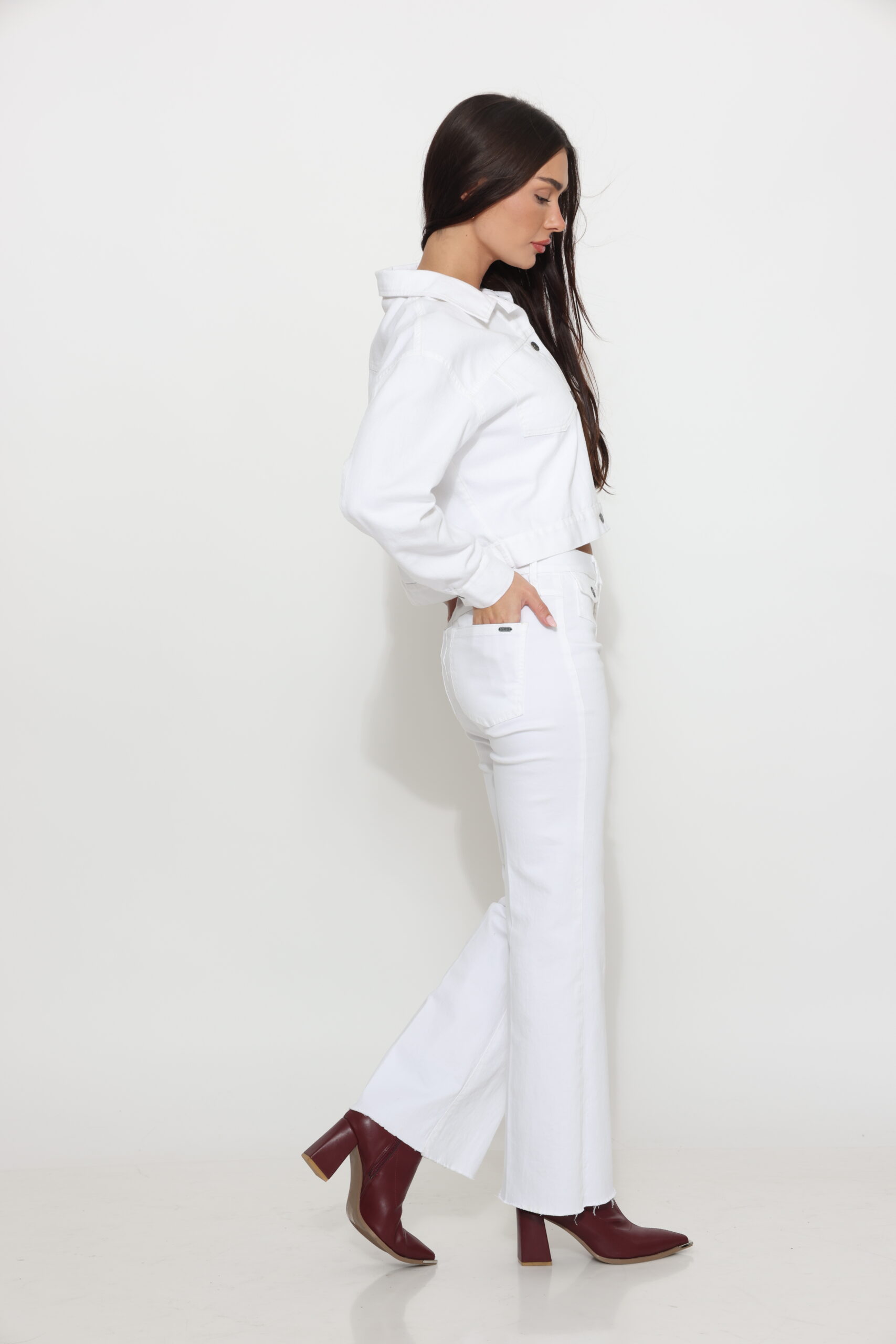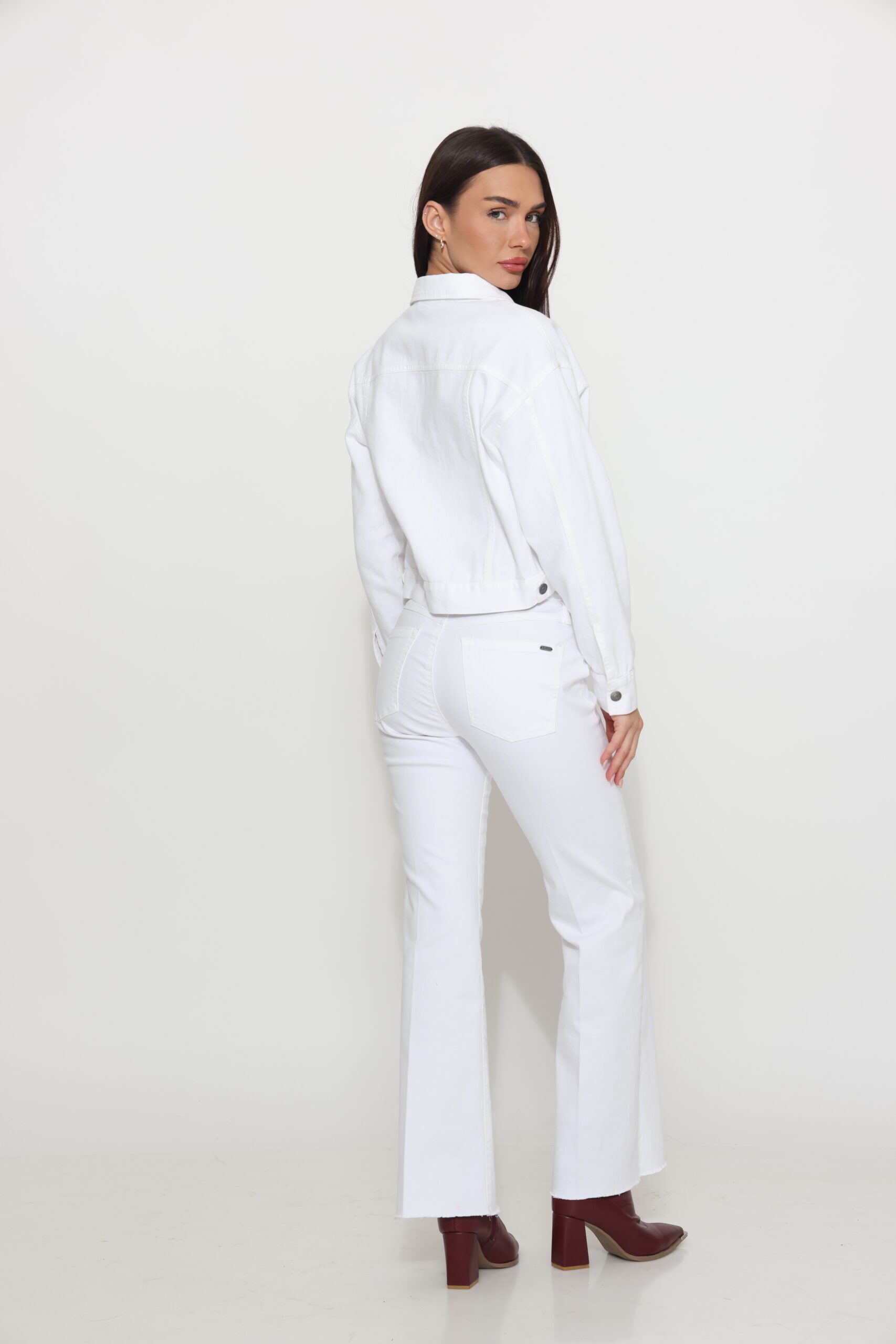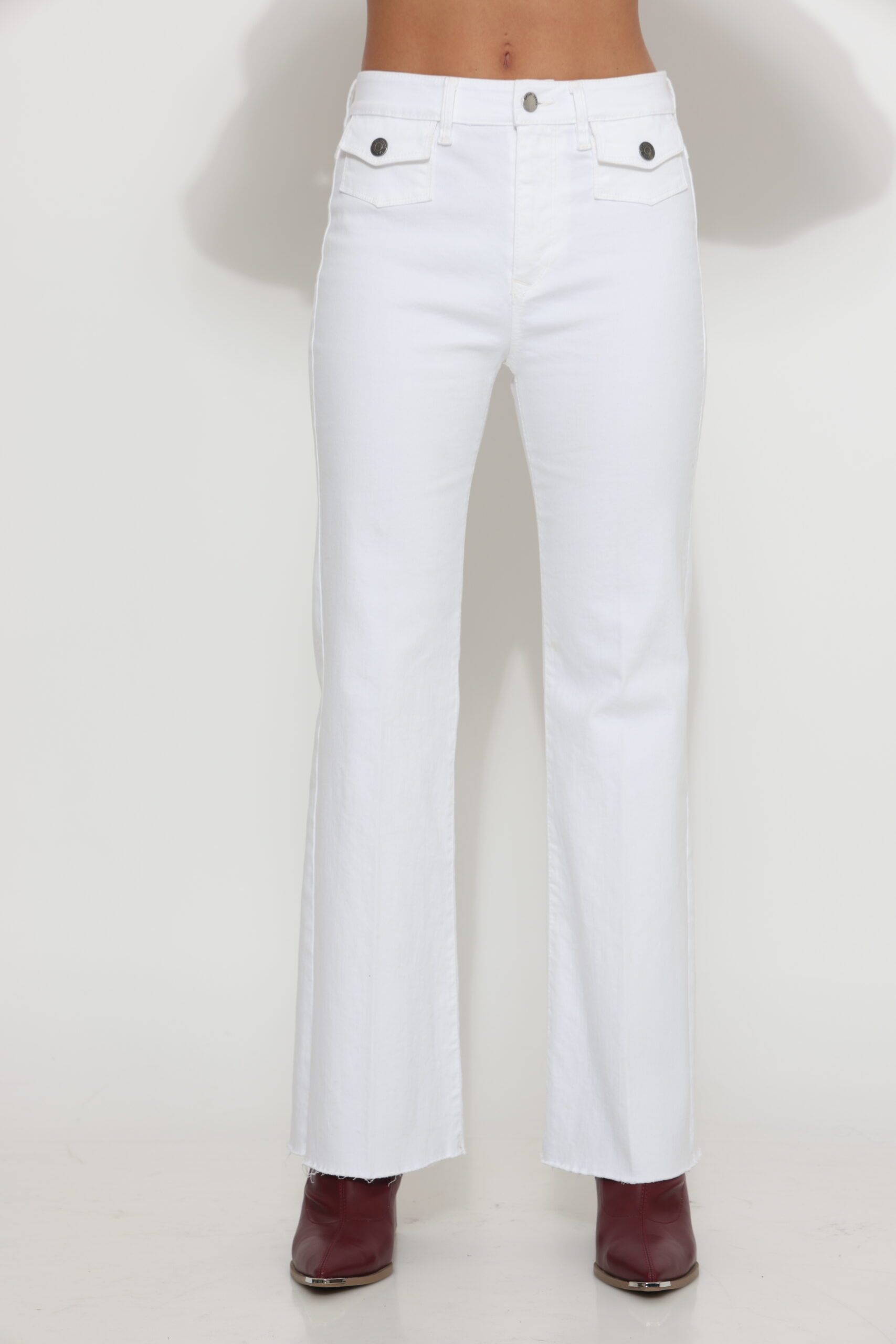 מכנסי כותנה בגזרת פלייר עם לייקרה וכיסים קטנים קדמיים