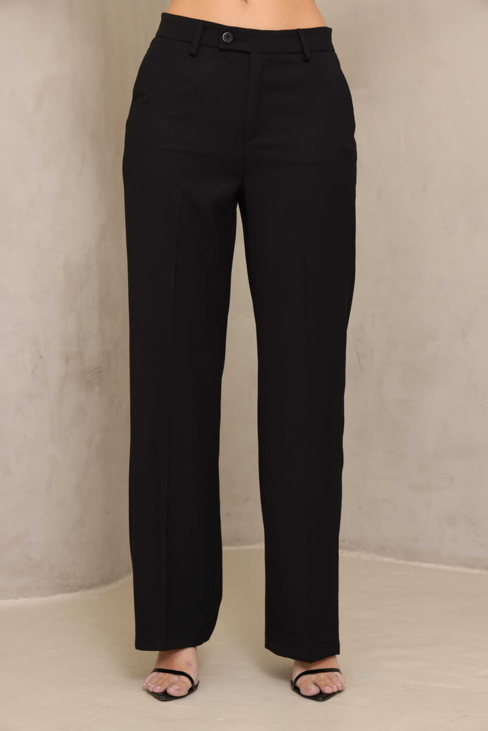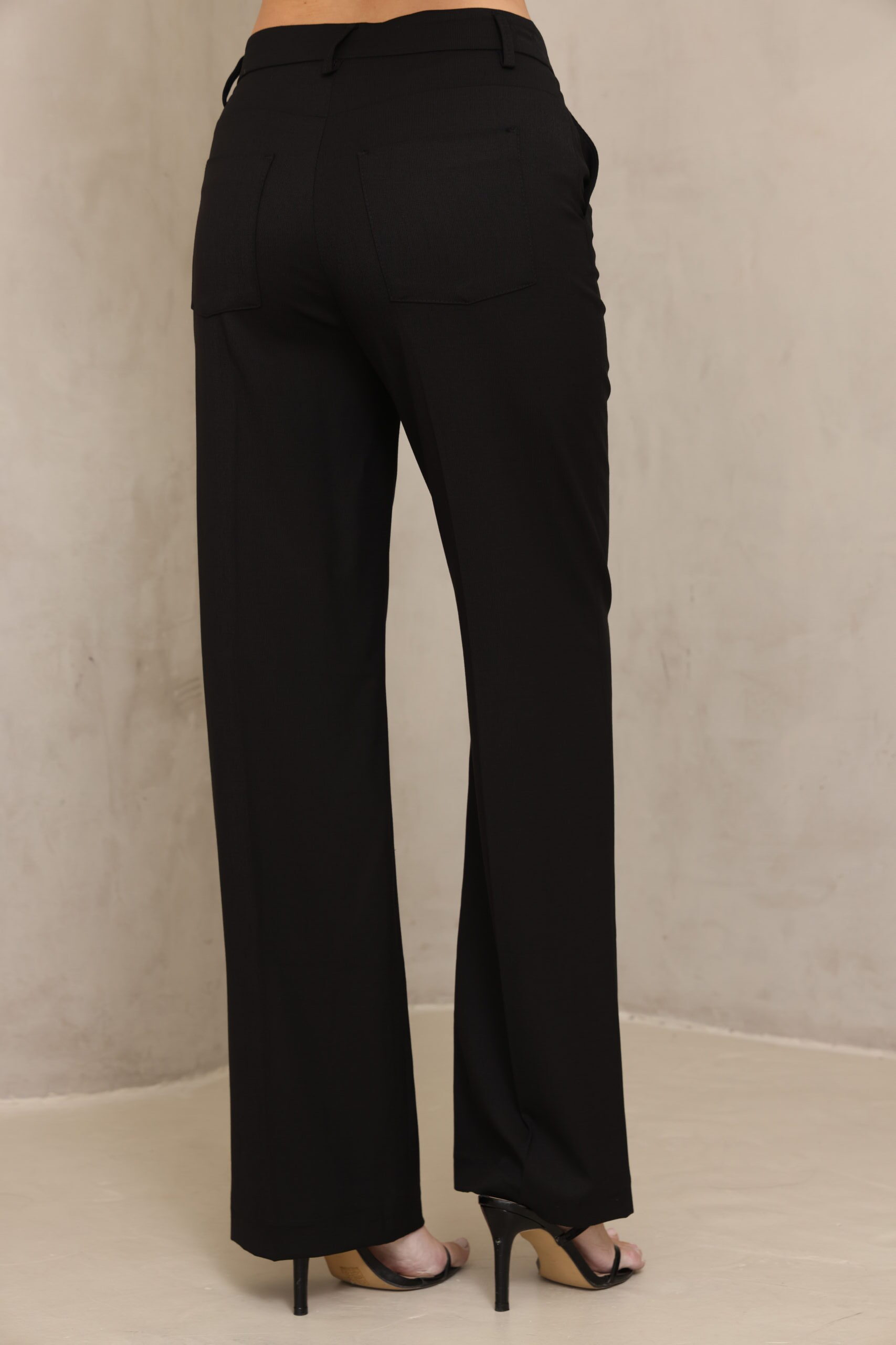 מכנס אלגנט בגיזרה ישרה מבד דק עם לייקרה סגירה כפתור לצד