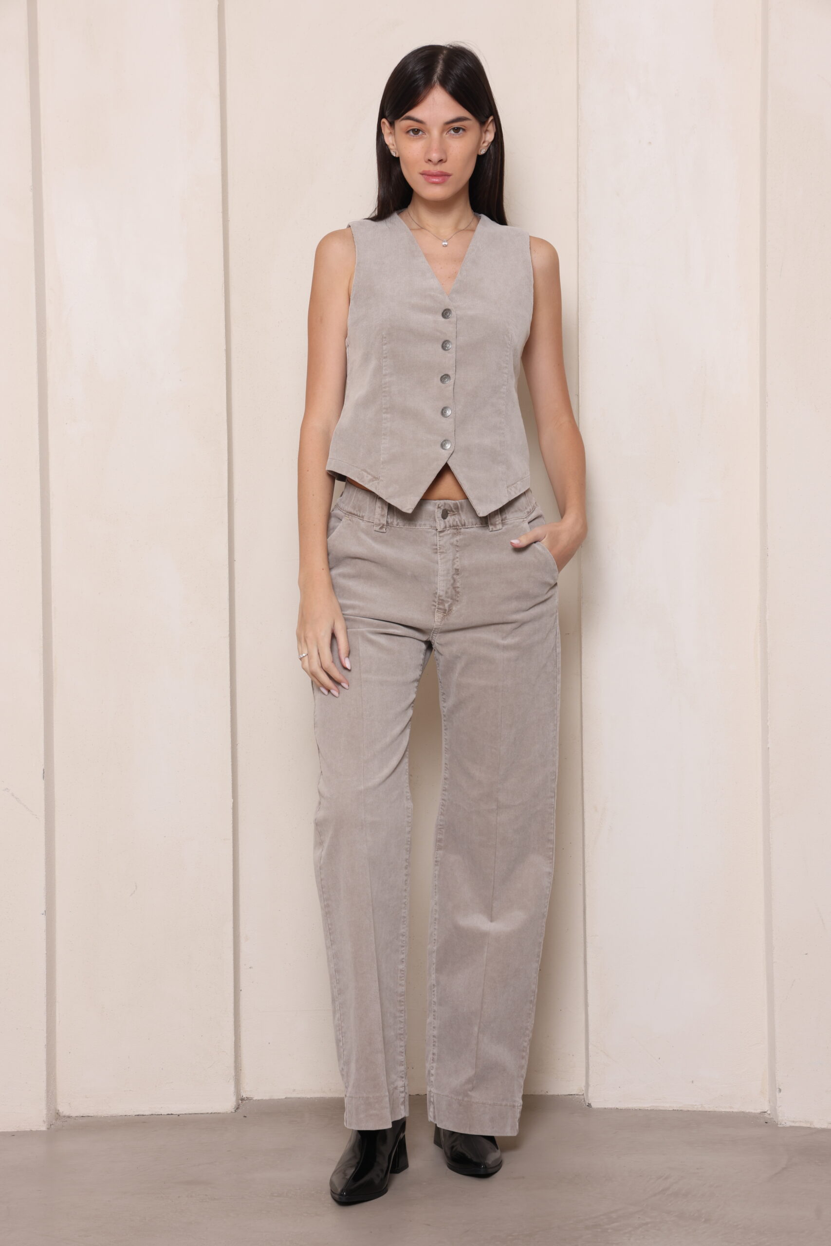 ווסט קורדרוי עם לייקרה וסגירת תיק תקים וכיווץ מחטב בגב