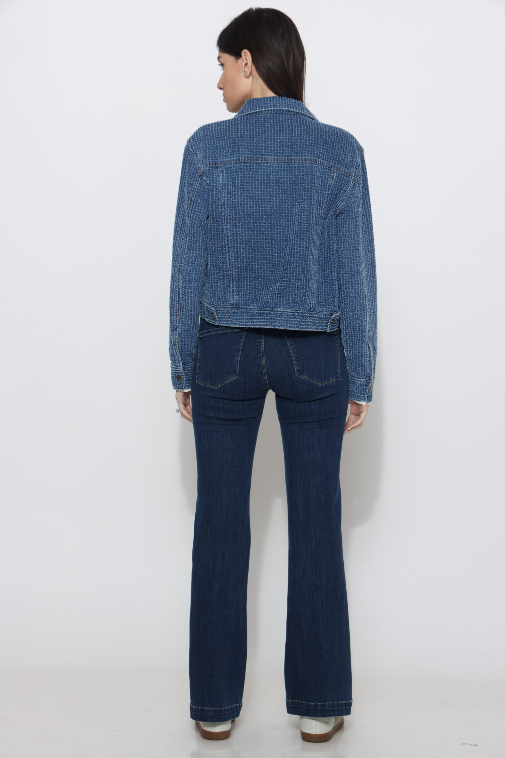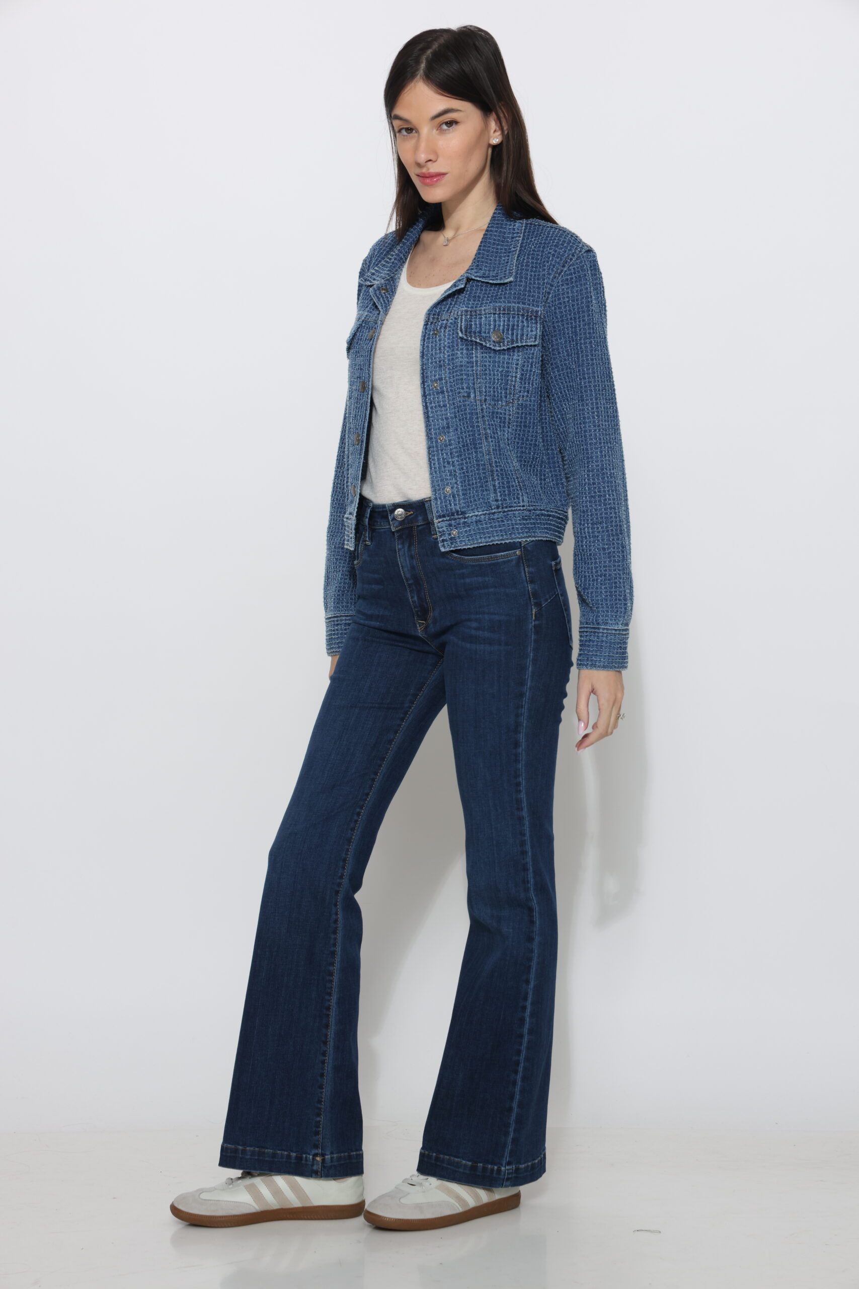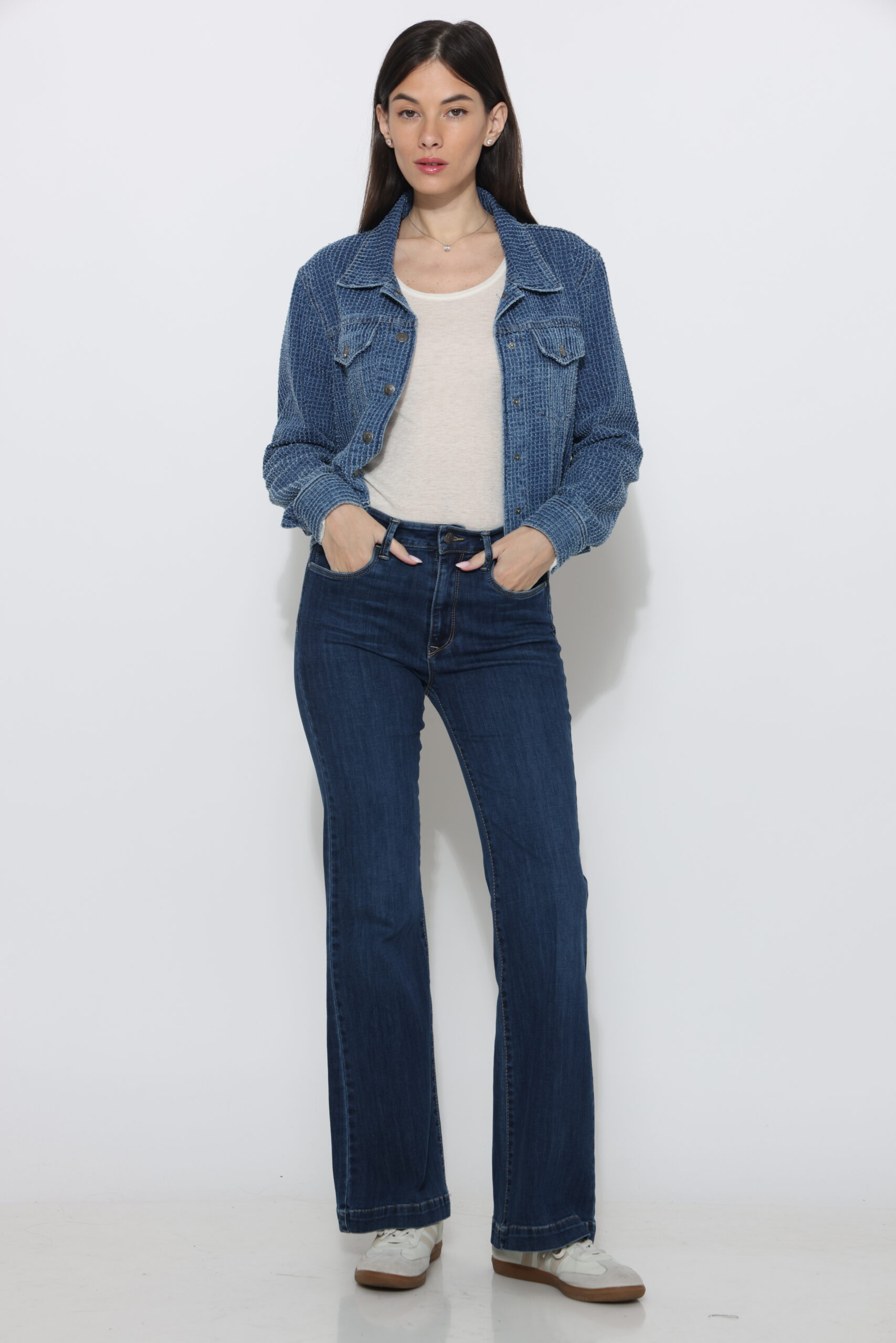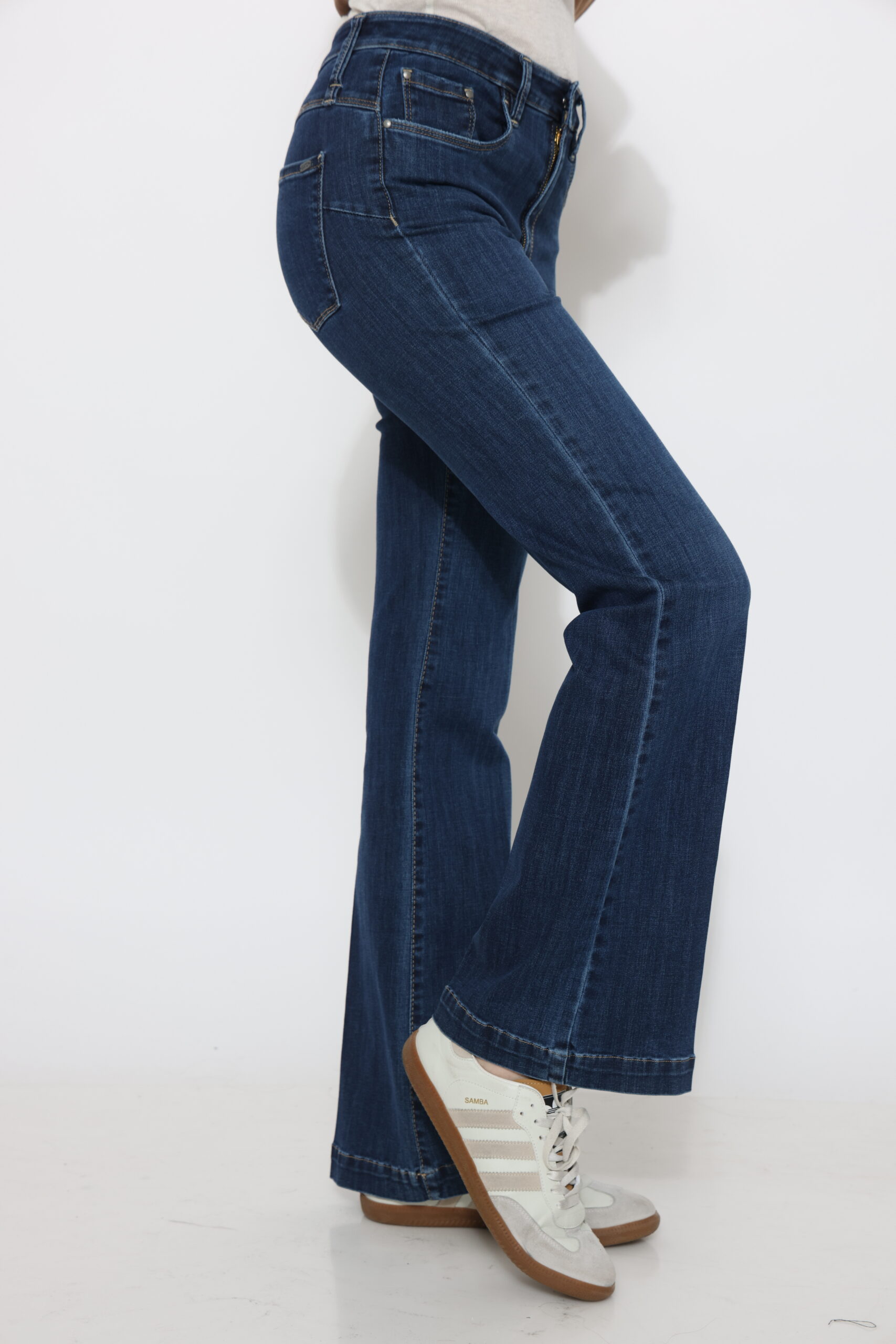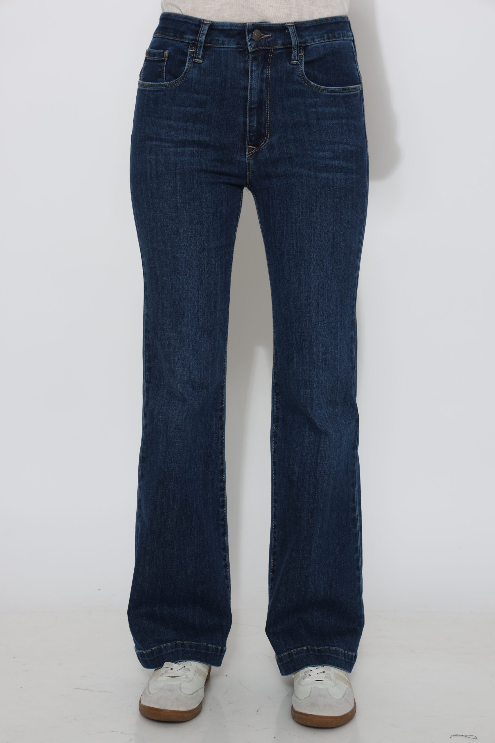 גינס בגזרת פלייר ארוכה עם לייקרה מחטבת בגוון כהה