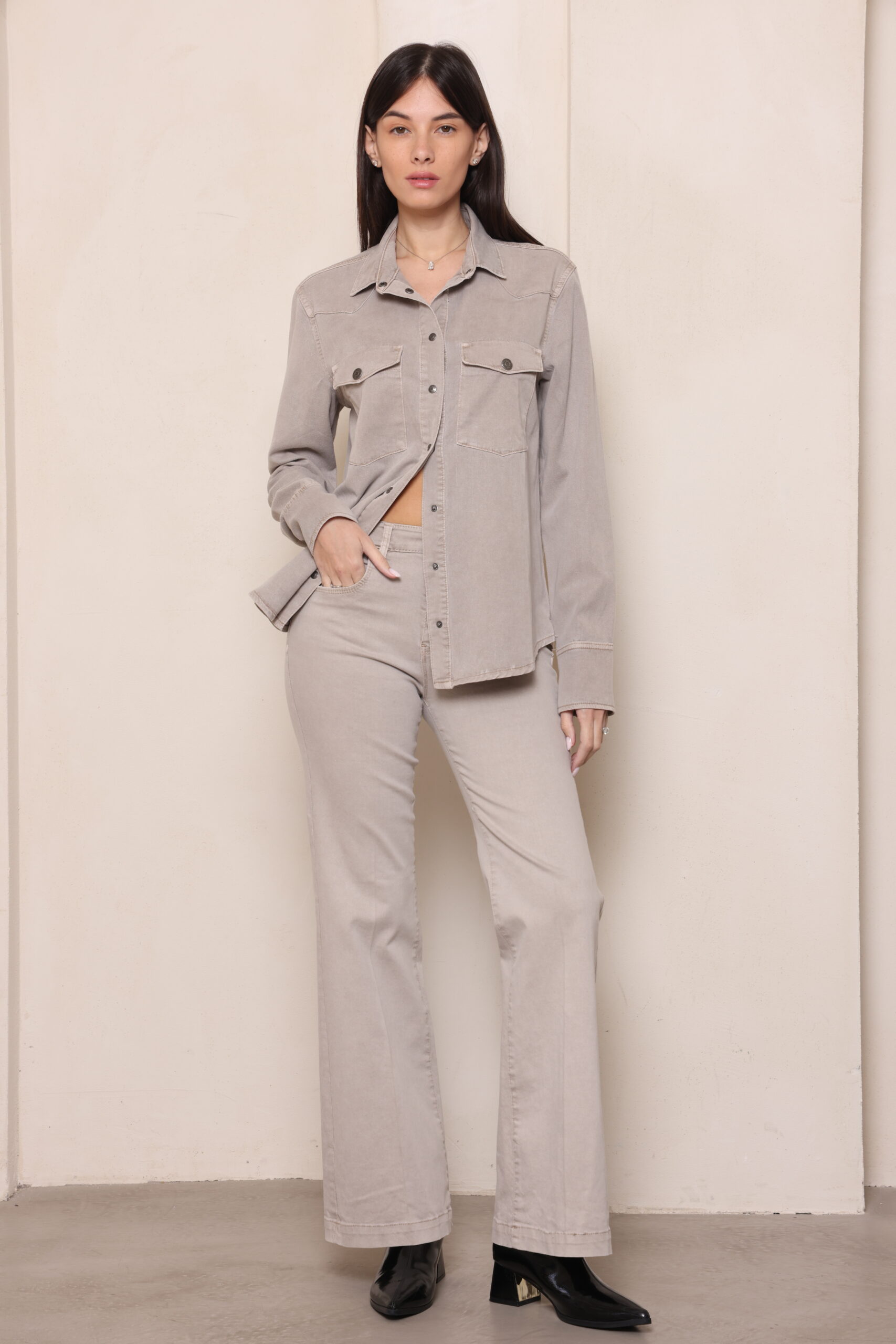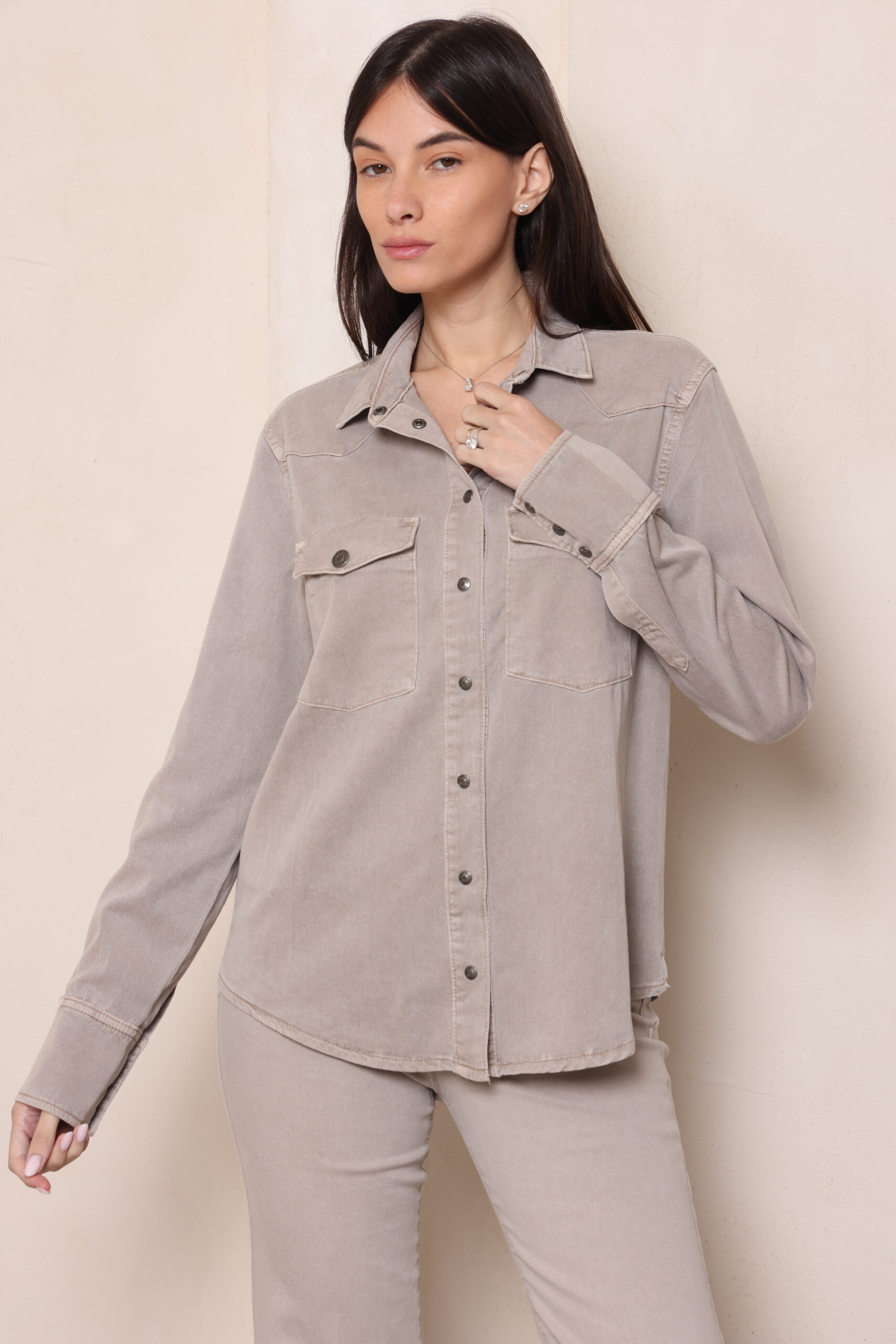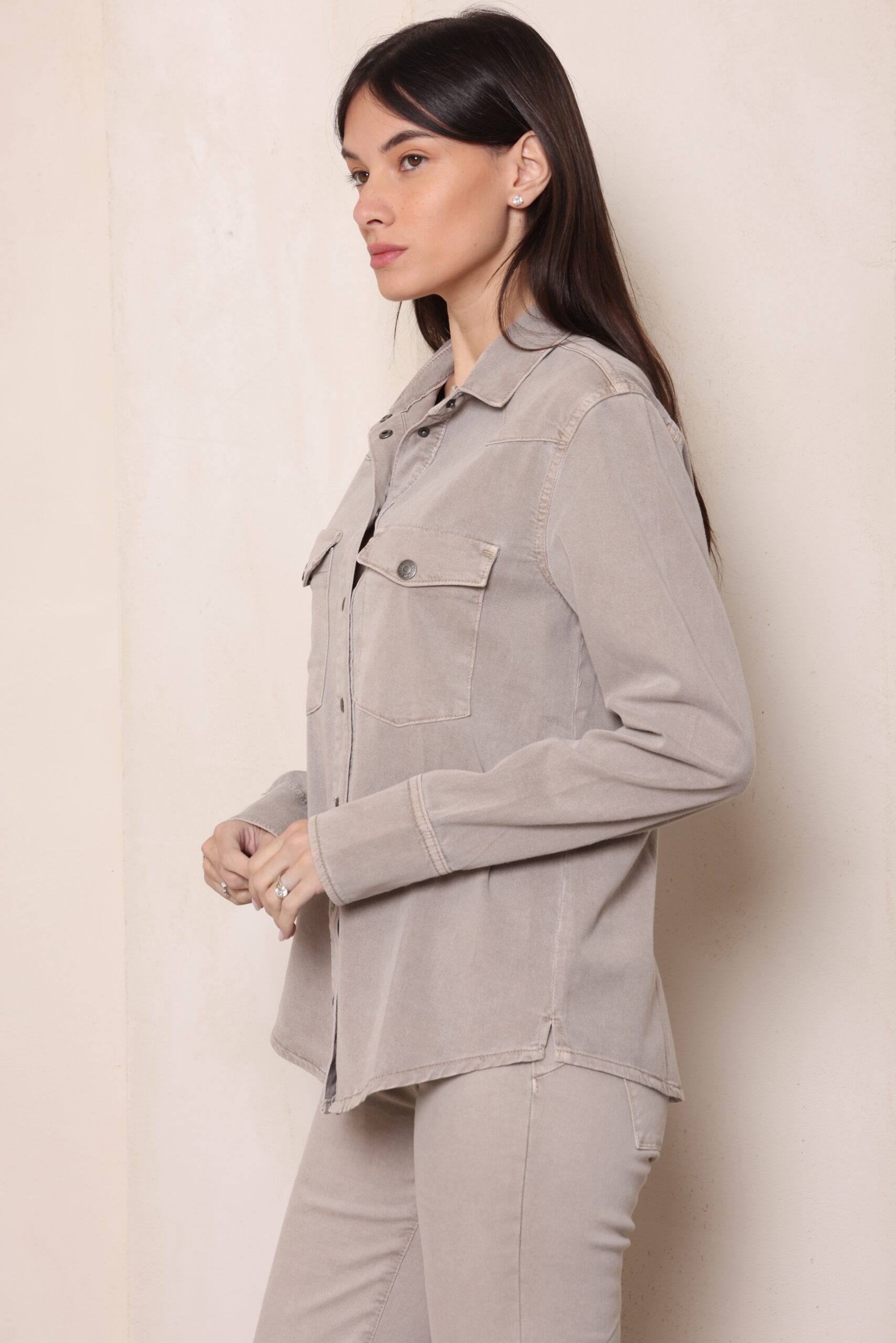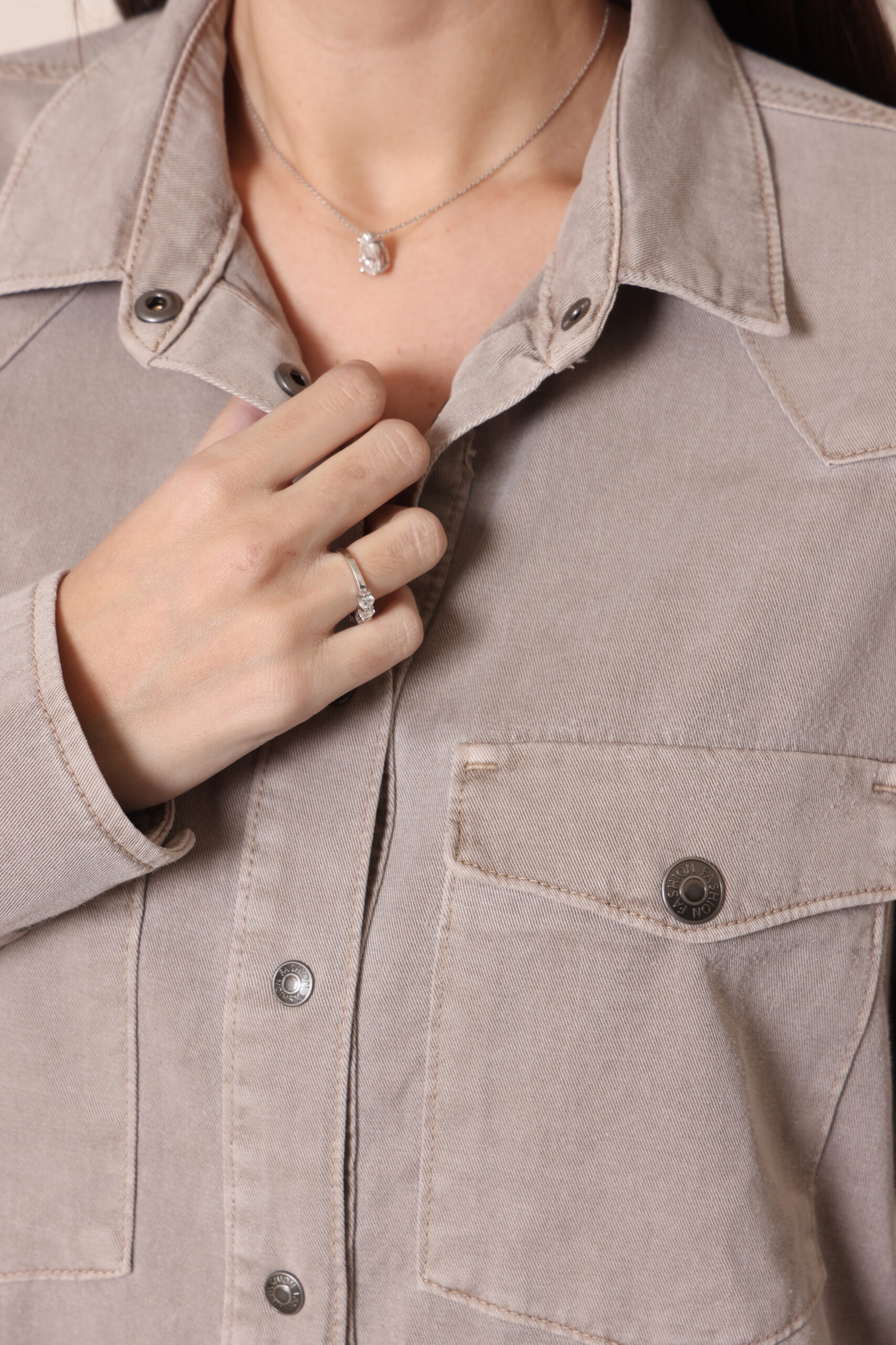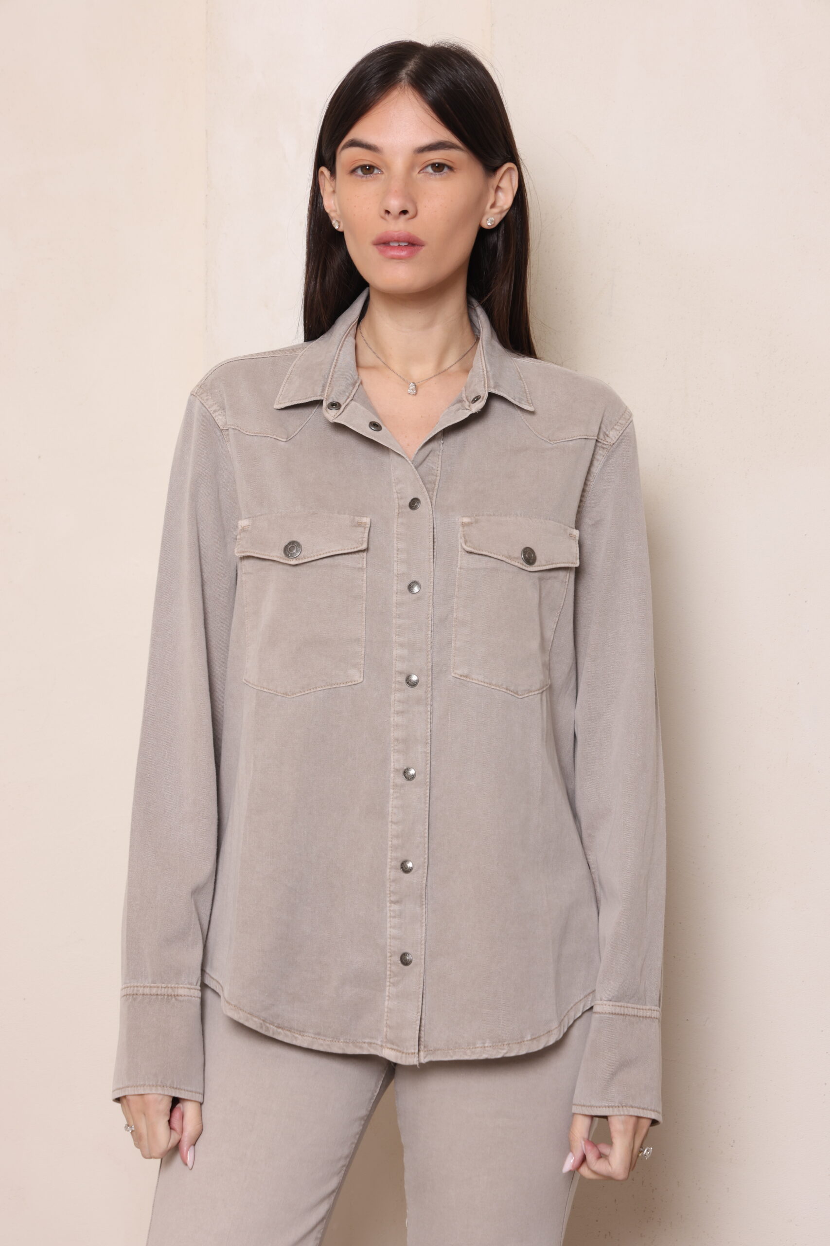 חולצת כותנה עם סגירת תיק תק בגיזרה לבישה