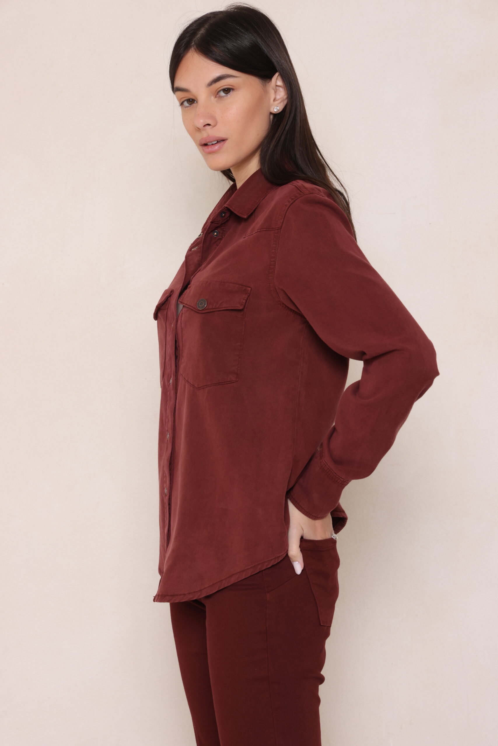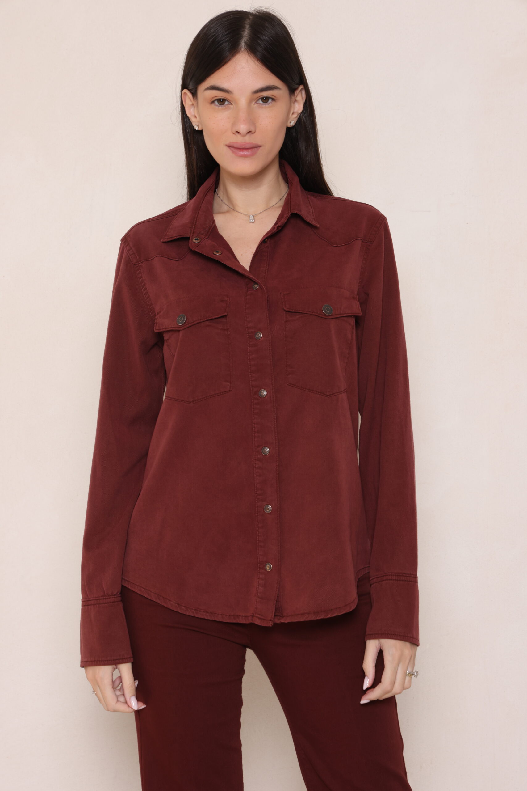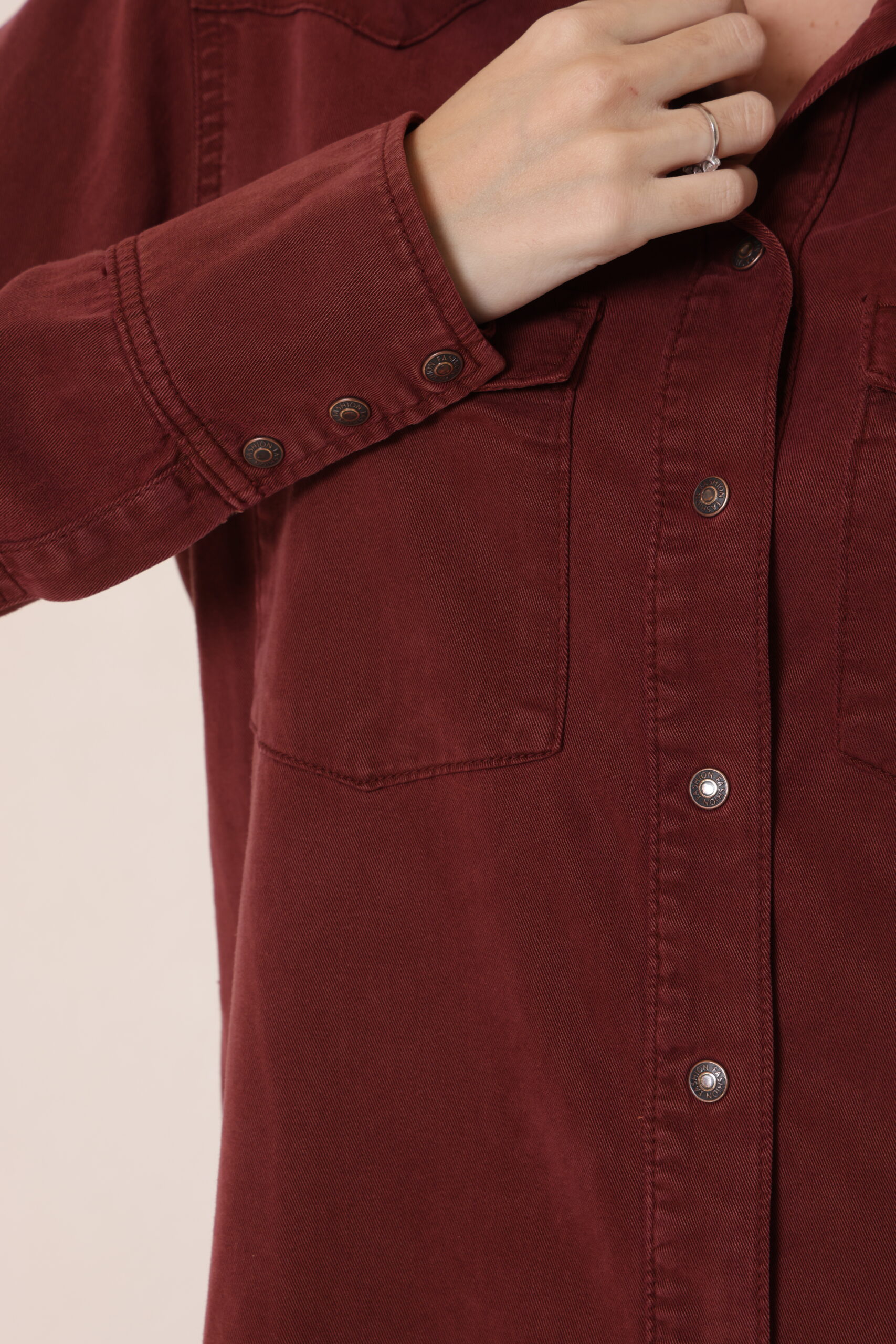חולצת כותנה עם סגירת תיק תק בגיזרה לבישה