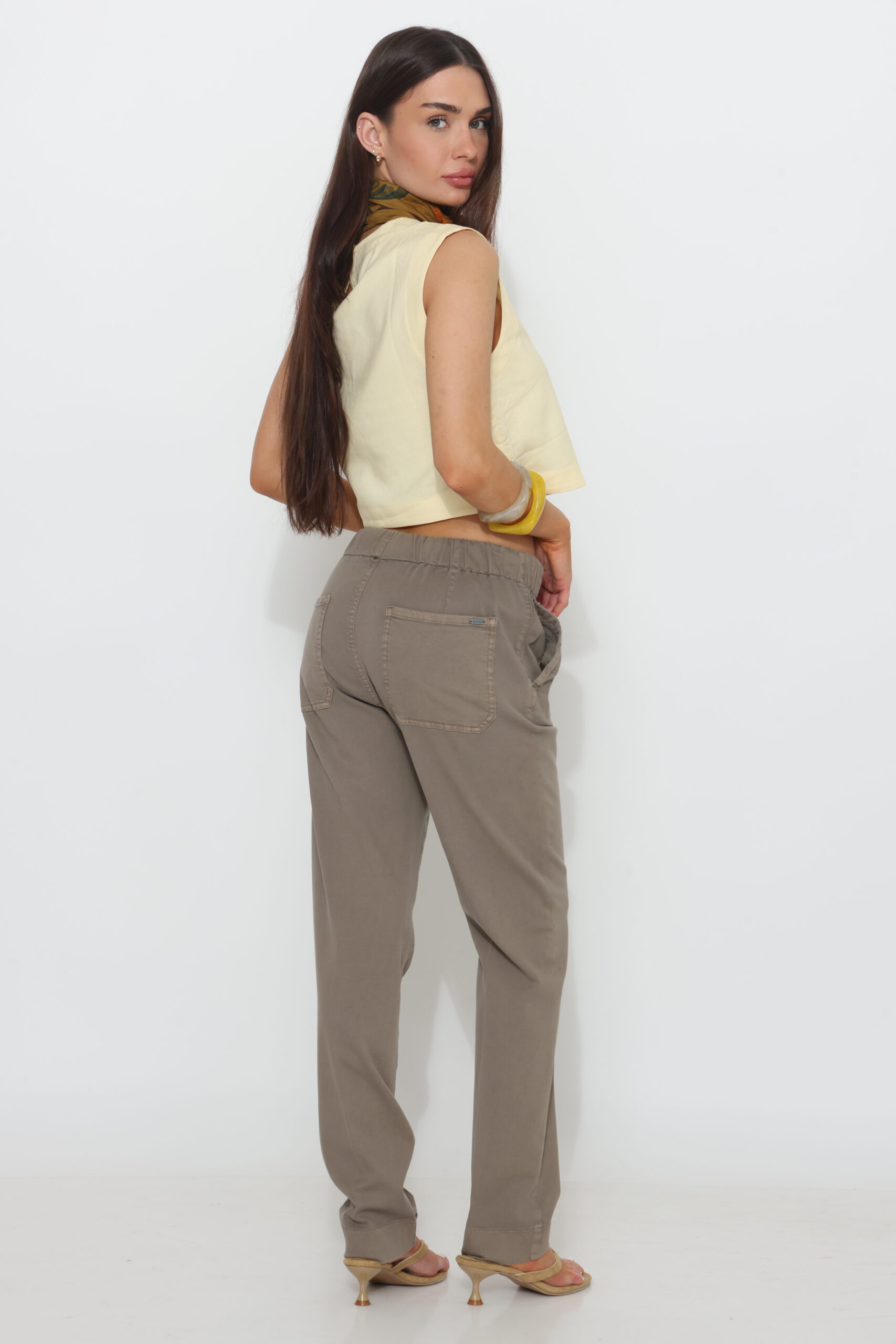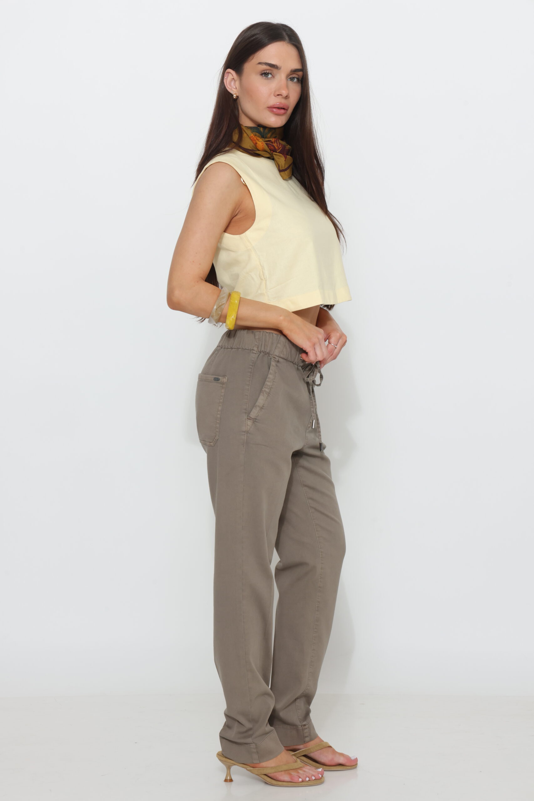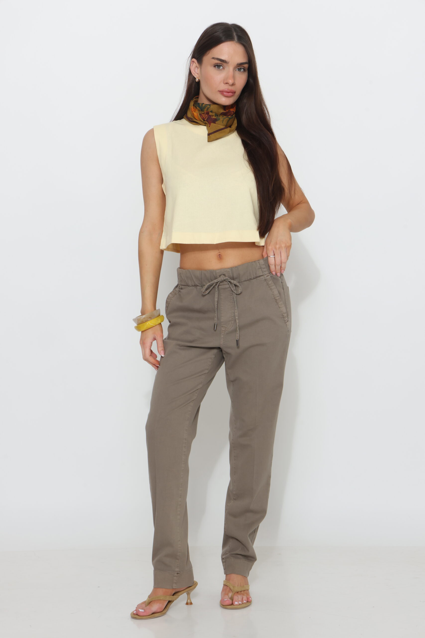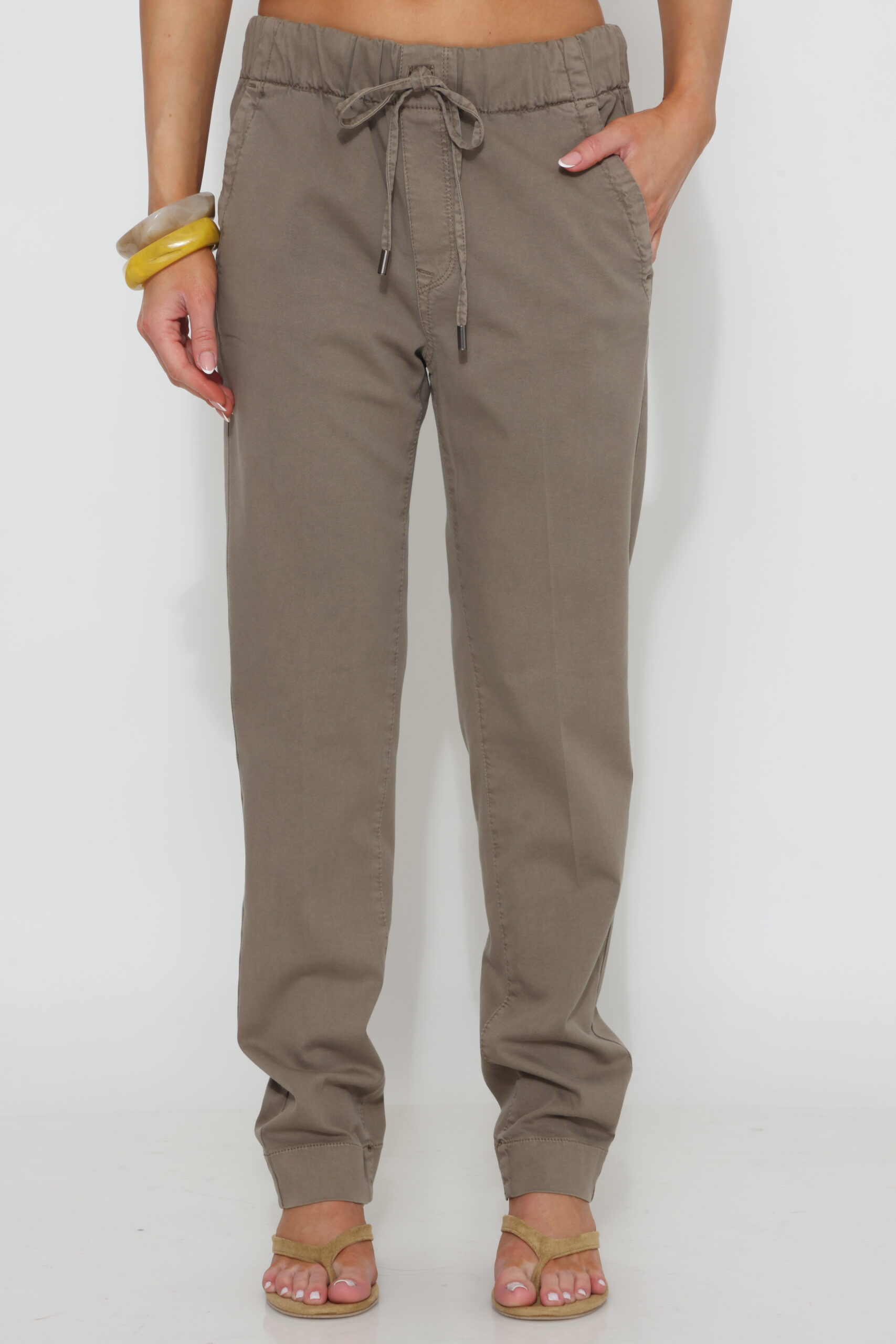 מכנסי כותנה עם שרוך ולייקרה בצביעה מיוחדת סיומת ישרה