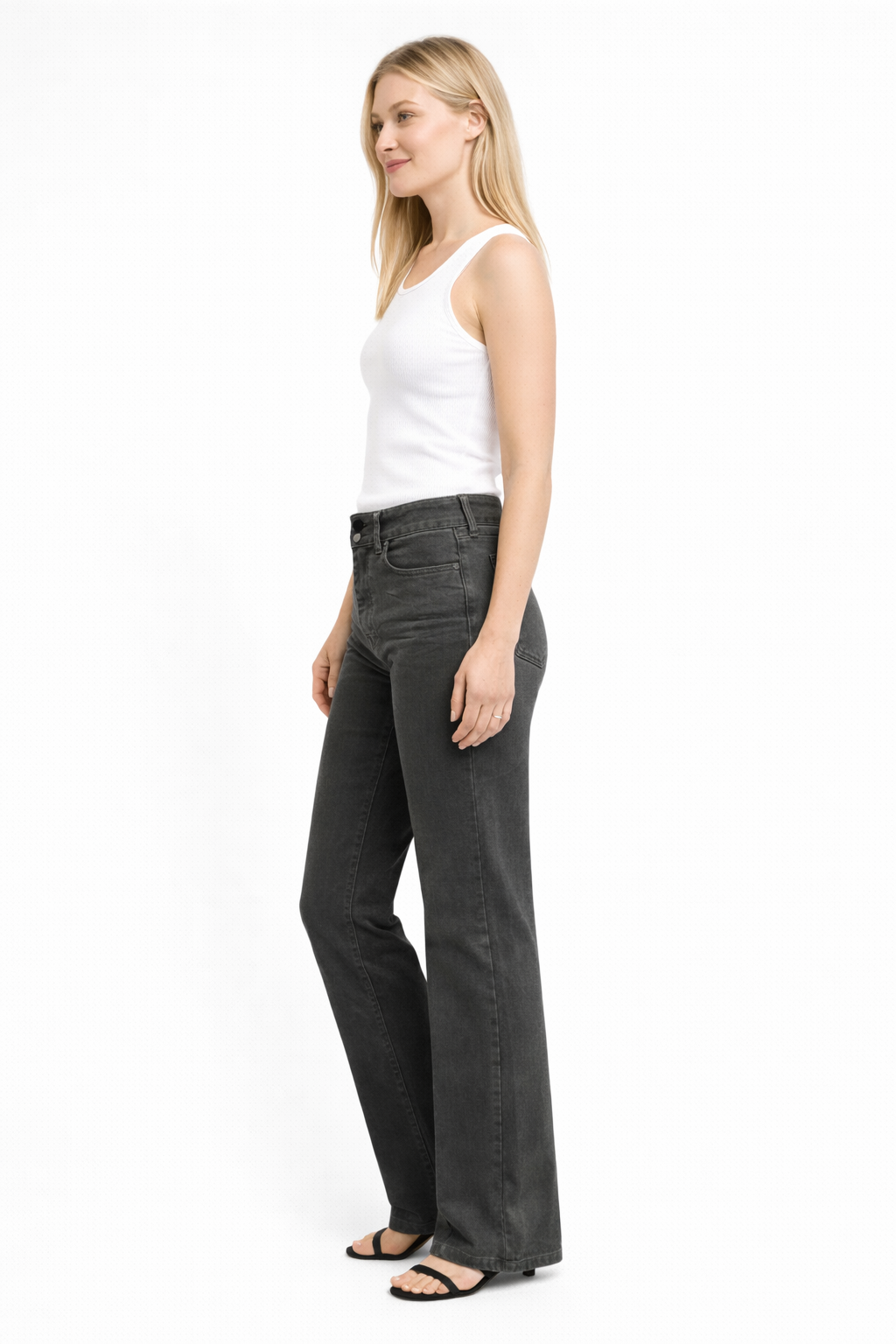 מכנס פלייר ארוך עם שני כפתורים בצבע אפור כהה עם לייקרה