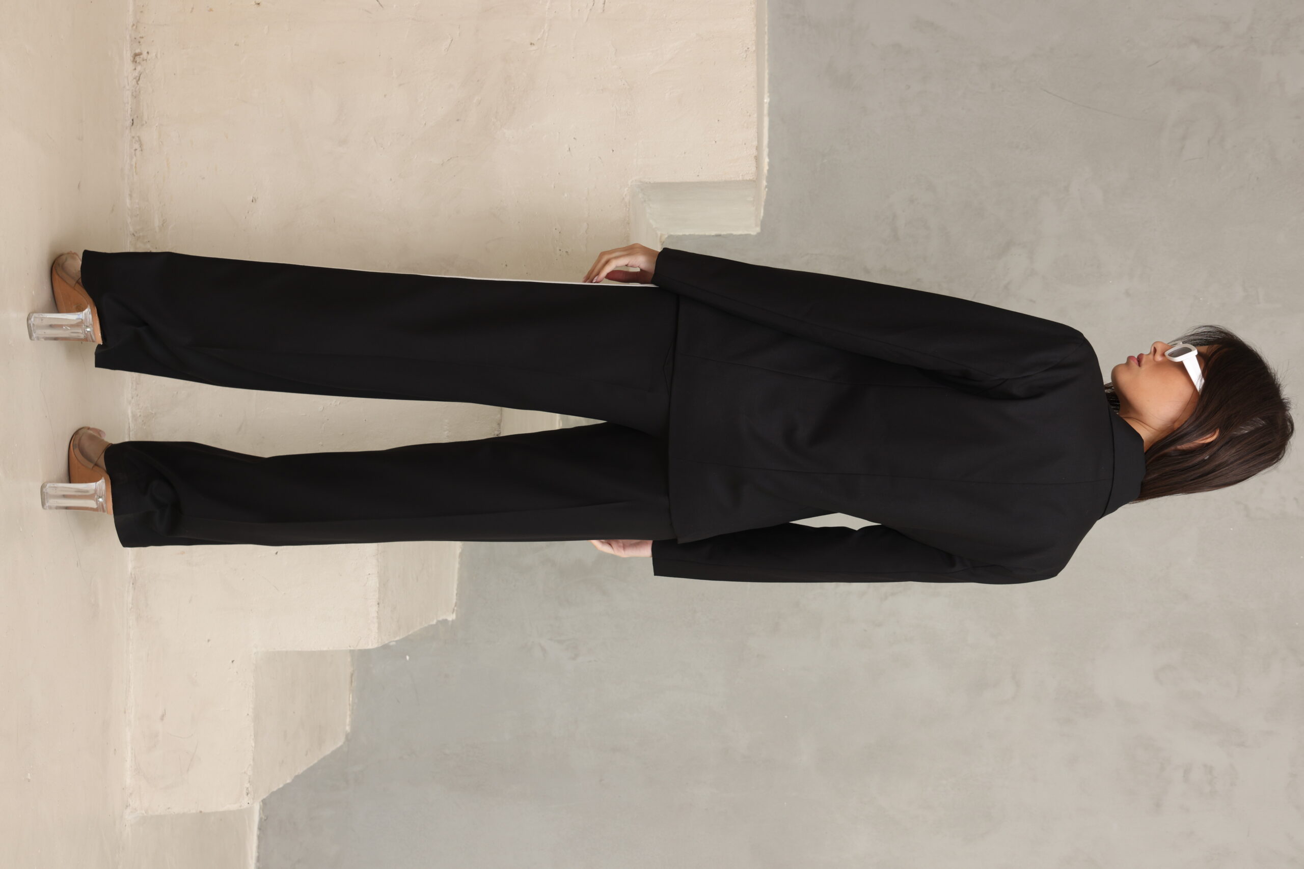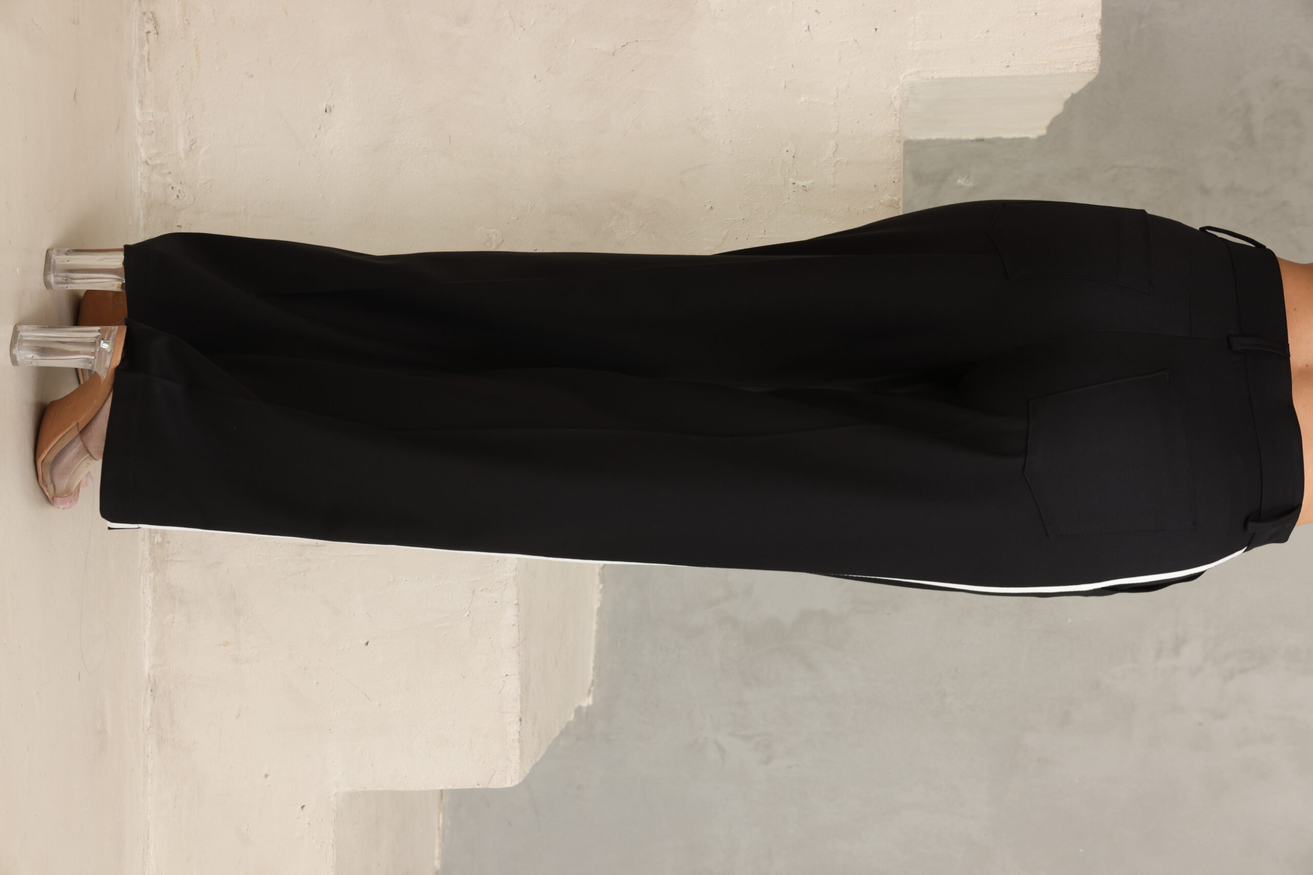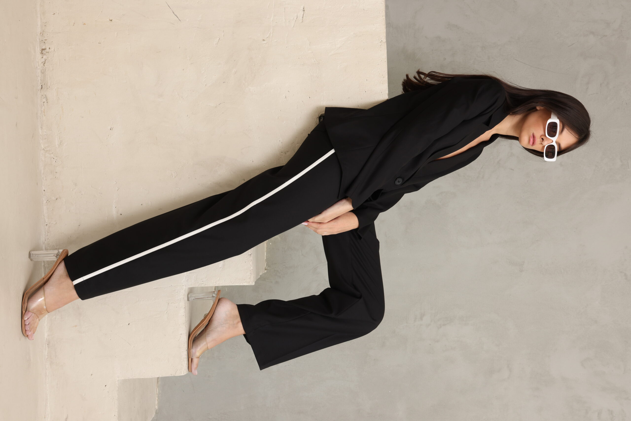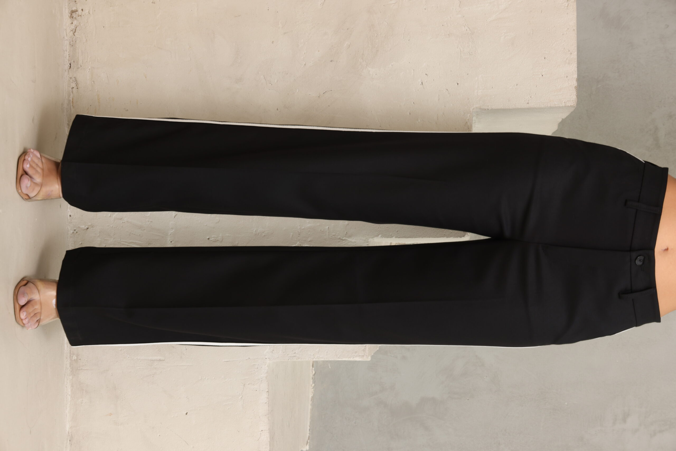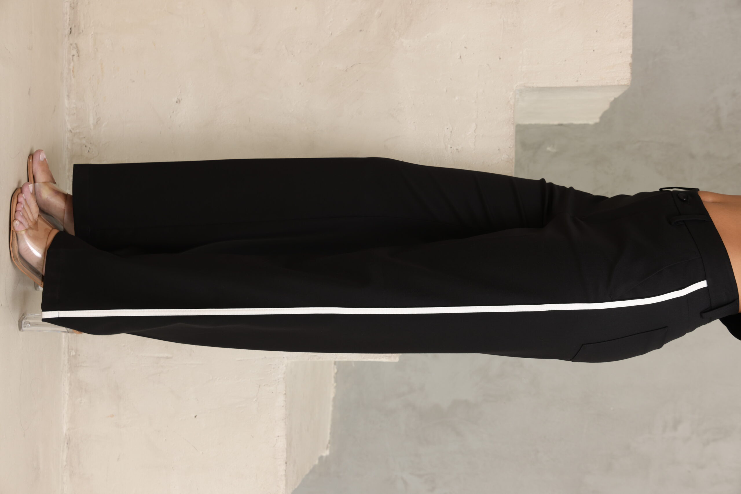 מכנס מחוייט בגיזרה ישרה כפתור ופס בצידי המכנס, מוצר משלים לדגם – בלייזר נייטי שחור