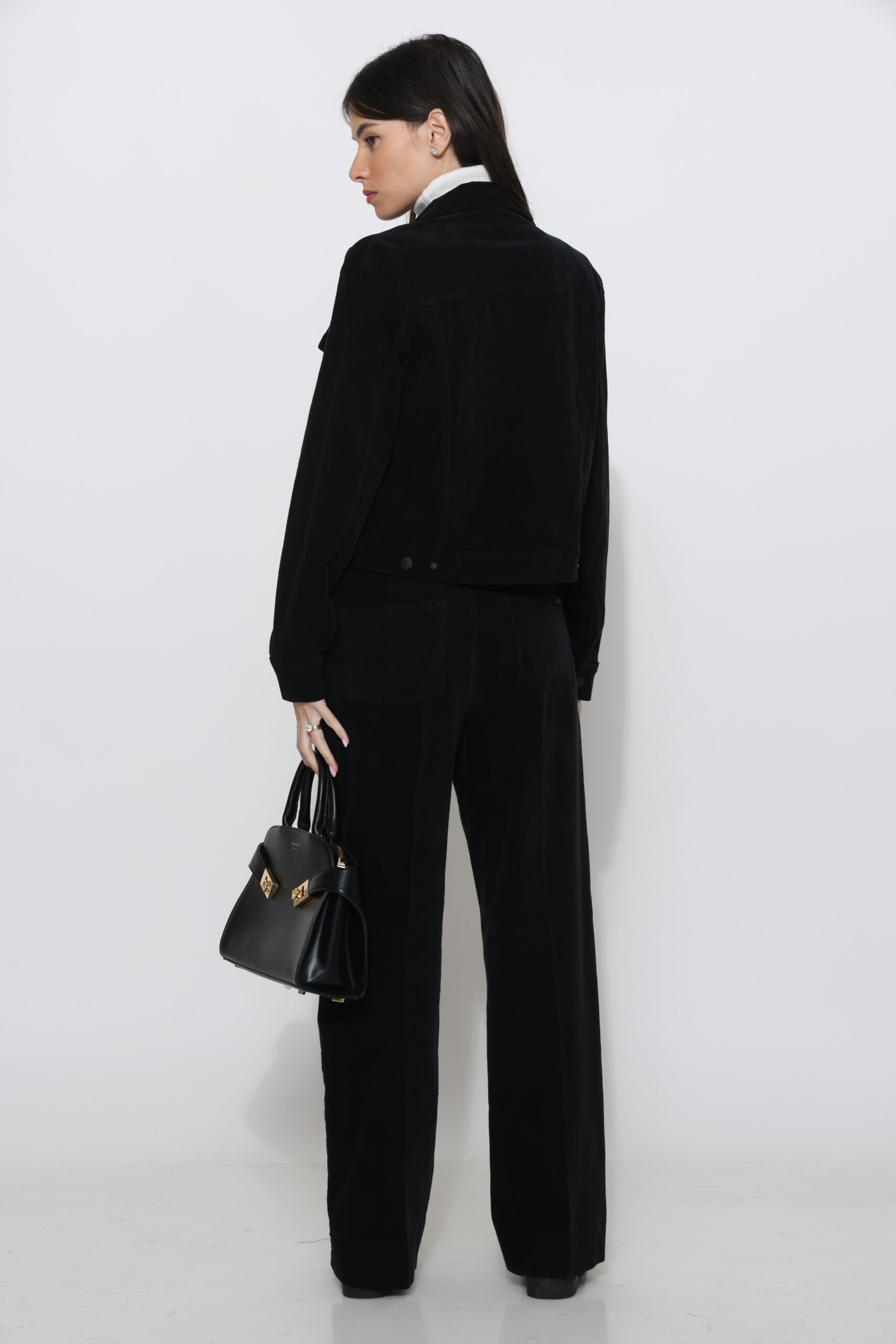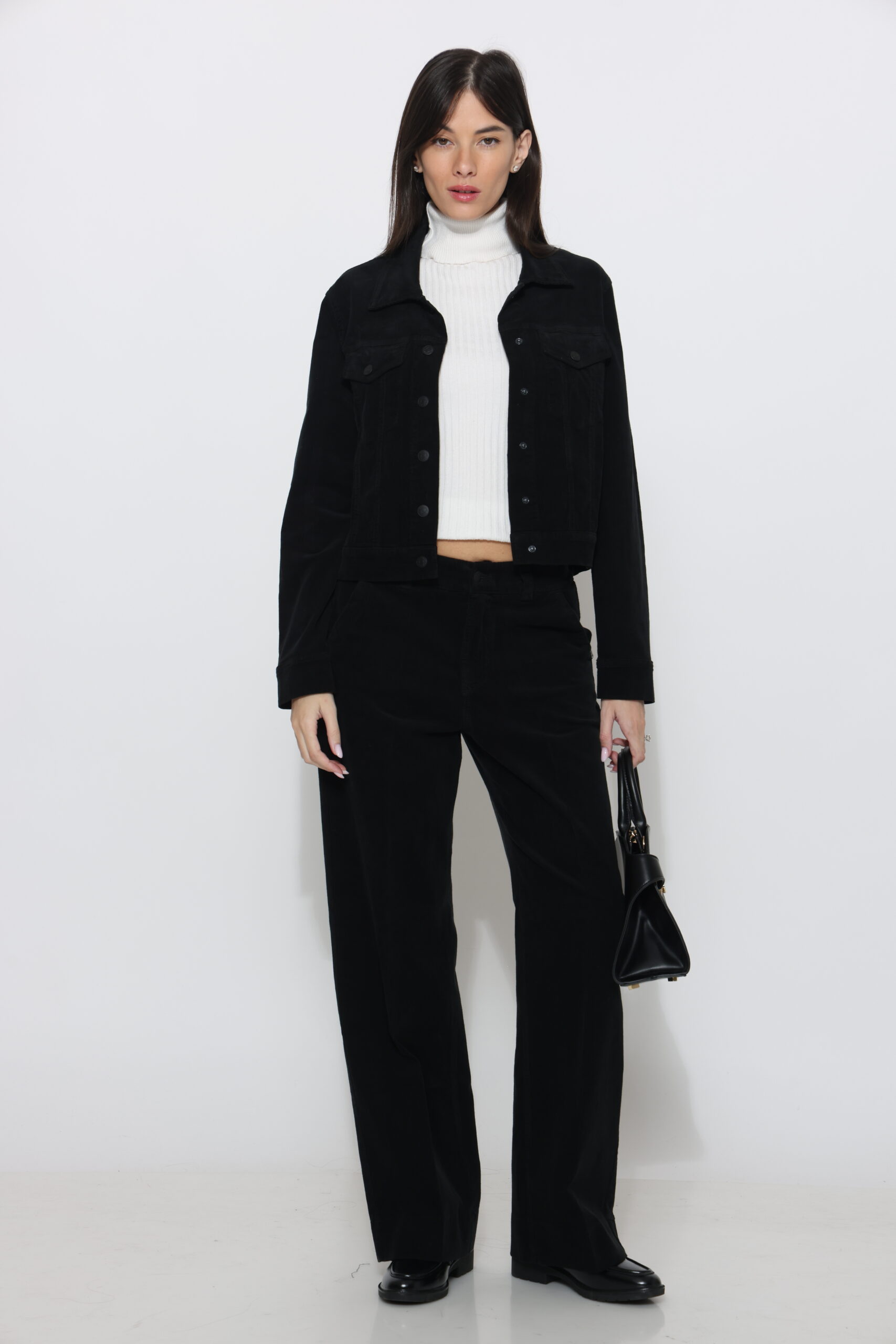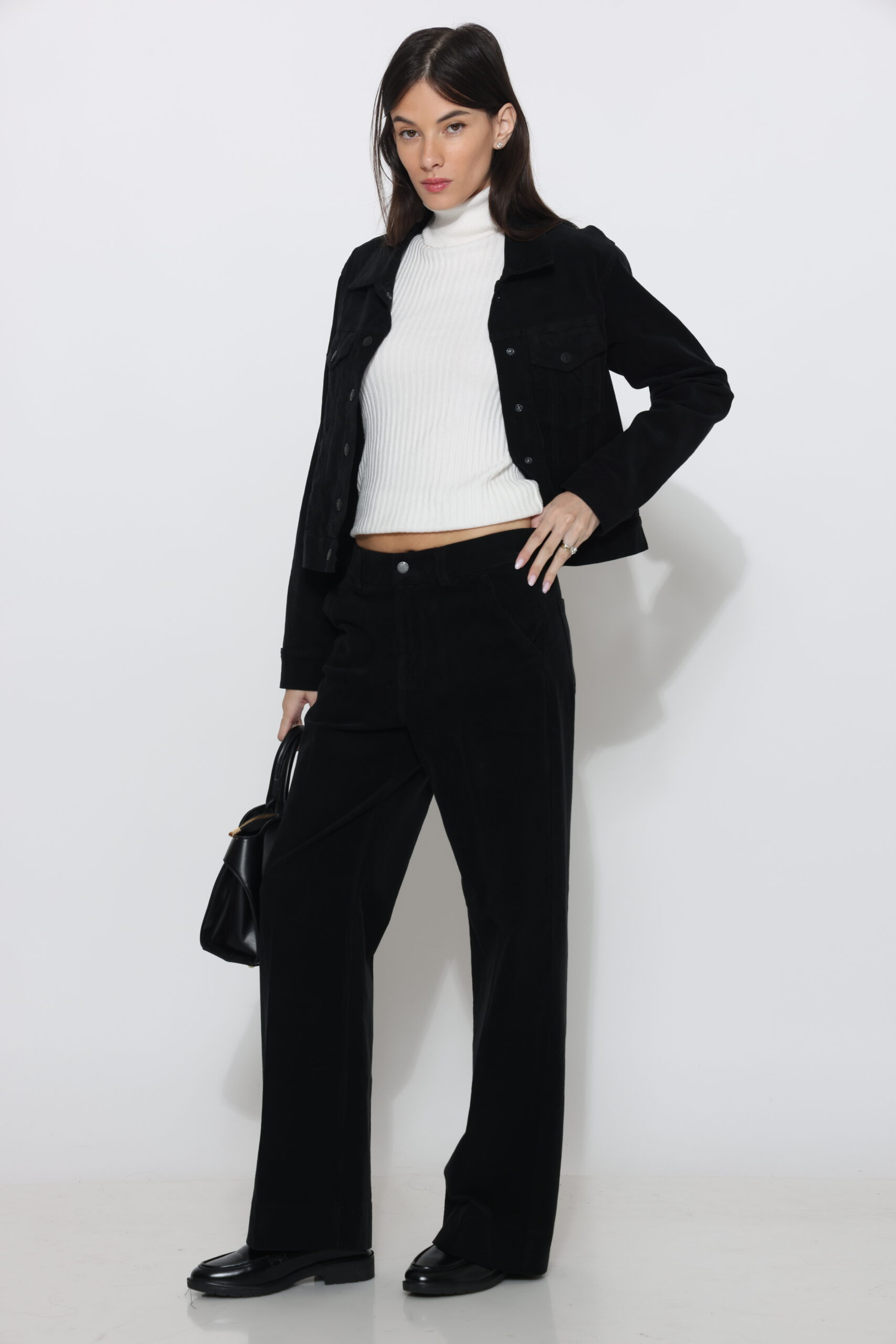 מכנסי קורדרוי בגיזרה ישרה עם גומי נסתר בחגורה וסגירת כפתור עם לייקרה