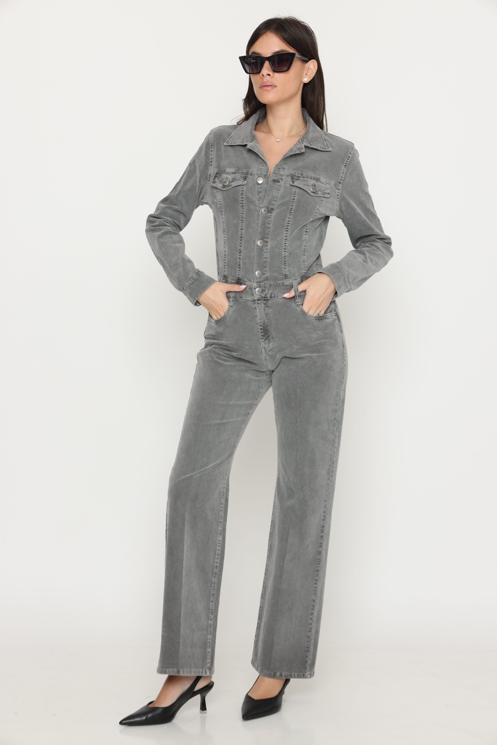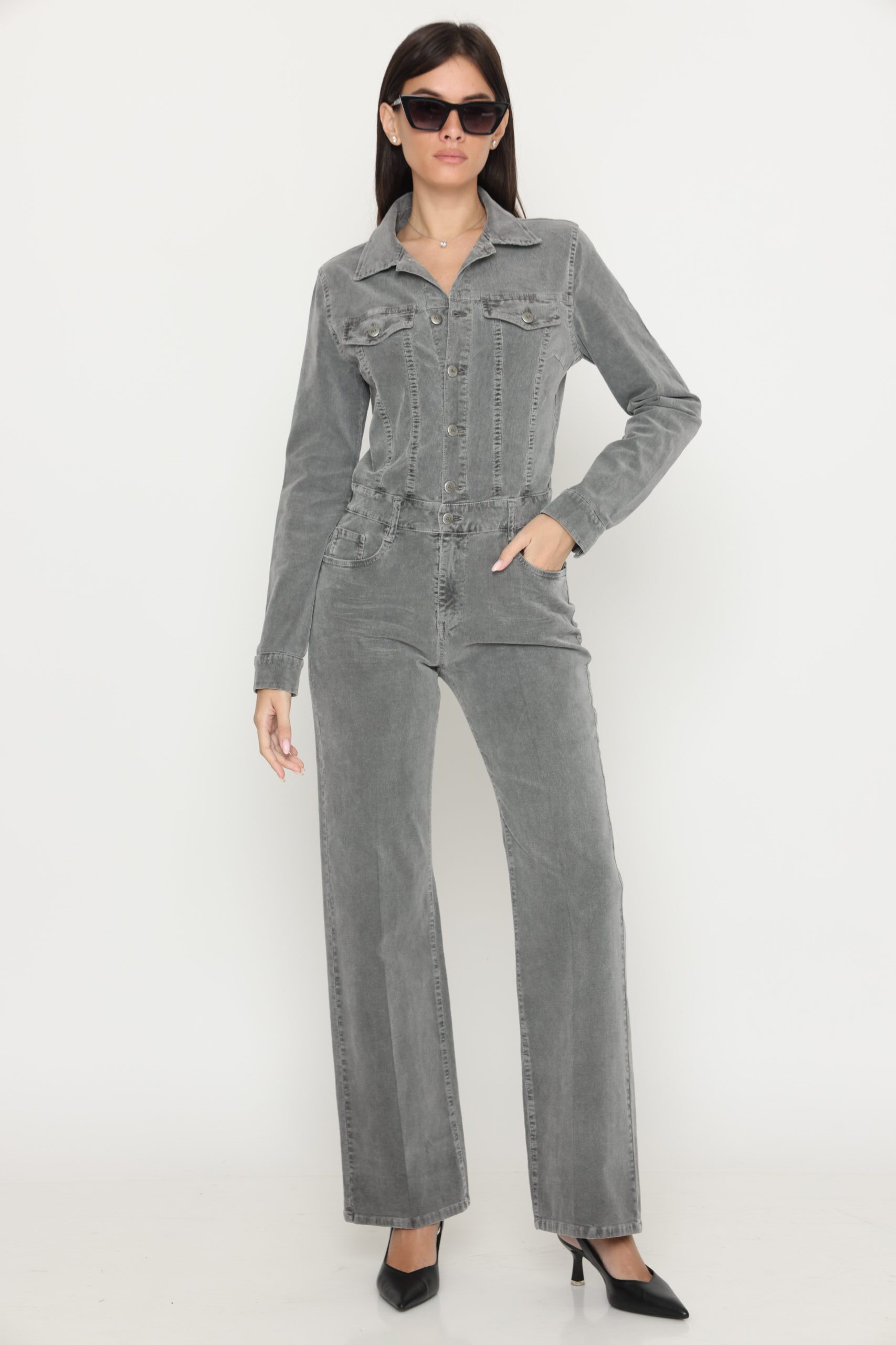 אוברול סידי – אוברול קורדרוי בגיזרה ישרה עם סגירת כפתורים ולייקרה.
