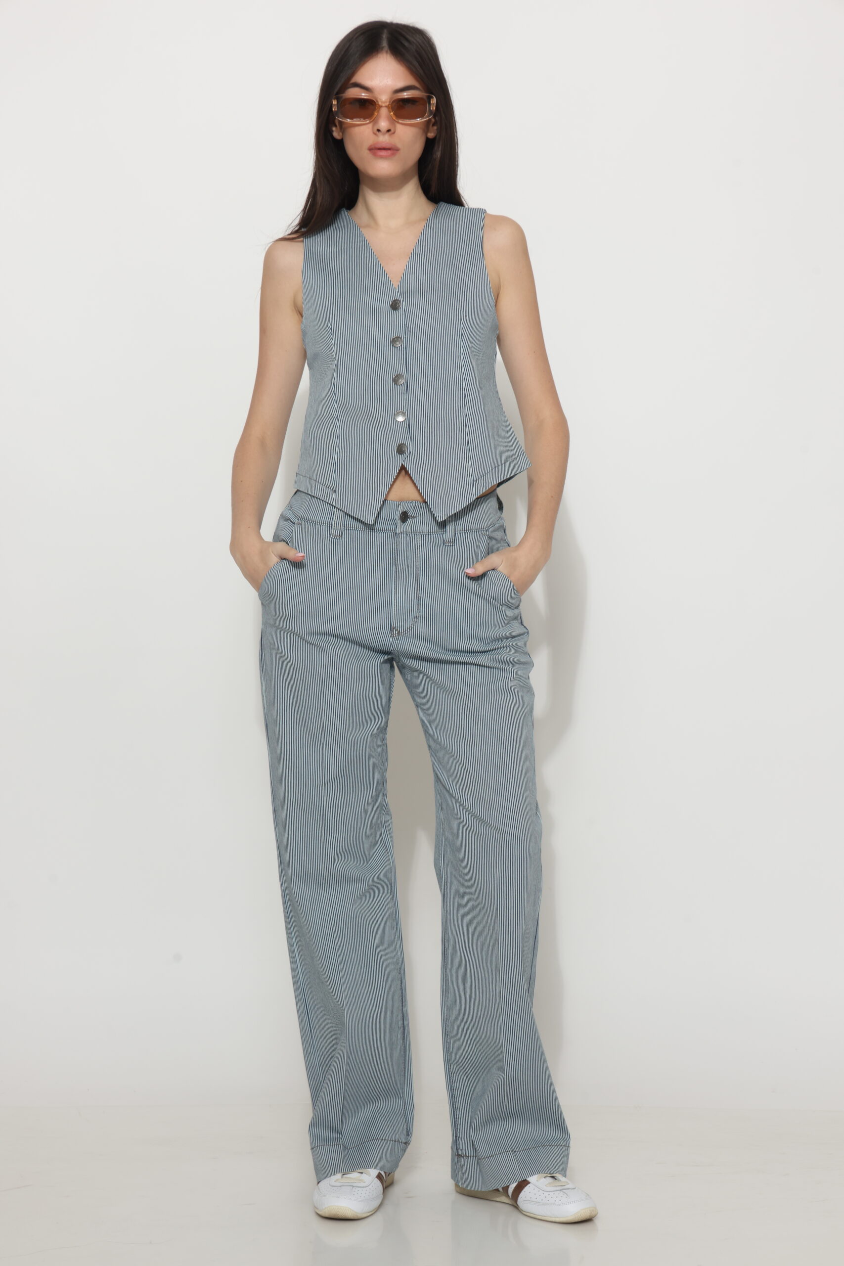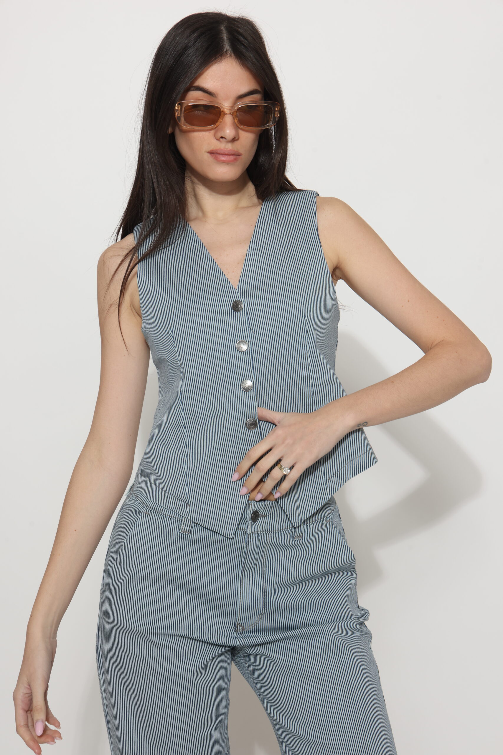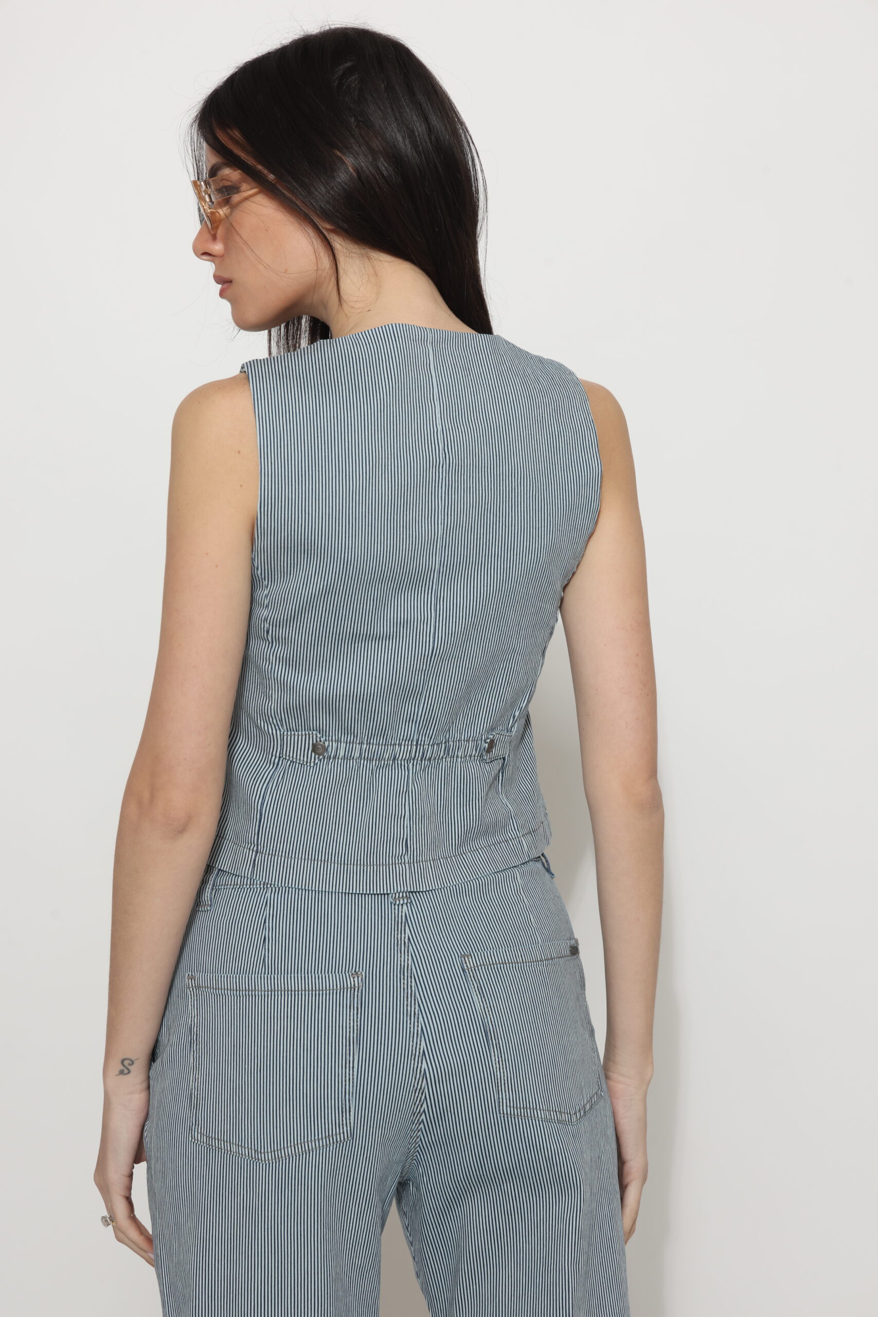 ווסט פסים עם סגירת תיק תק וכיווץ בגב, תואם לג׳ינס פסים גולי