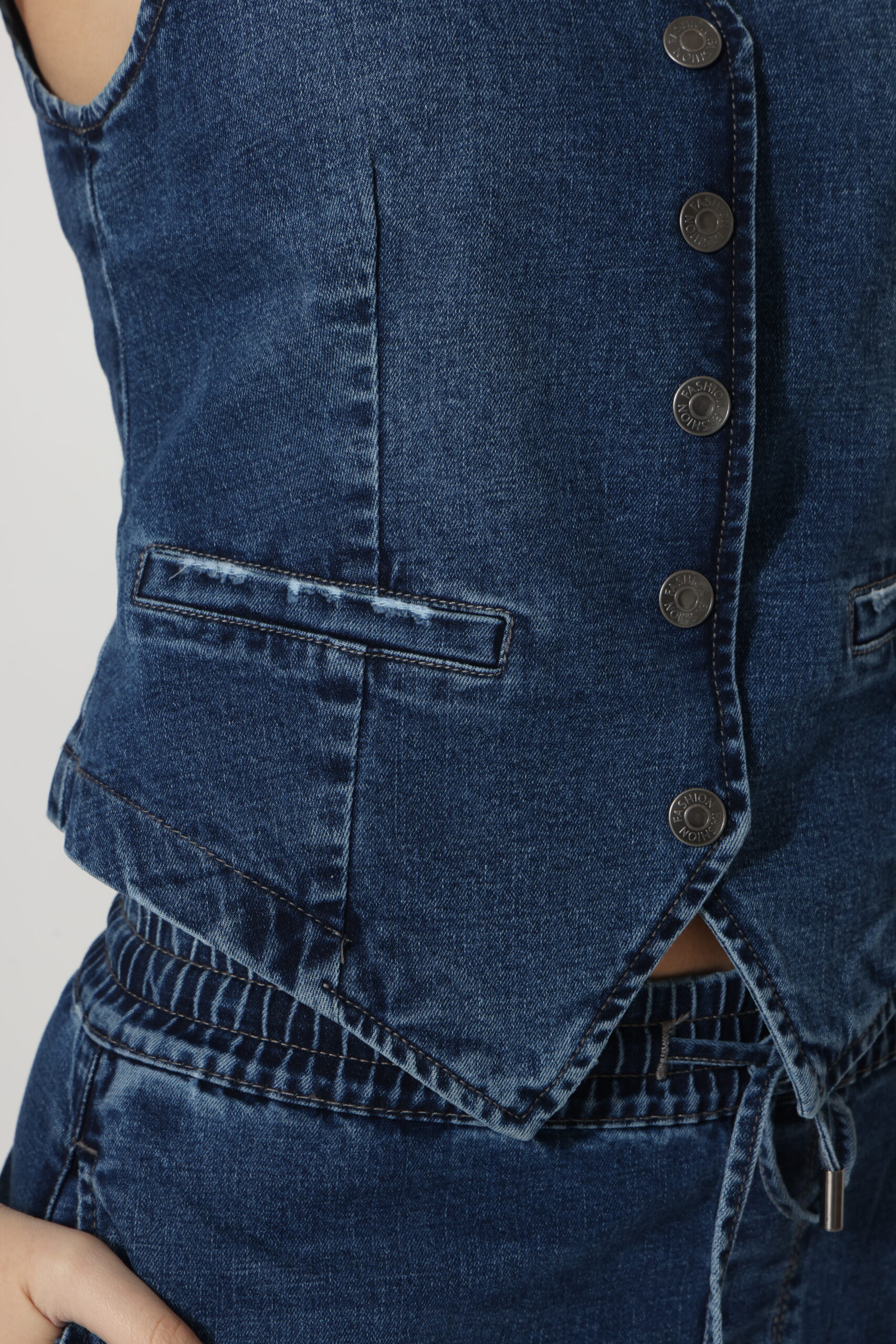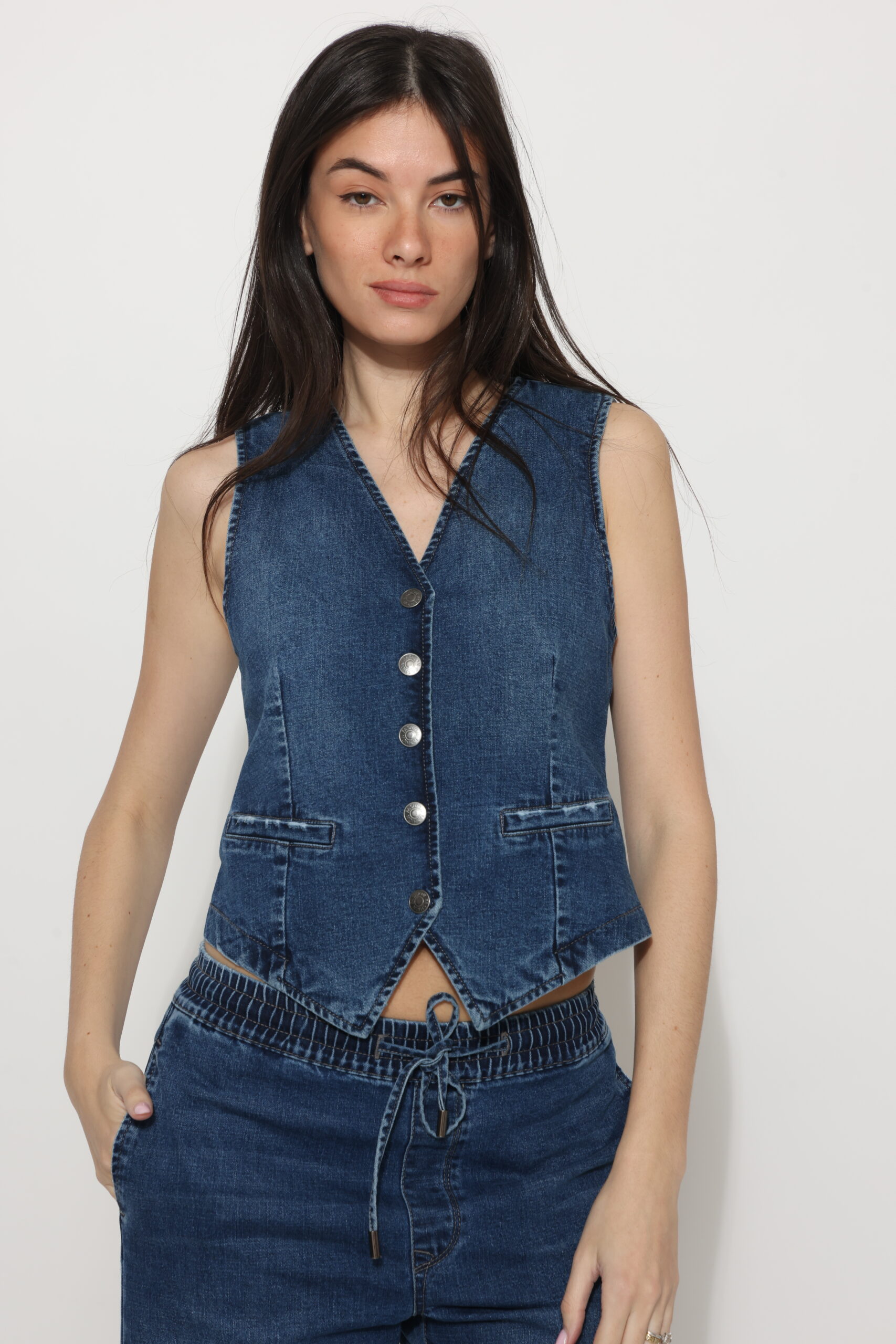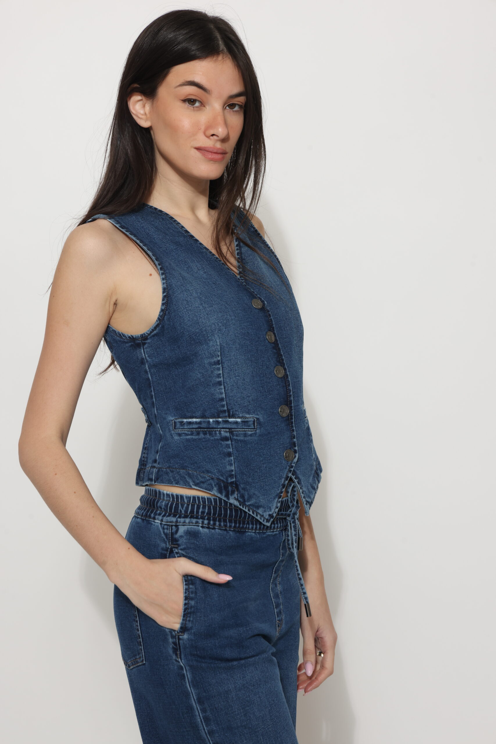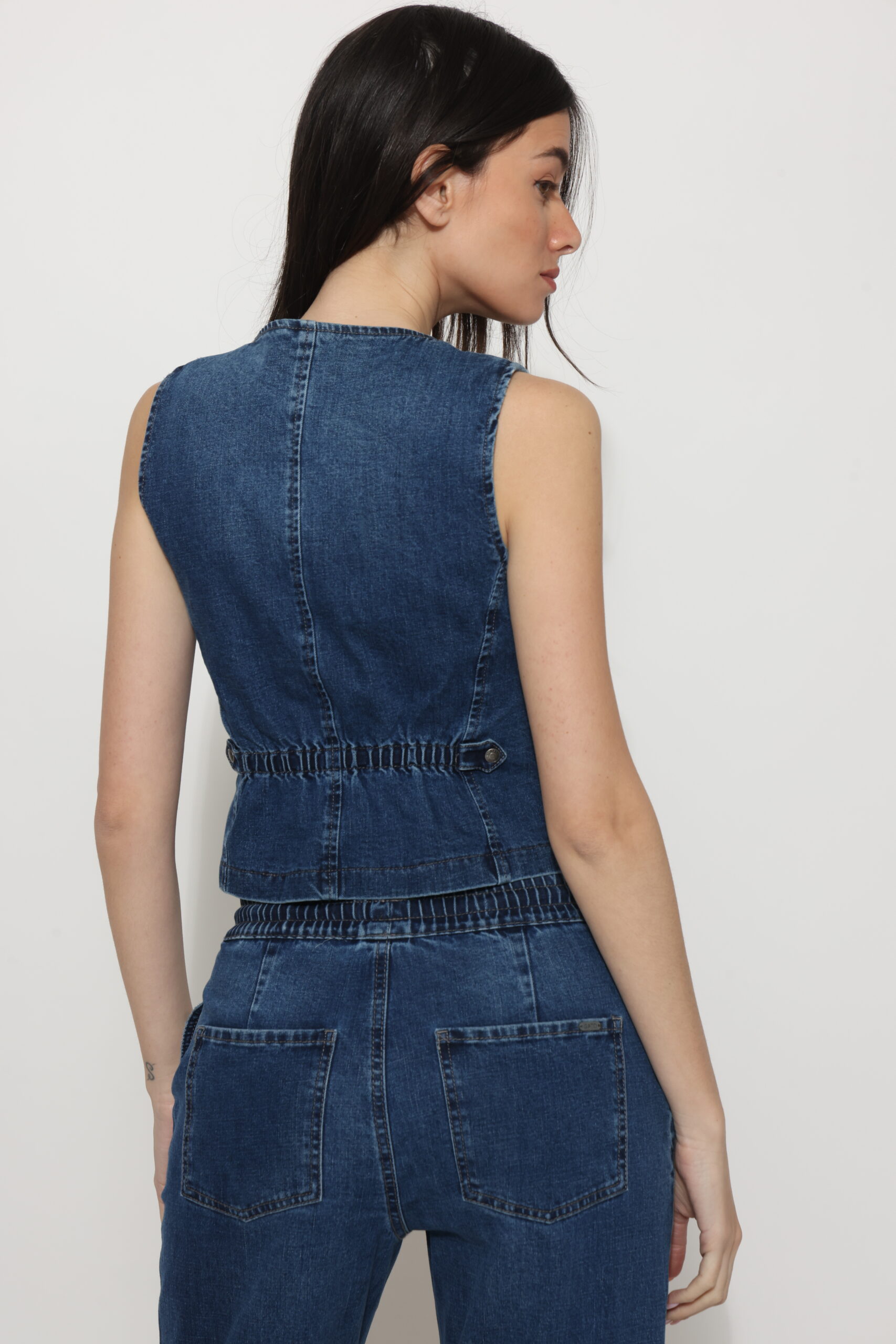ווסט גינס סגירת תיק תק בגוון אמצע עם כיווץ בגב, תואם לג׳ינס פולי