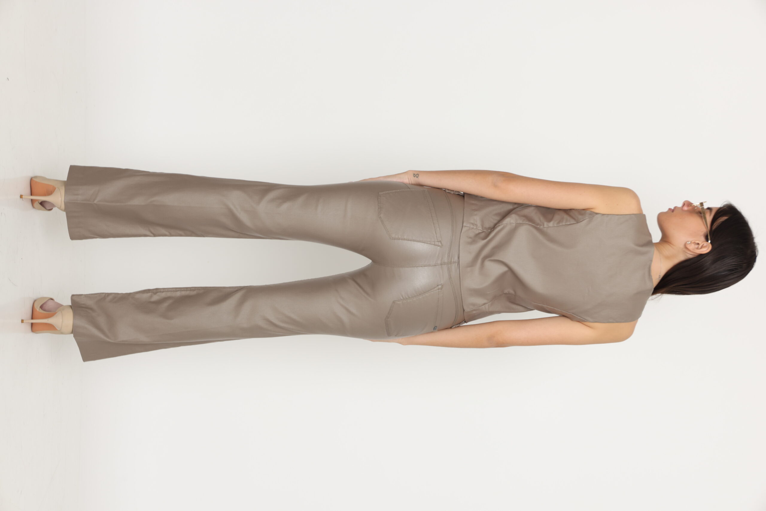 ווסט עור עם לייקרה וכיסים קדמיים – תואם לכל מכנסי העור בצבע בז׳ באתר