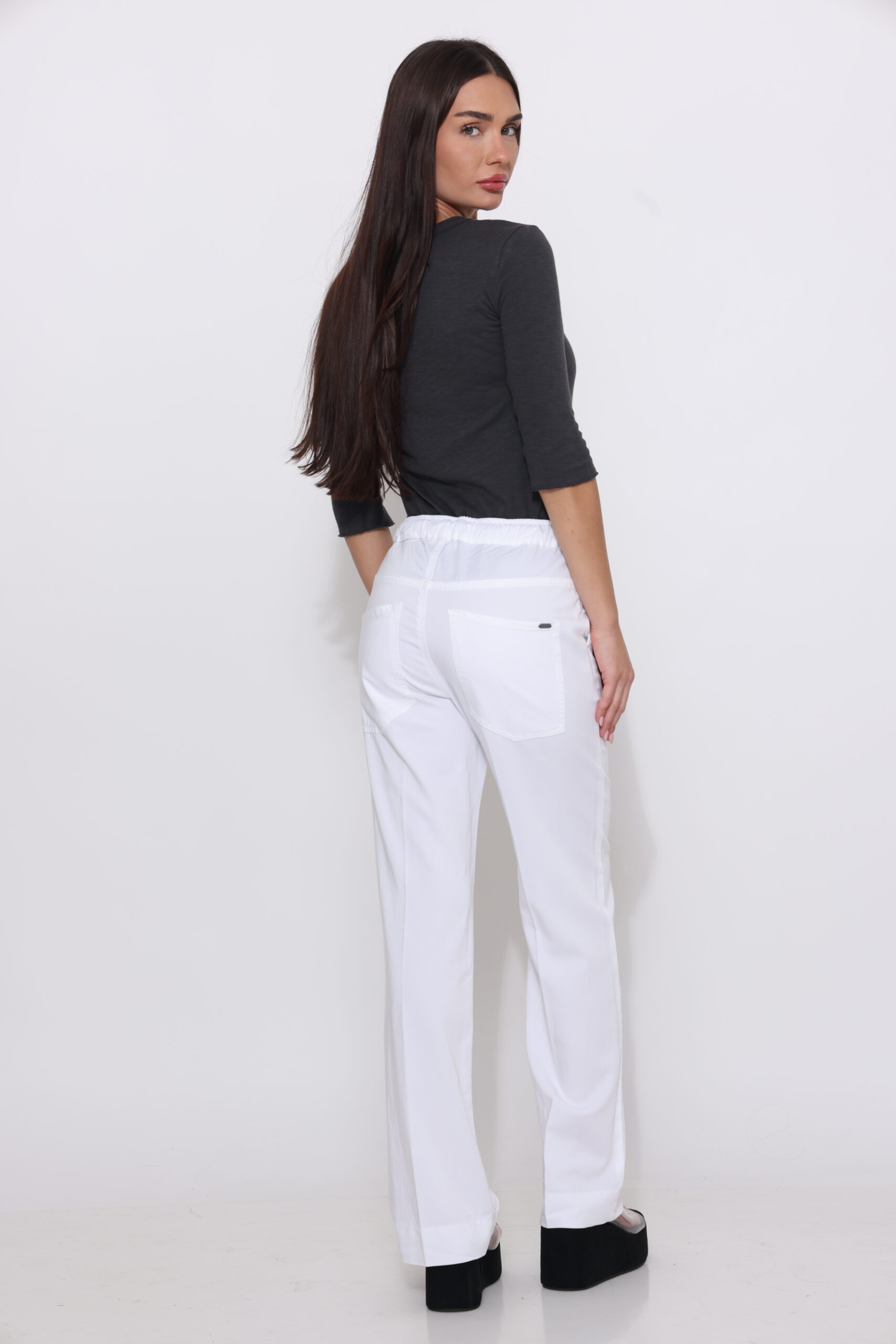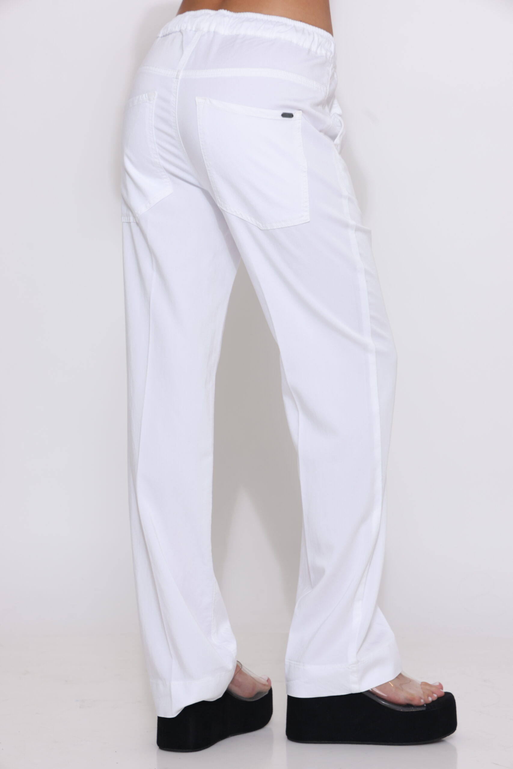מכנסים מבד משי עם לייקרה בגיזרה ישרה ארוכה