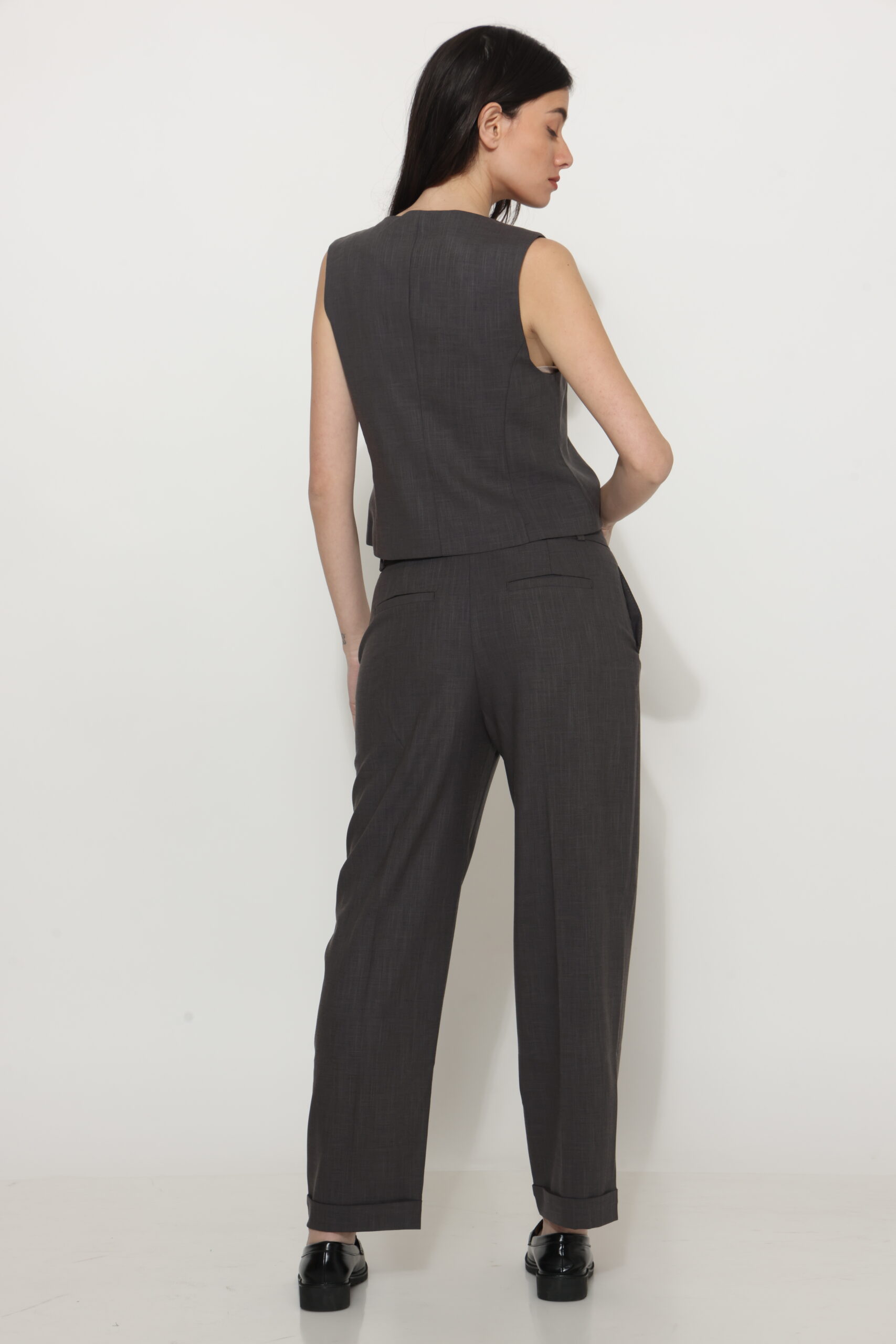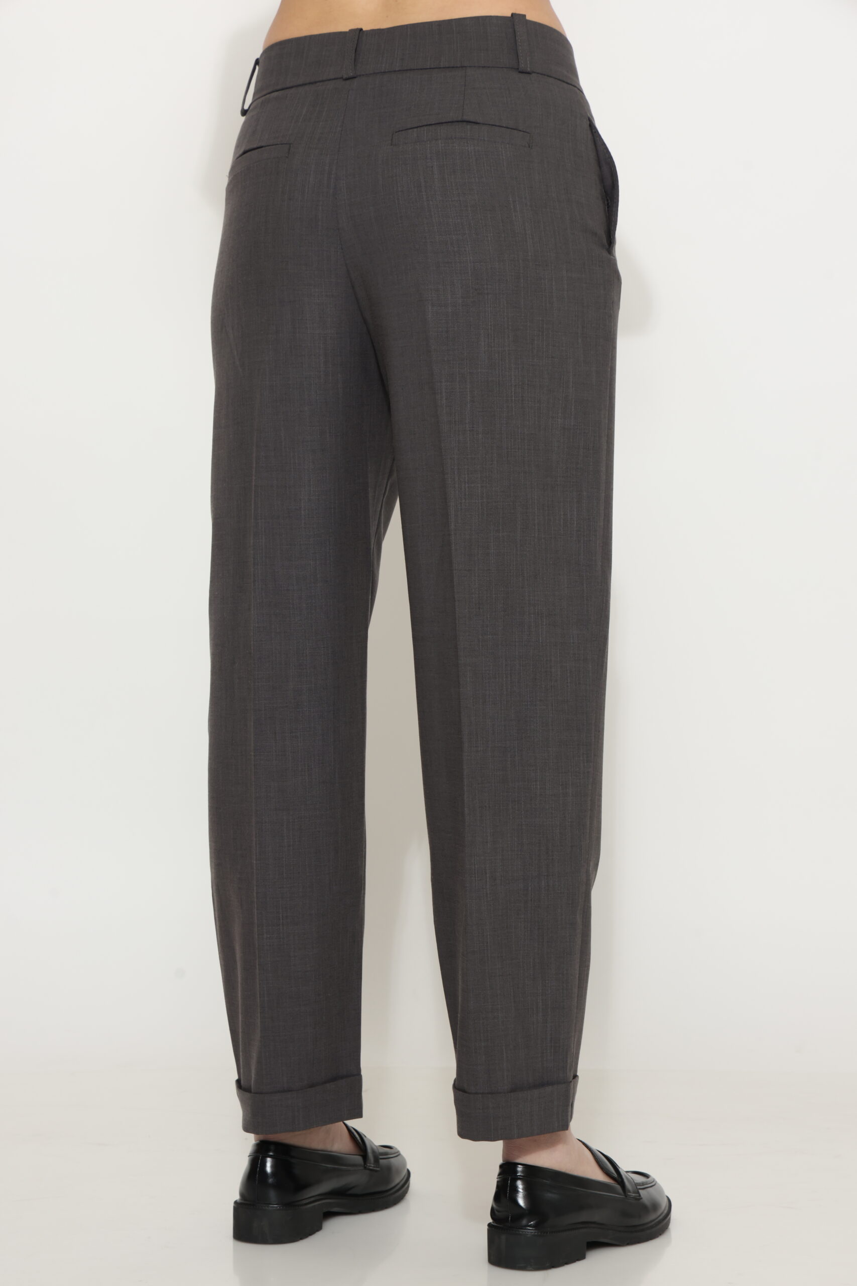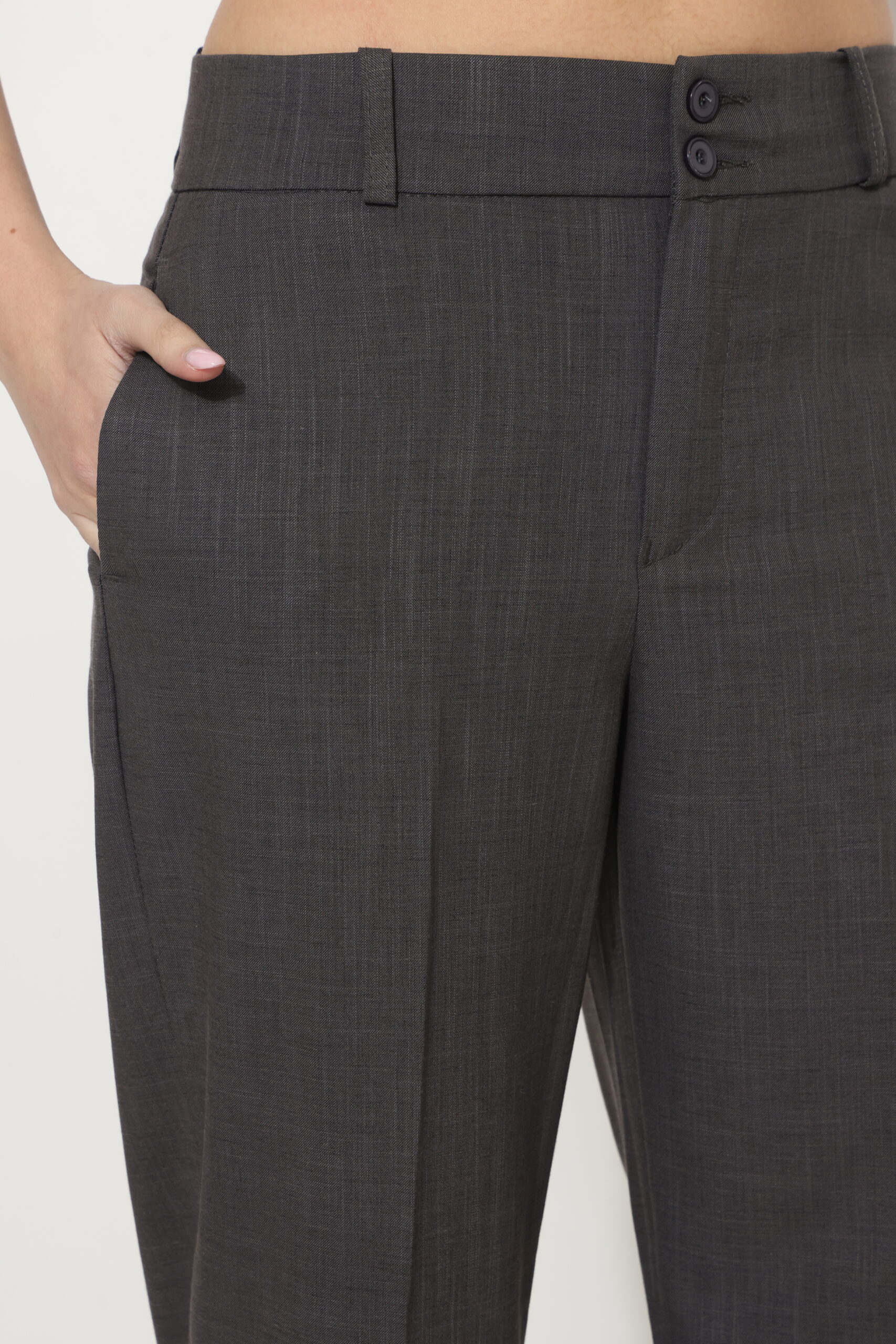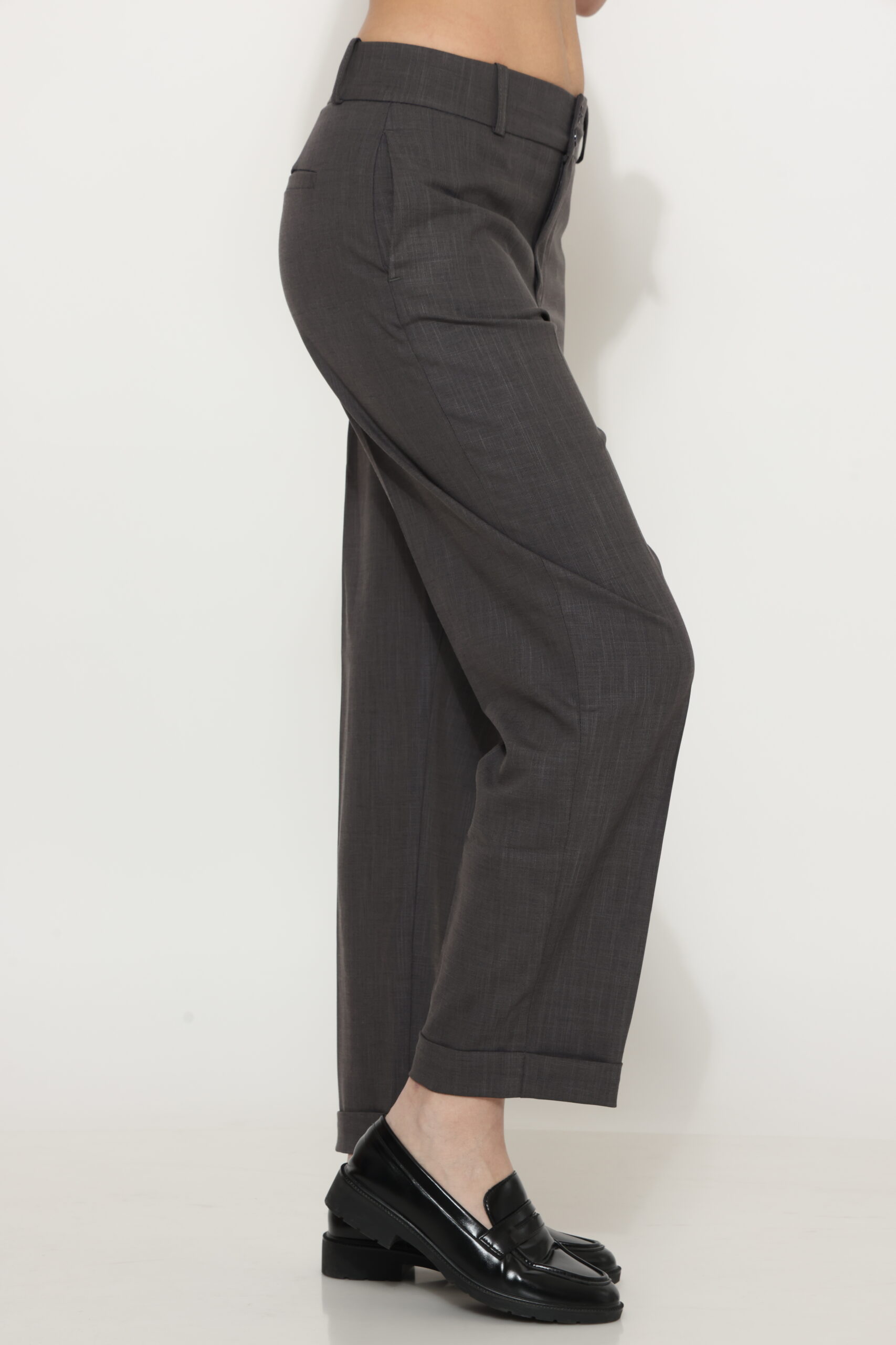 מכנס מבד נשפך עם שני כפתורים בחגורה ומגbט ברגל